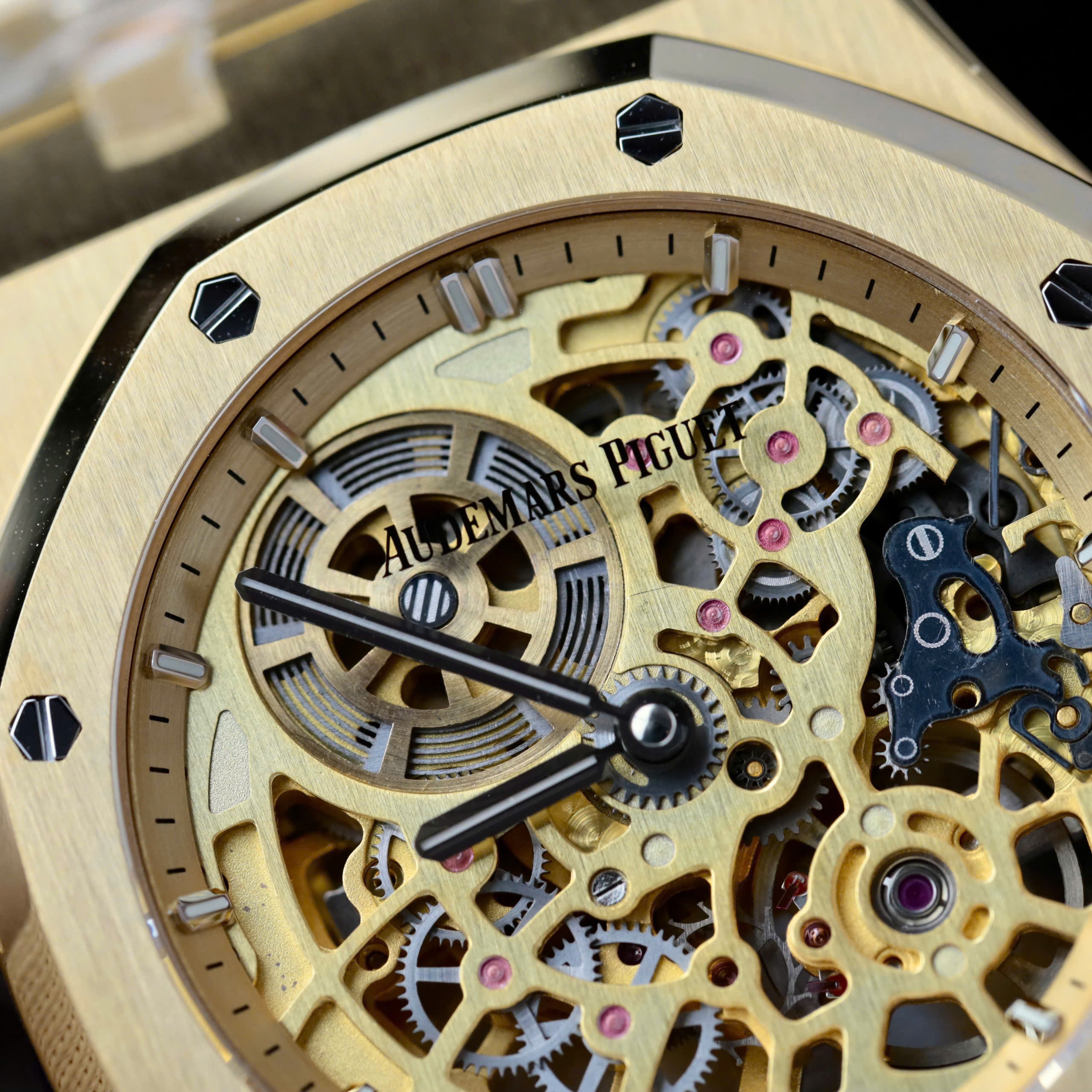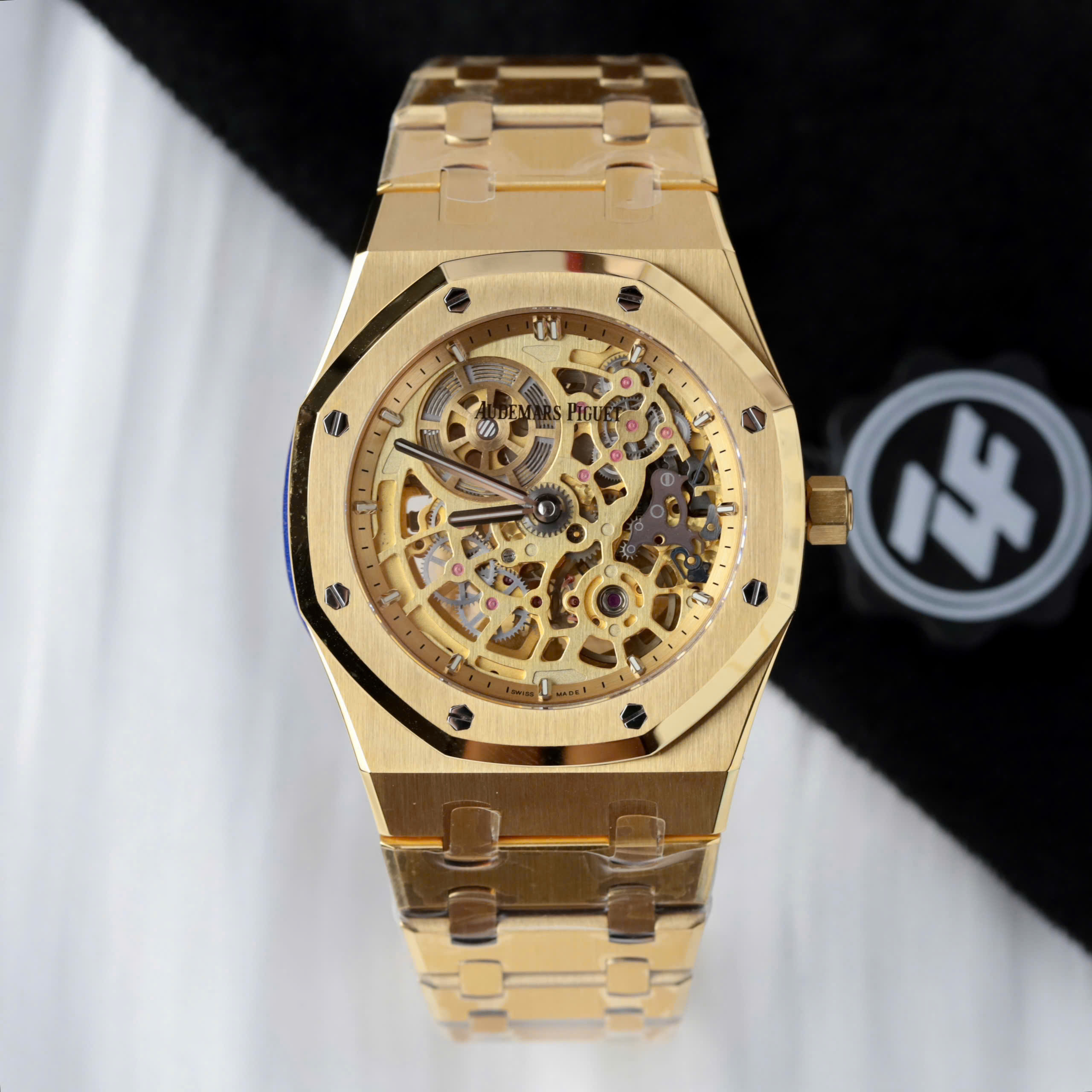 Đồng Hồ Audemars Piguet Replica 11 Royal Oak Jumbo Extra-thin Openworked 16204 Mặt Lộ Cơ Mạ Vàng Xưởng ZF 39mm