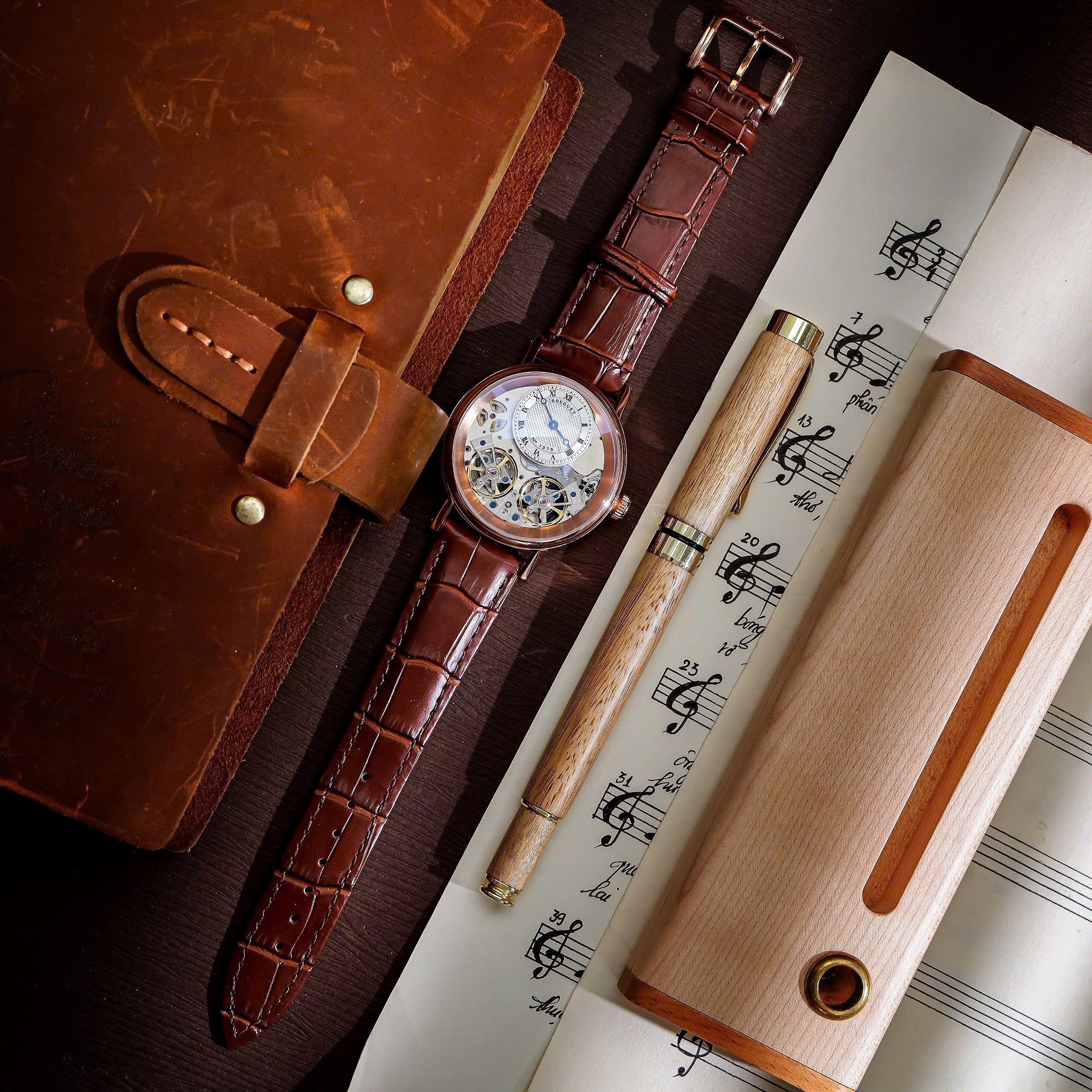 Đồng Hồ Breguet Tradition Fake Cao Cấp Cơ Lộ Máy Automatic Nam Dây Da Màu Nâu 42mm