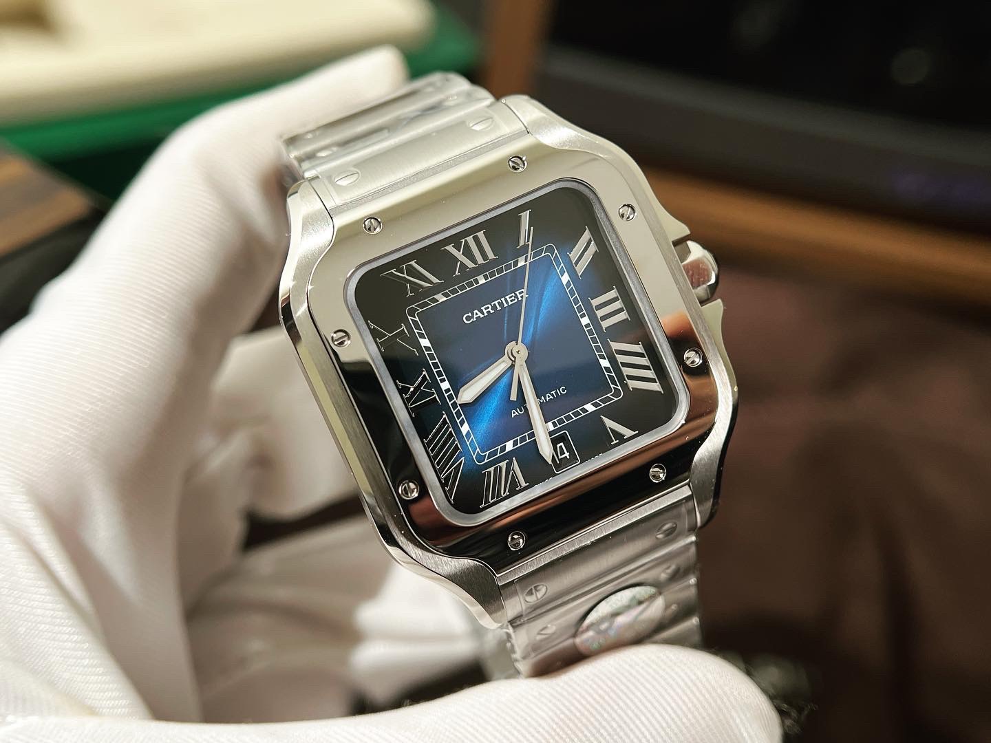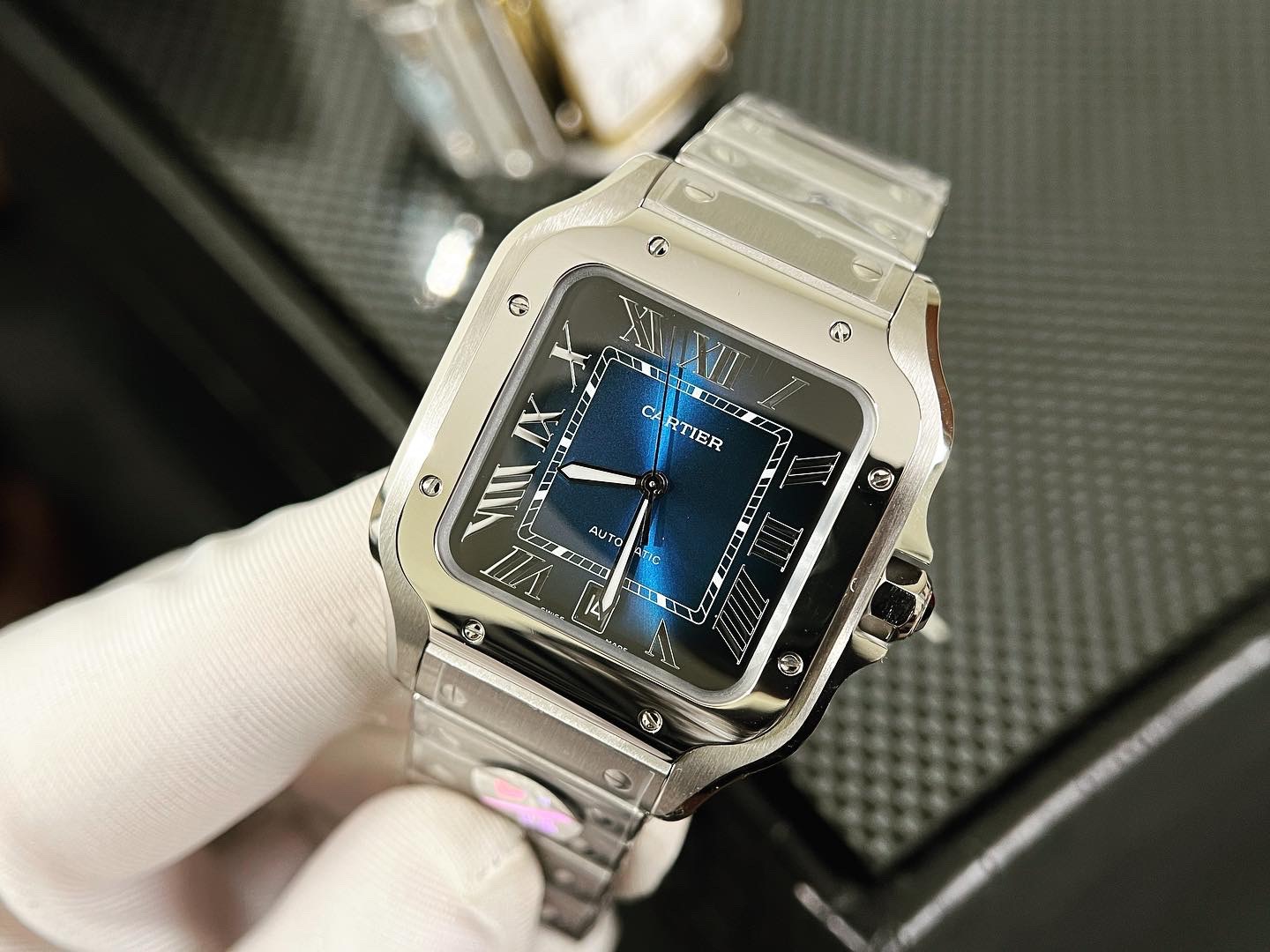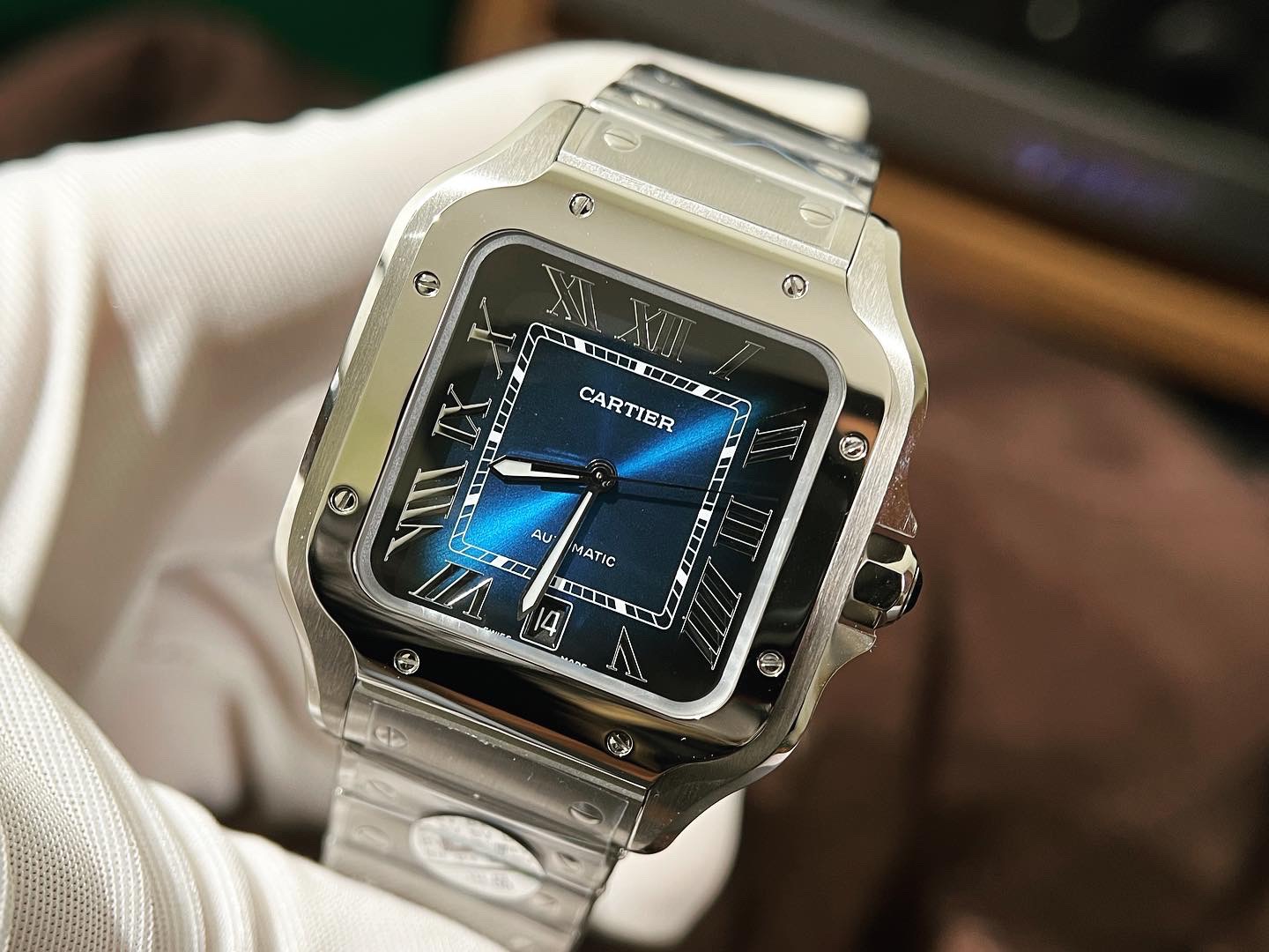 Giới Thiệu Đồng Hồ Cartier Chế Tác Santos Mặt Xanh Dương