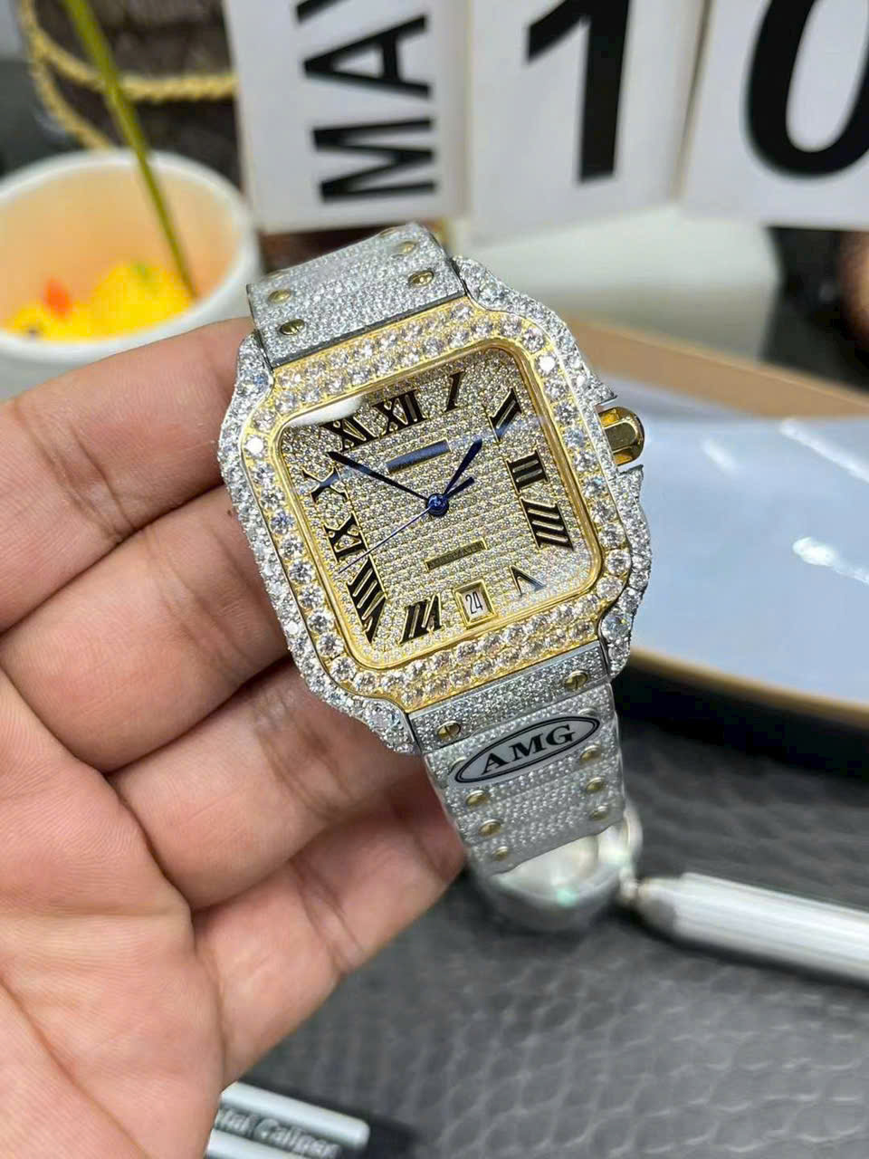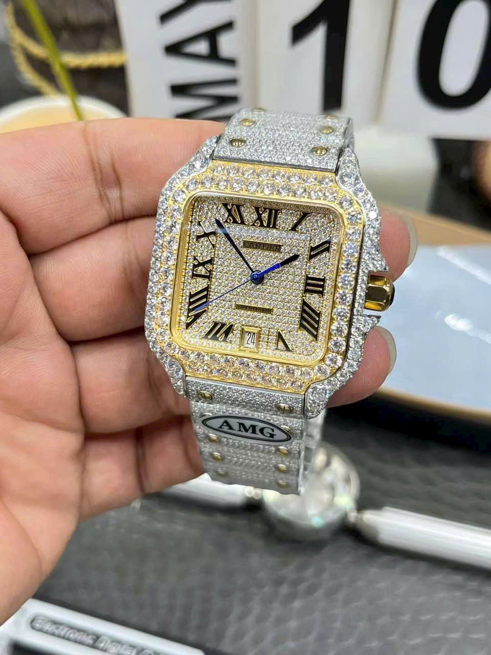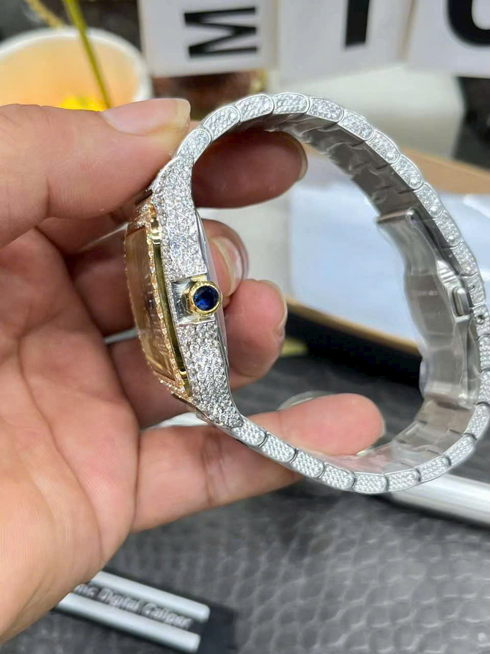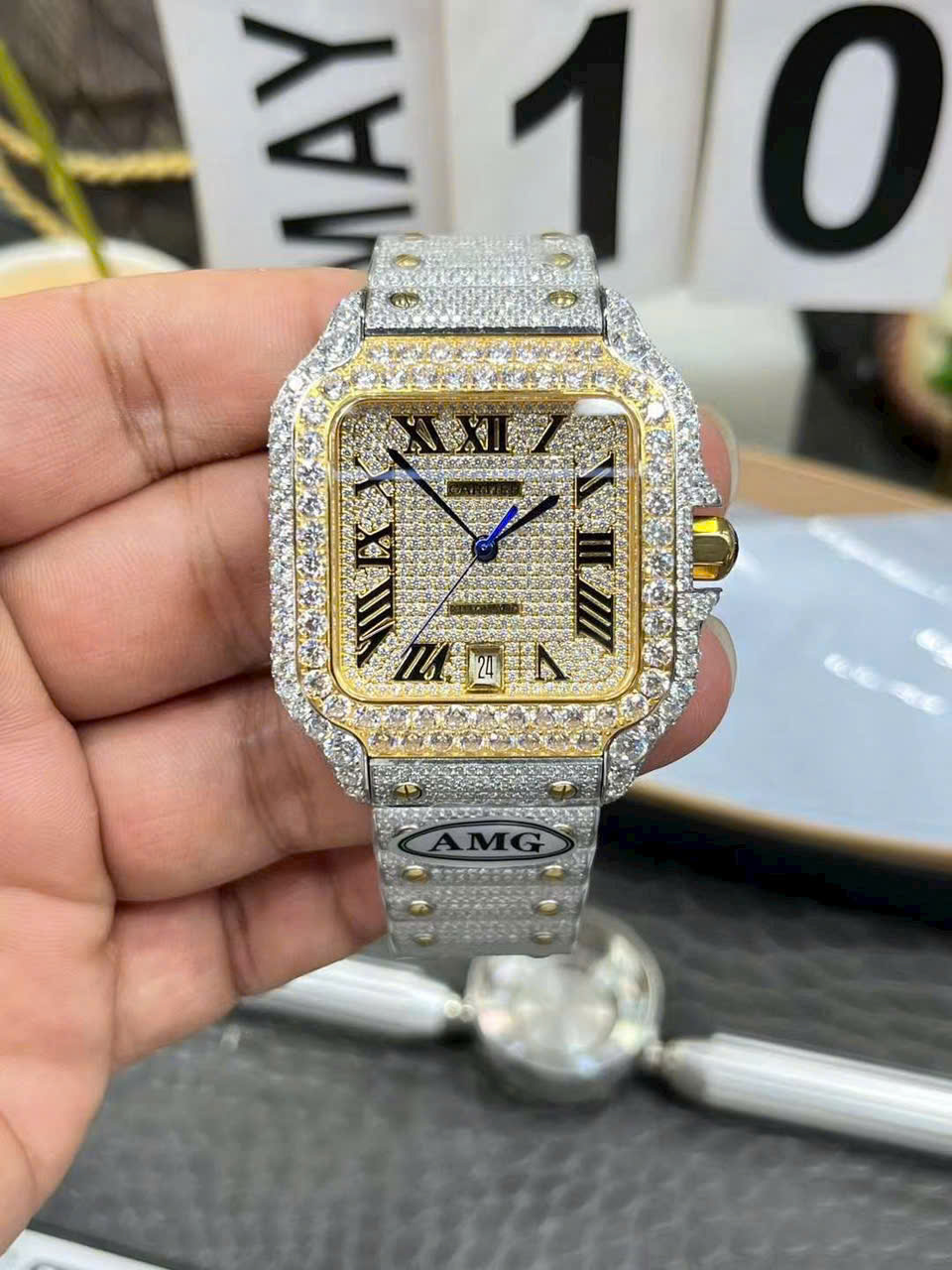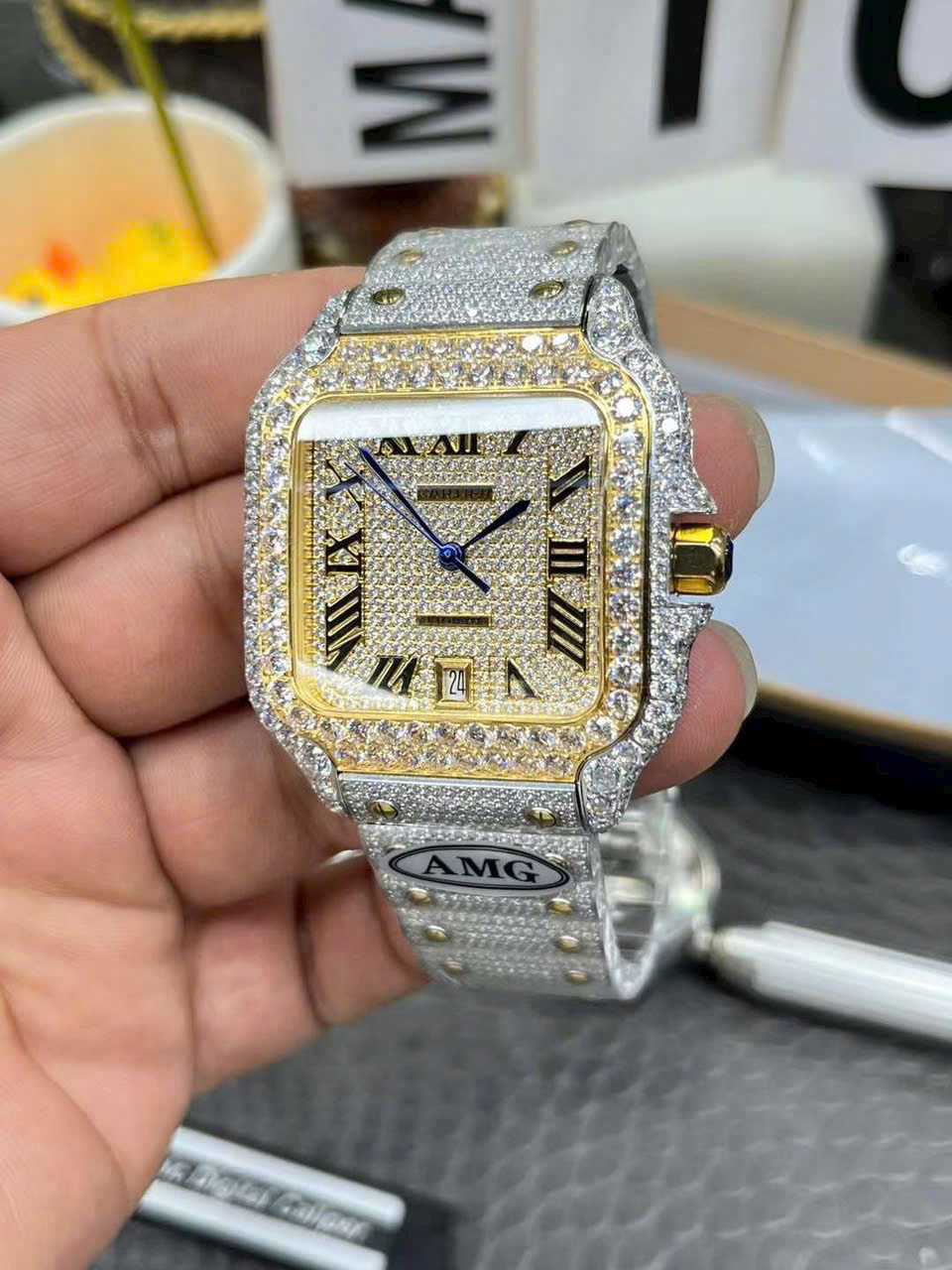 Đồng Hồ Cartier Santos Đính Full Đá Demi Gold Xưởng AMG Factory 39.8mm