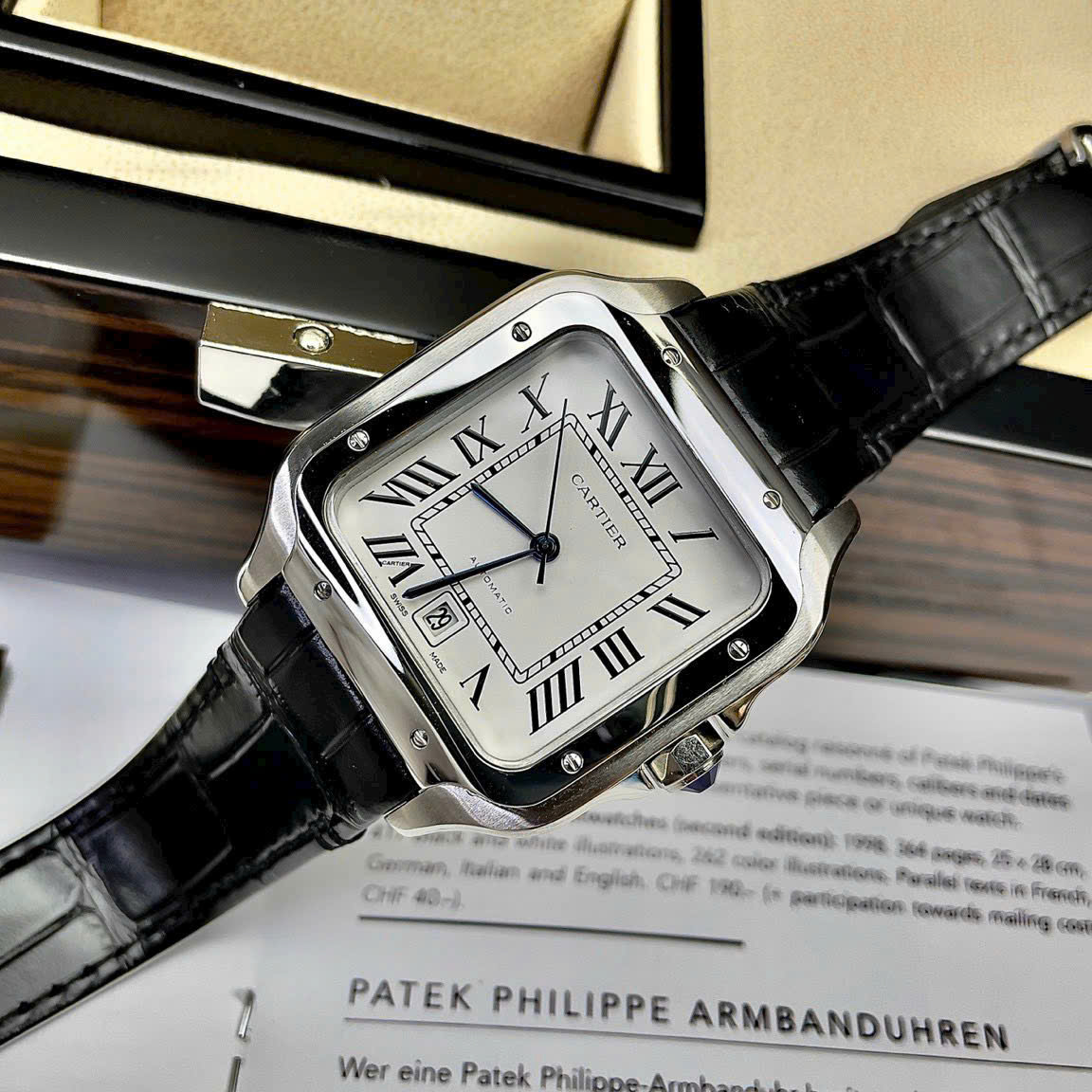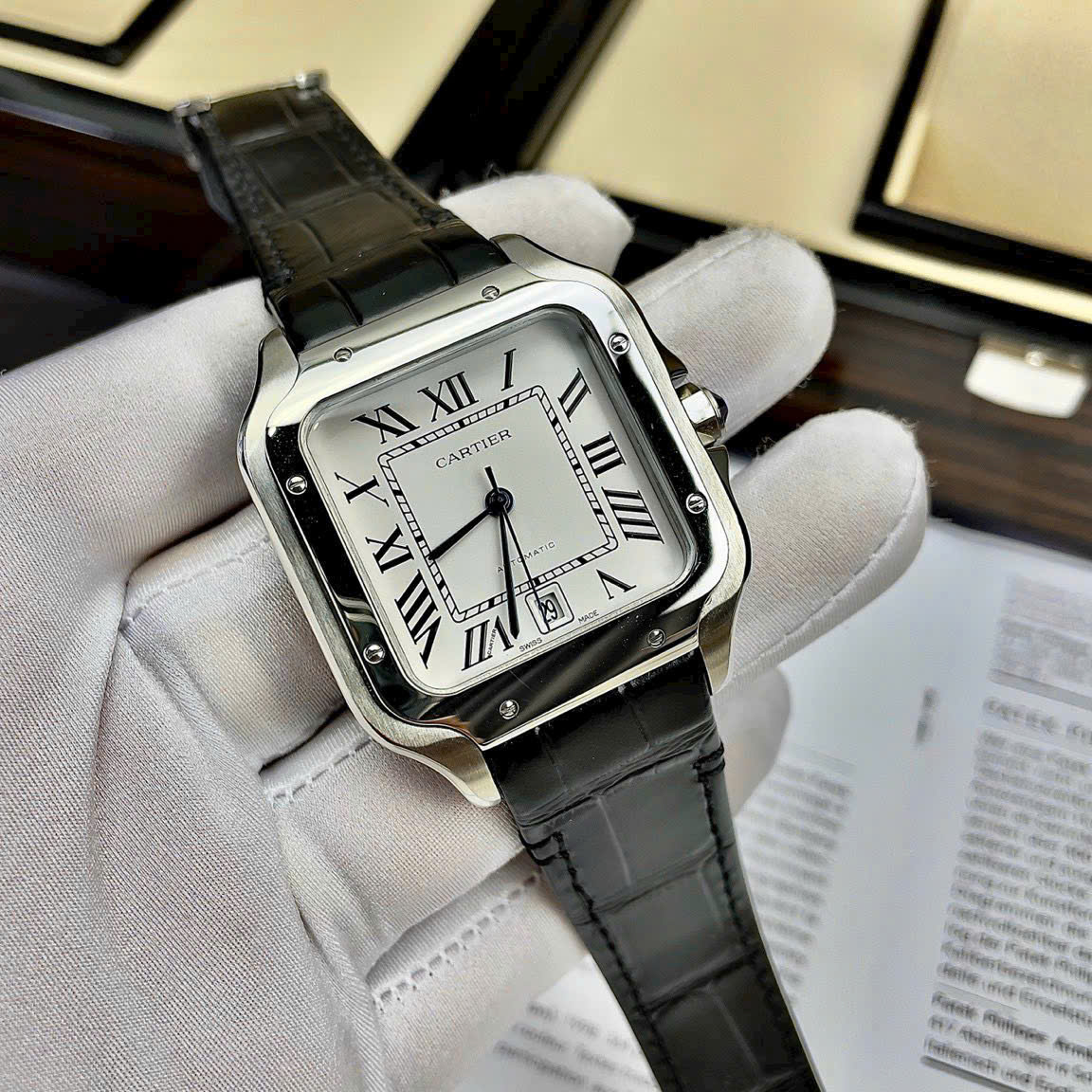 Đồng Hồ Cartier Santos Fake Máy Cơ Nhật Automatic Nam Dây Da 40mm