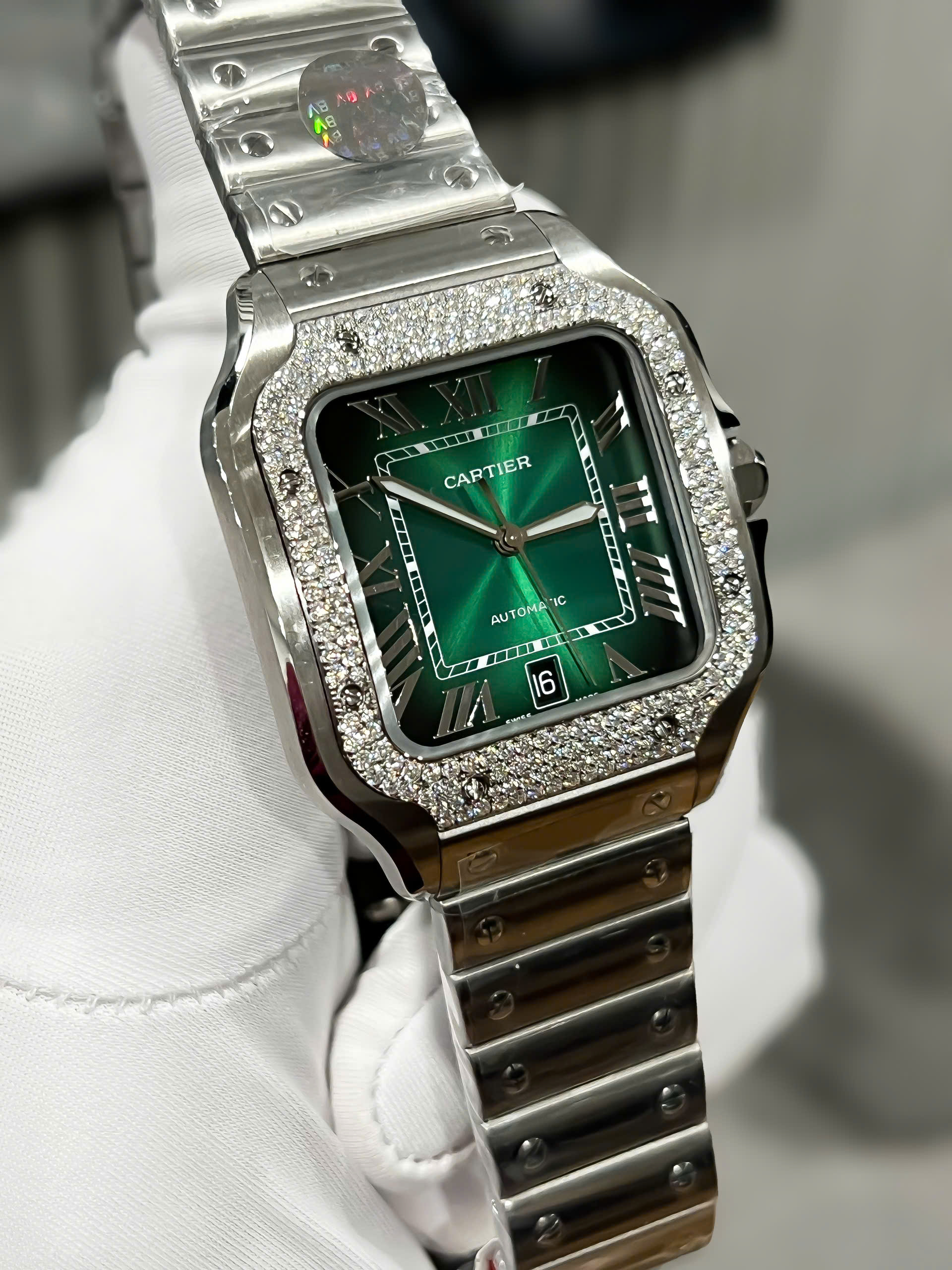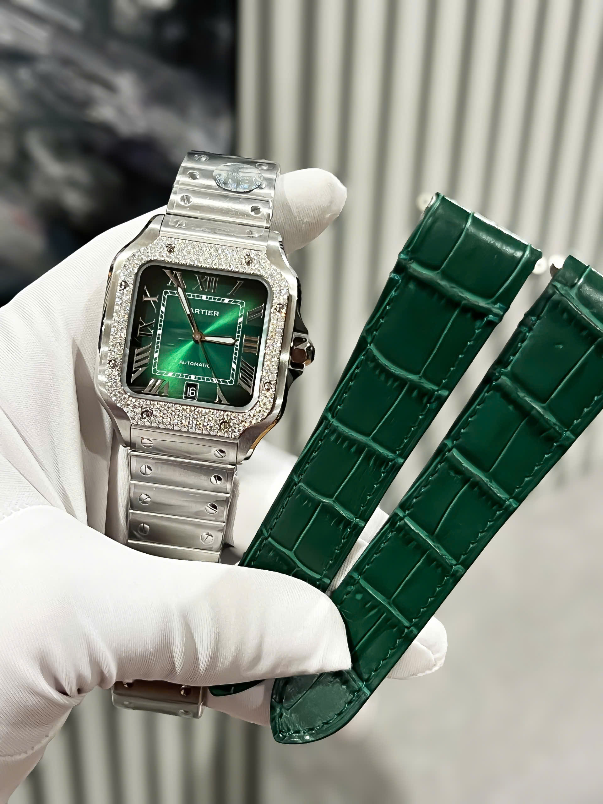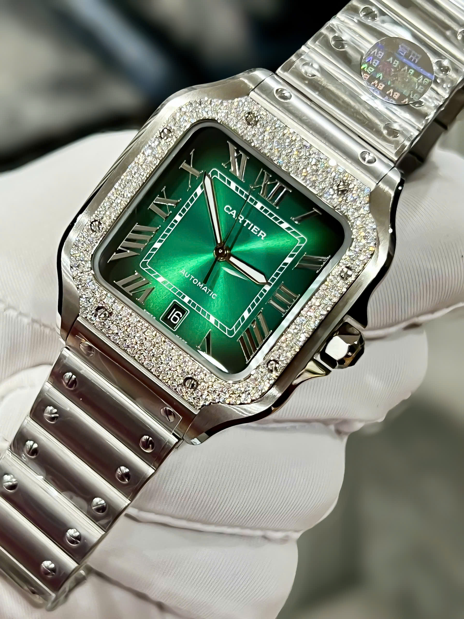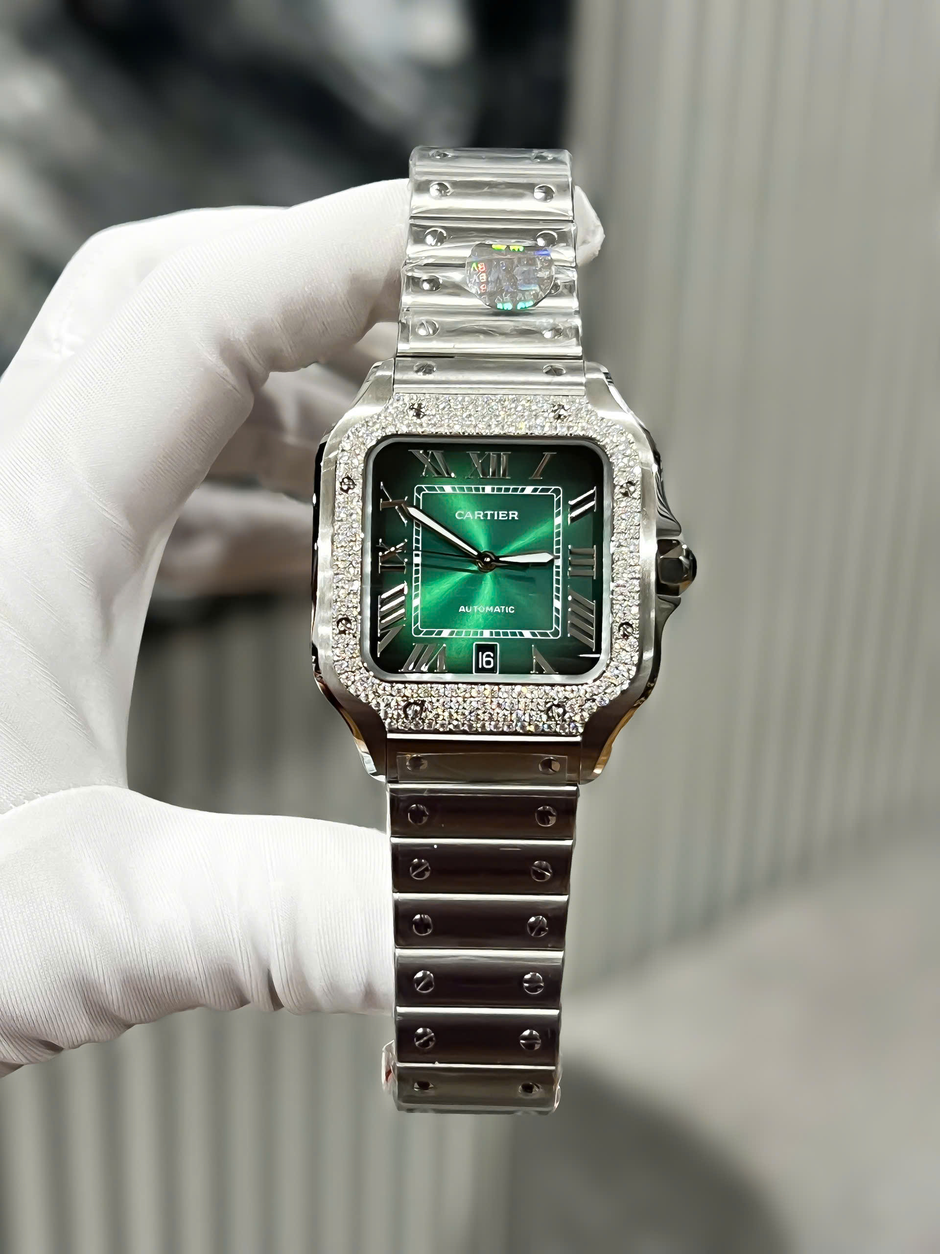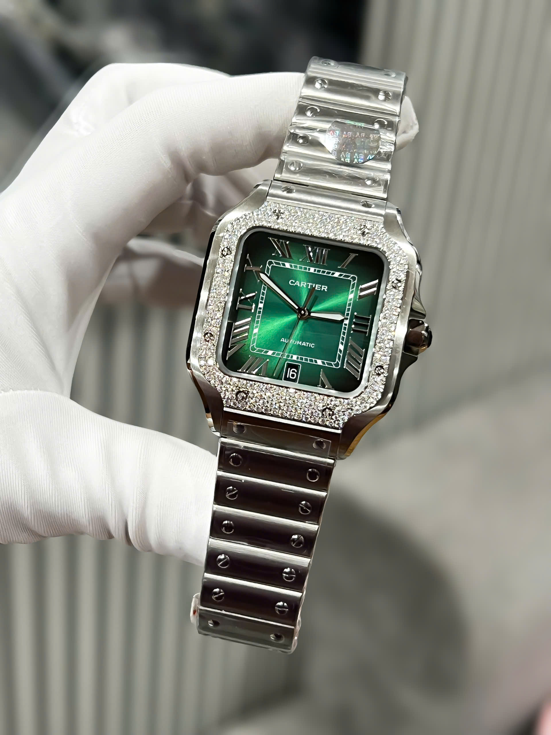 Giới Thiệu Đồng Hồ Cartier Santos Mặt Xanh Lá Cây Chế Tác