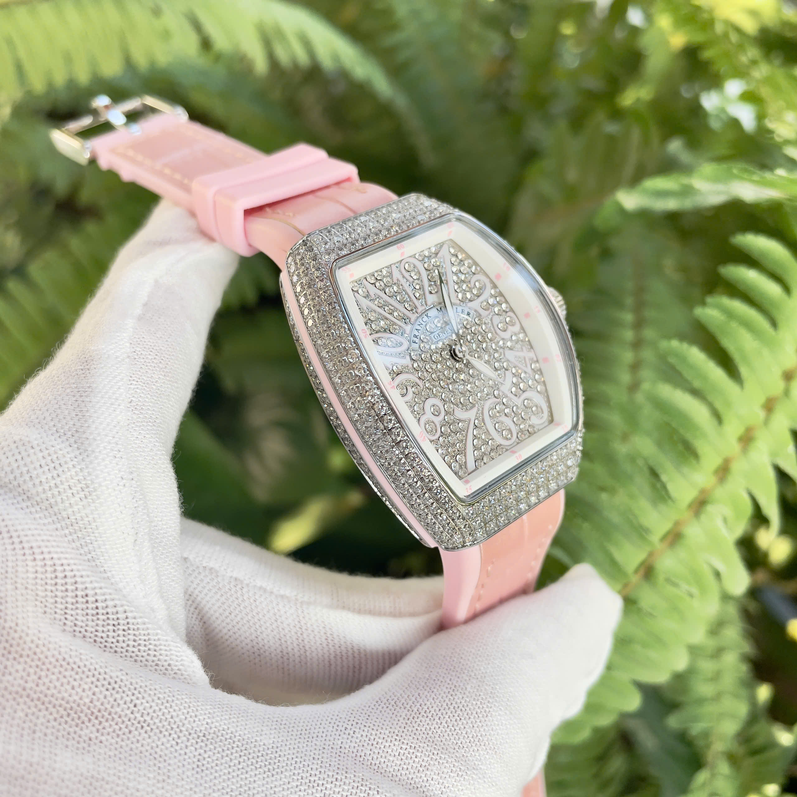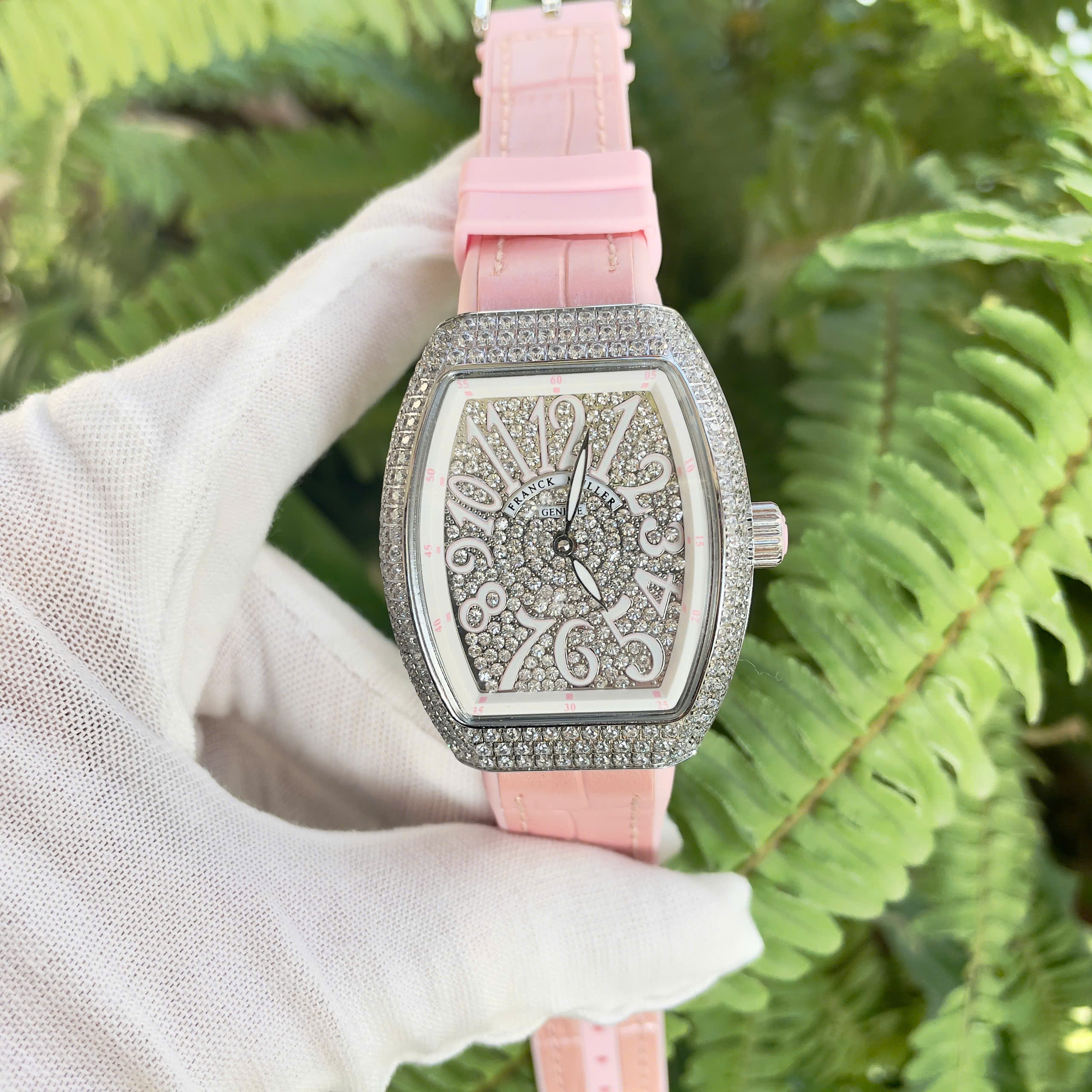 Đồng Hồ Franck Muller Vanguard V32 Nữ Đính Full Đá Màu Hồng Fake Máy Nhật 36mm