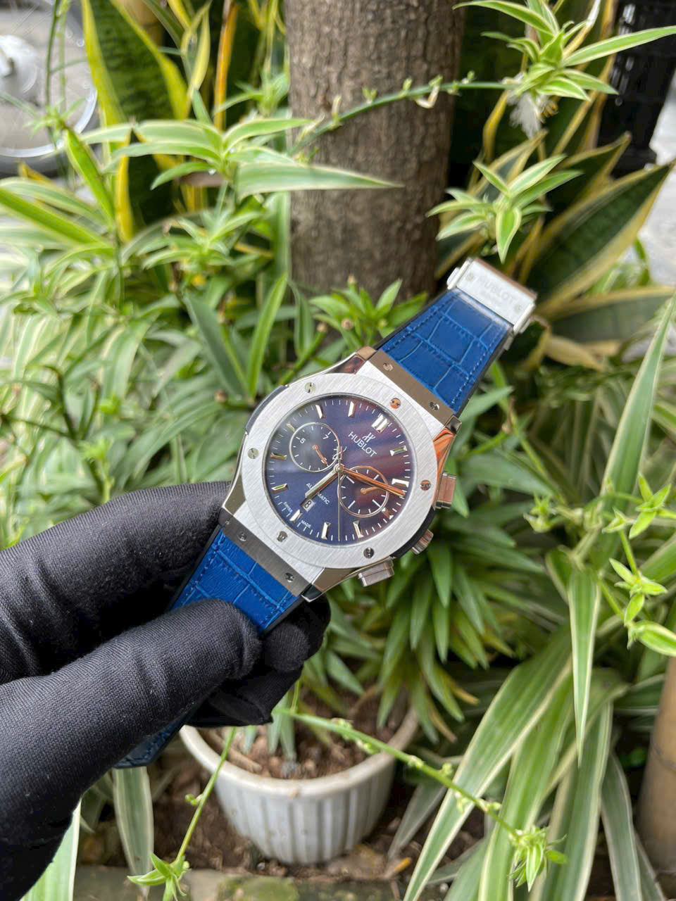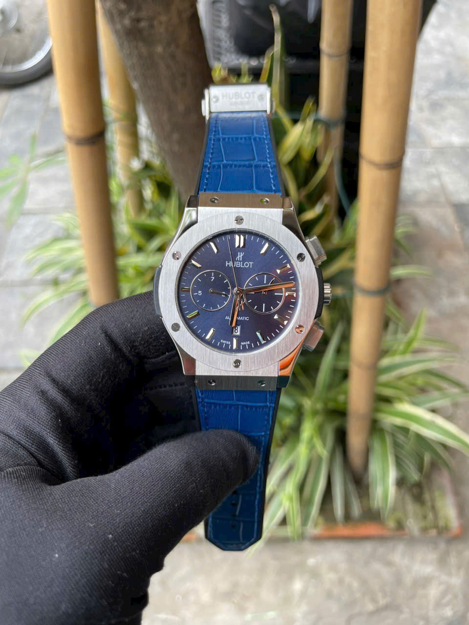 Đồng Hồ Hublot Automatic Nam Fake Máy Nhật Màu Xanh Dương 42mm
