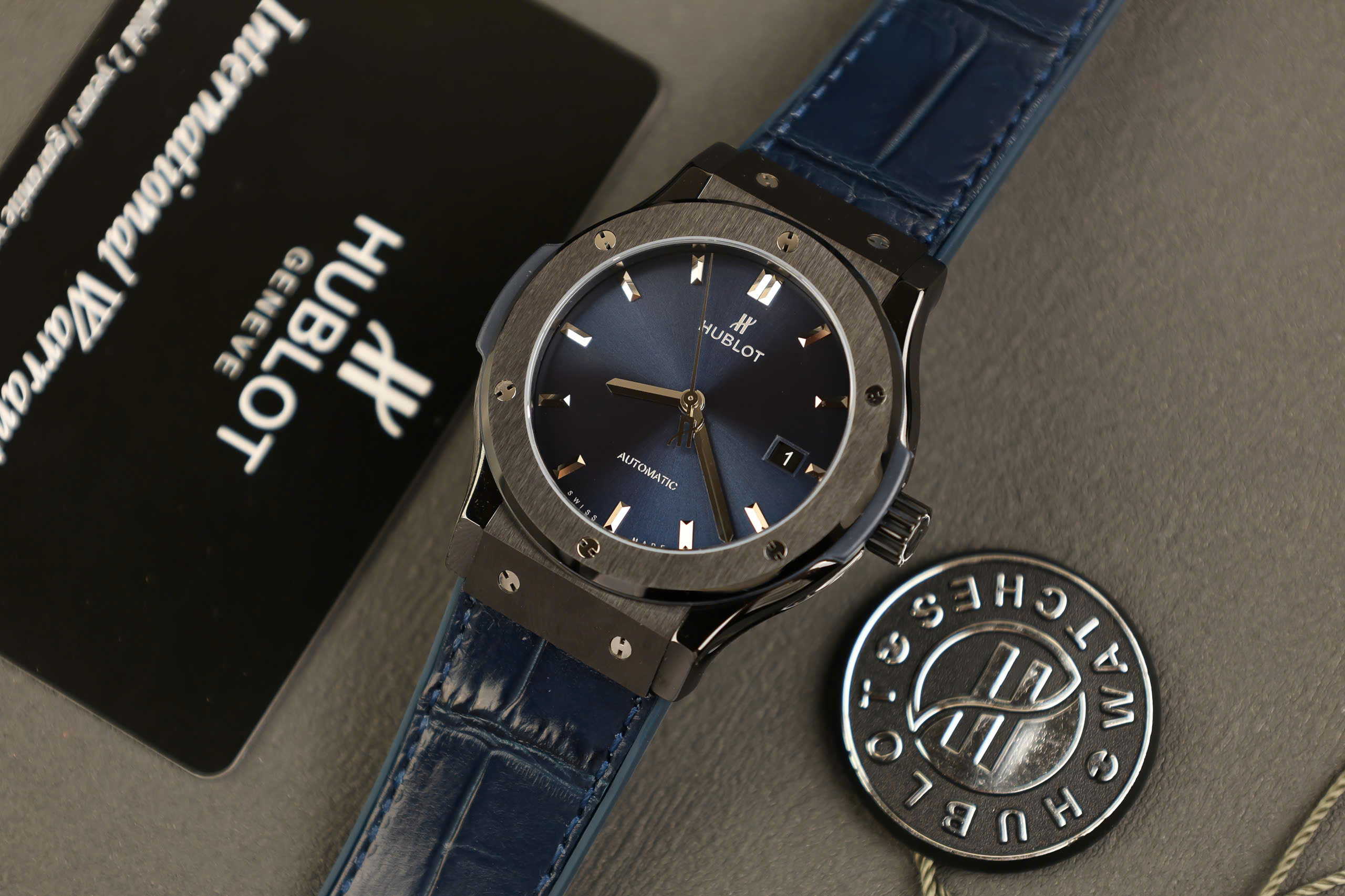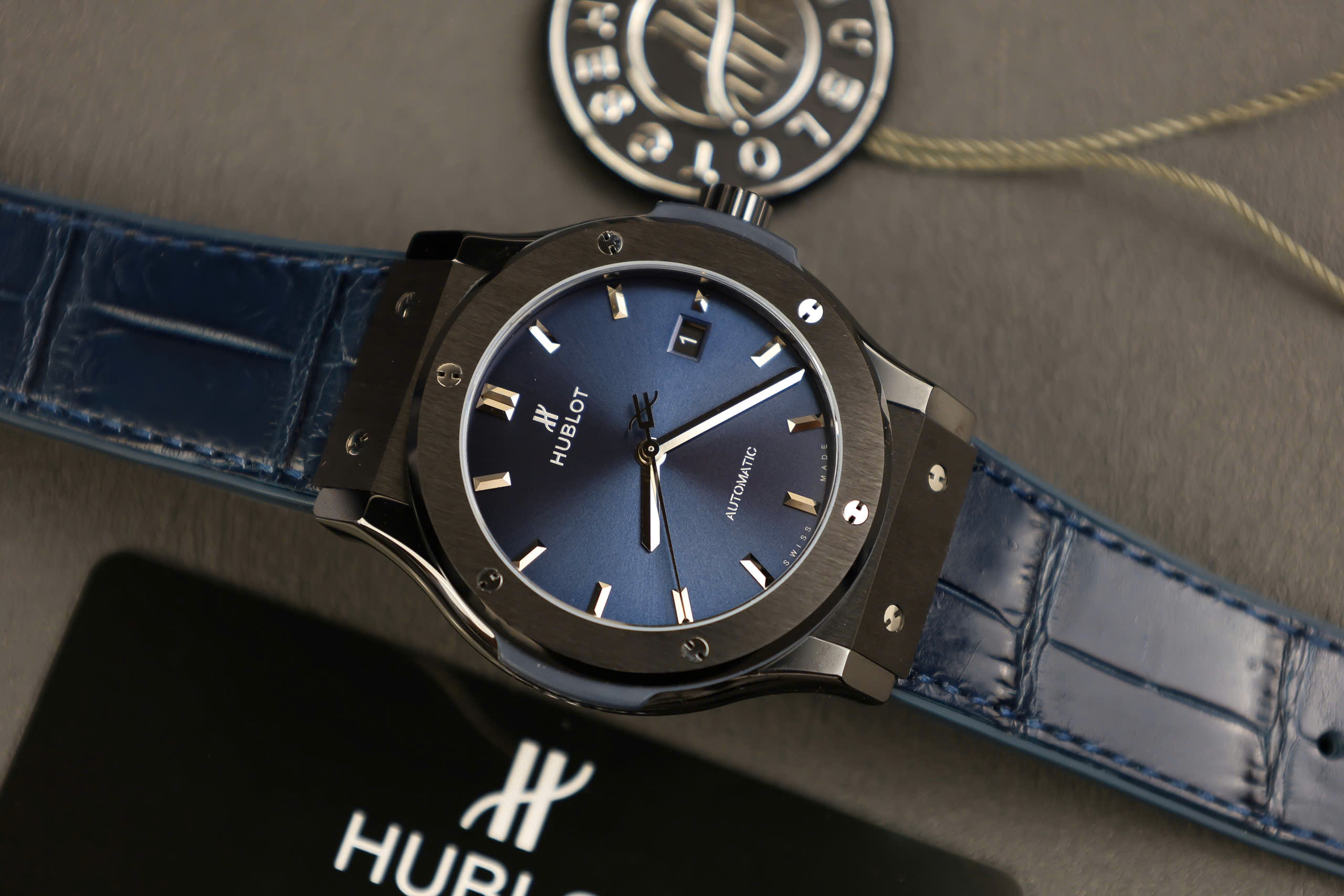 Đồng Hồ Hublot Chế Tác Vỏ Gốm Đen Ceramic Mặt Xanh Máy Tinh Chỉnh SW300 42mm