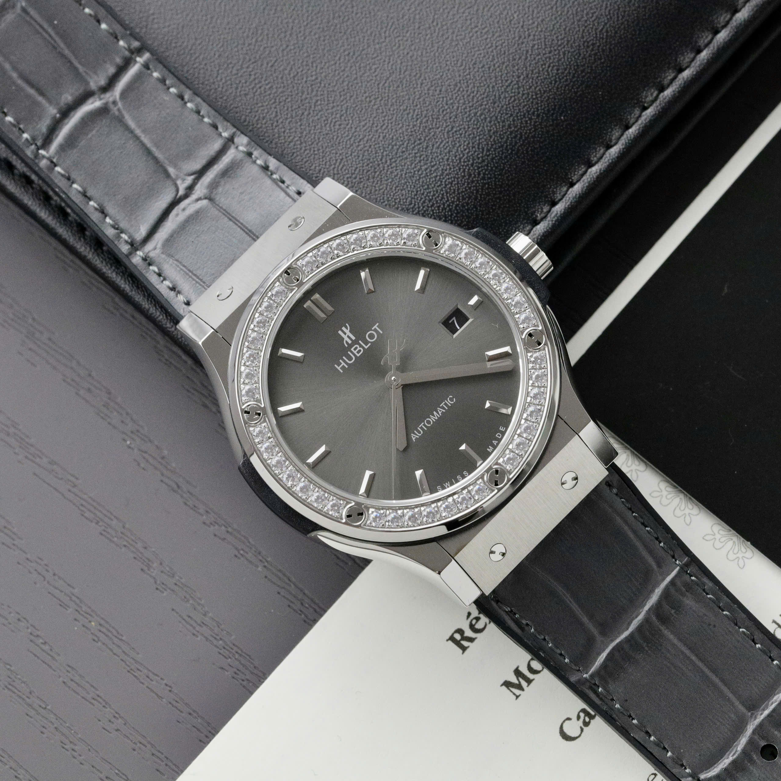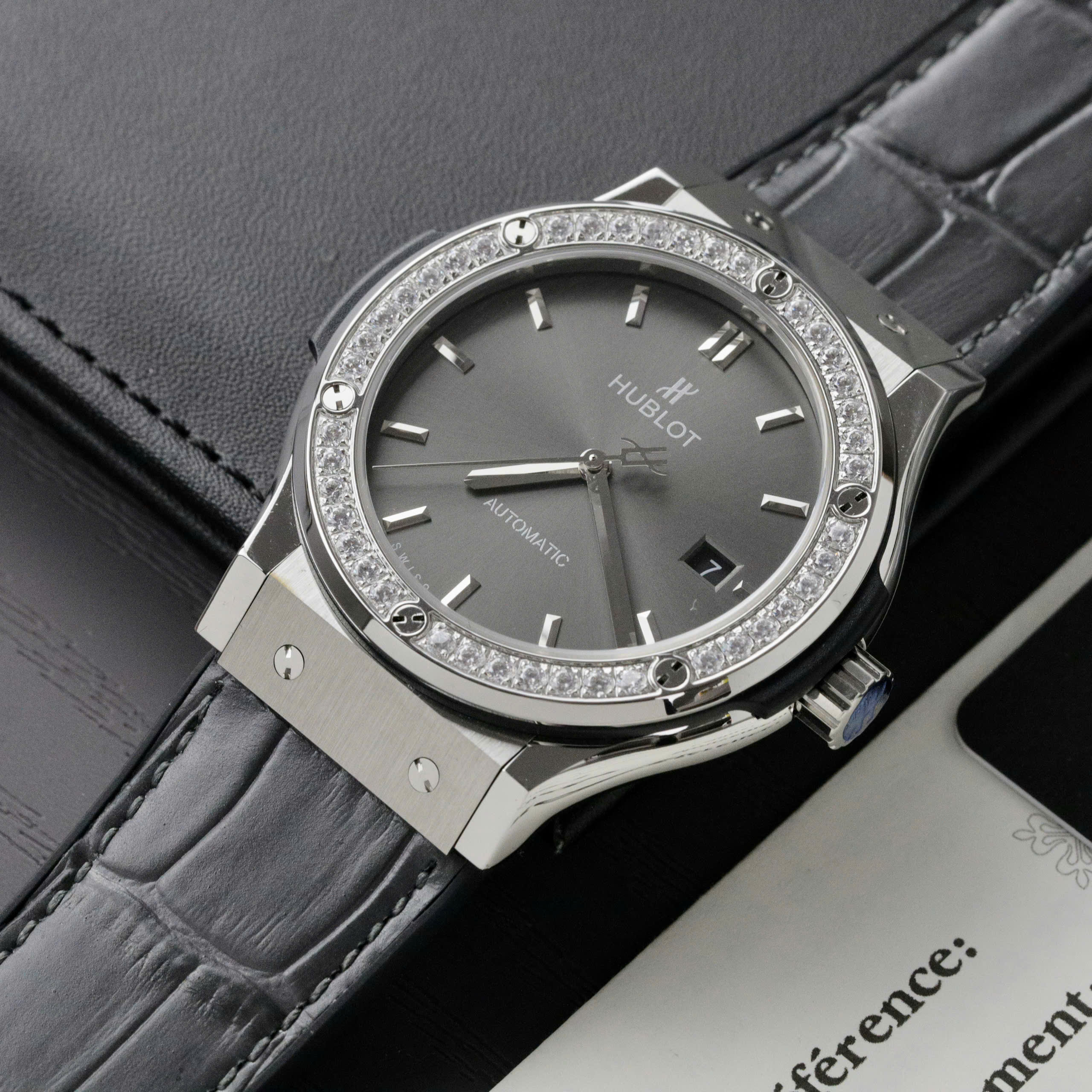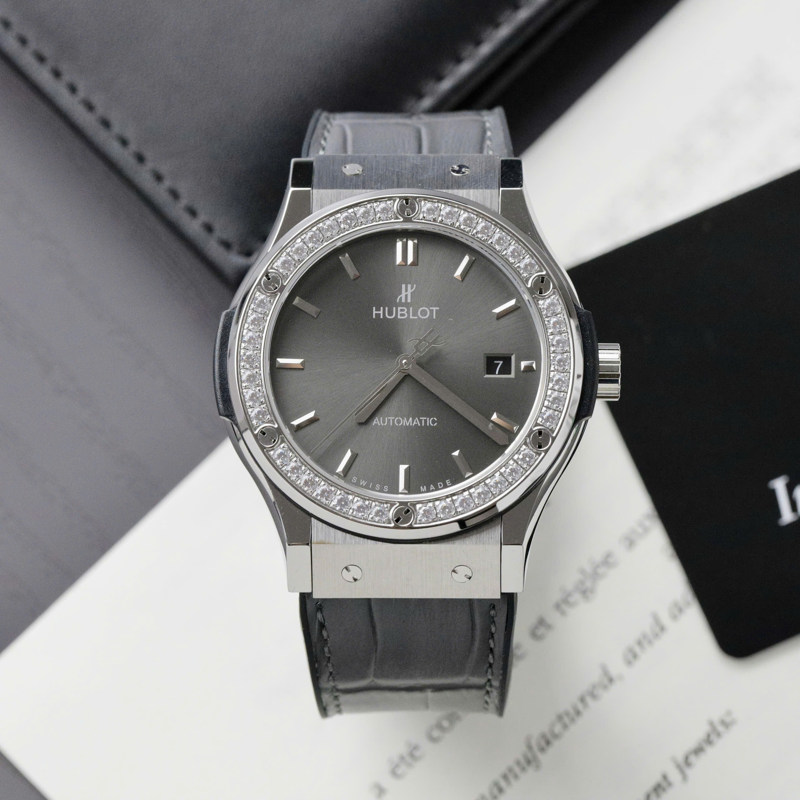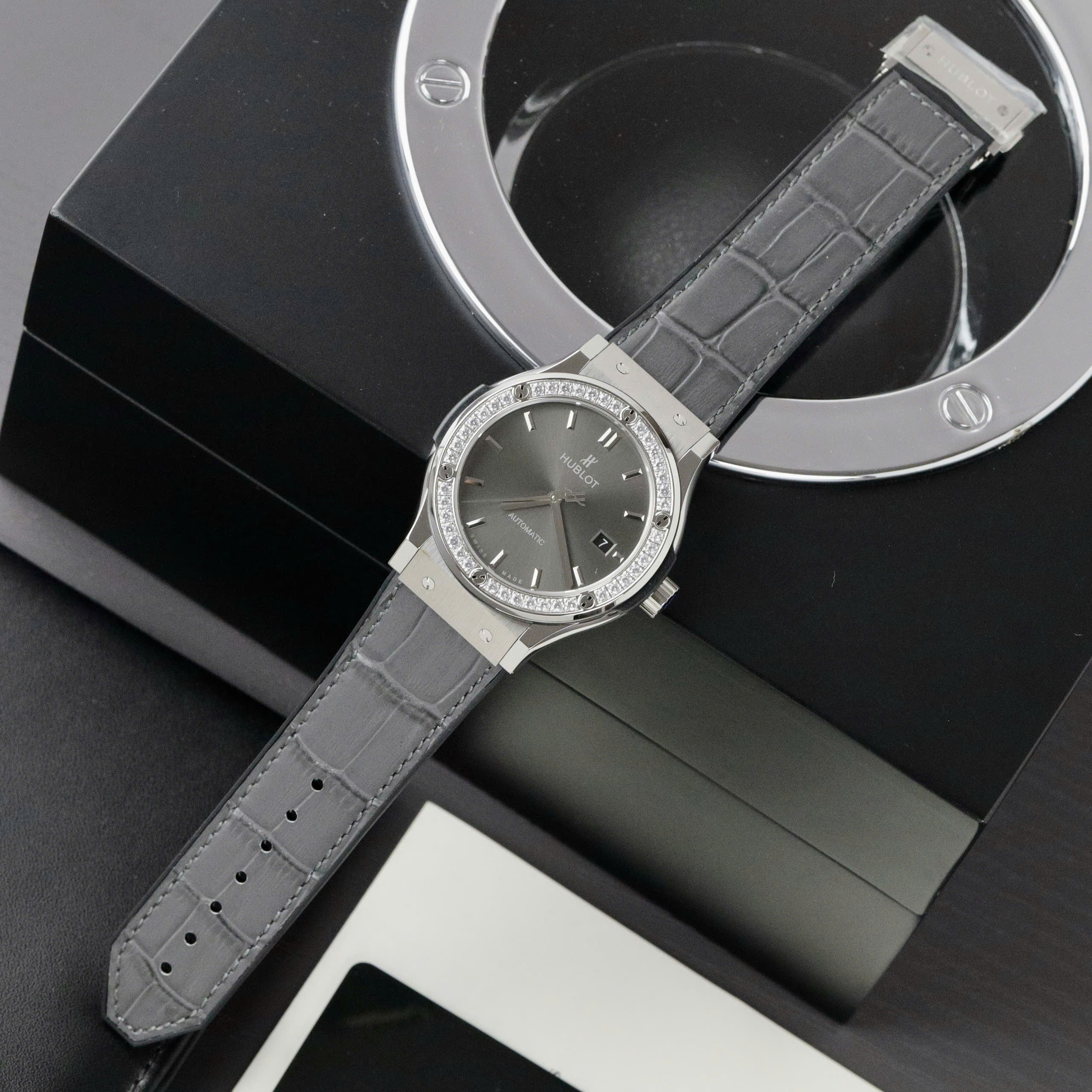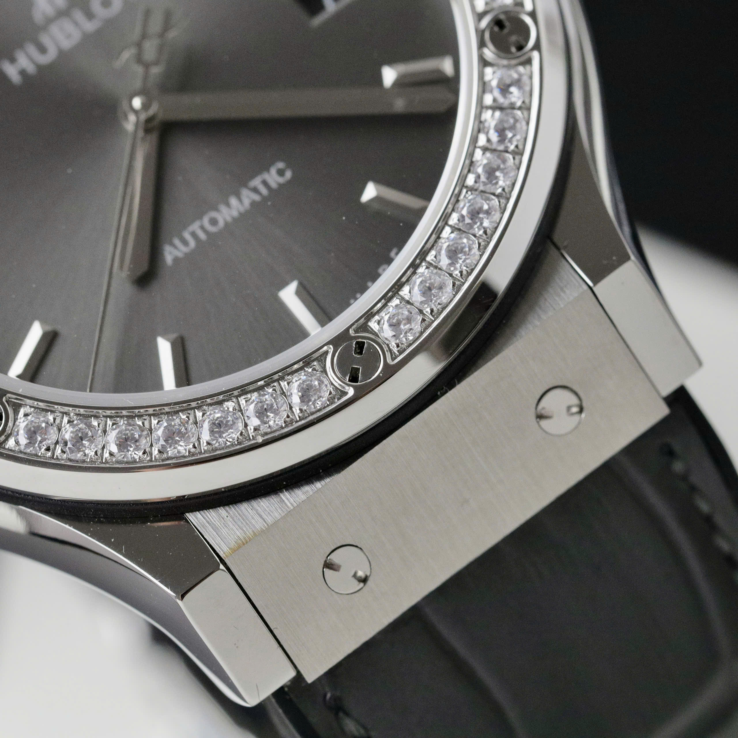 Đồng Hồ Hublot Classic Fusion Đính Đá Mặt Xám Fake Cao Cấp Xưởng HB 42mm