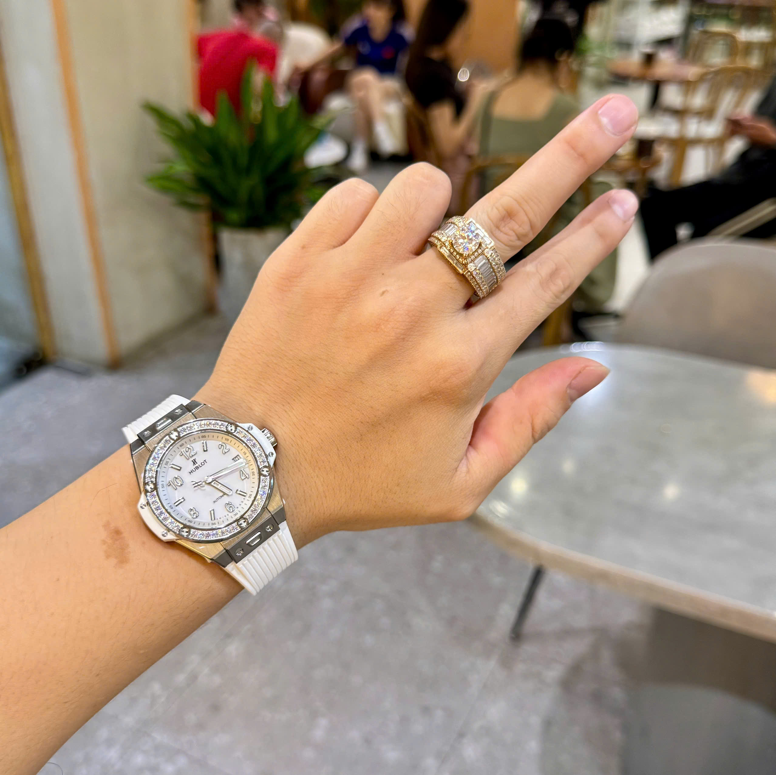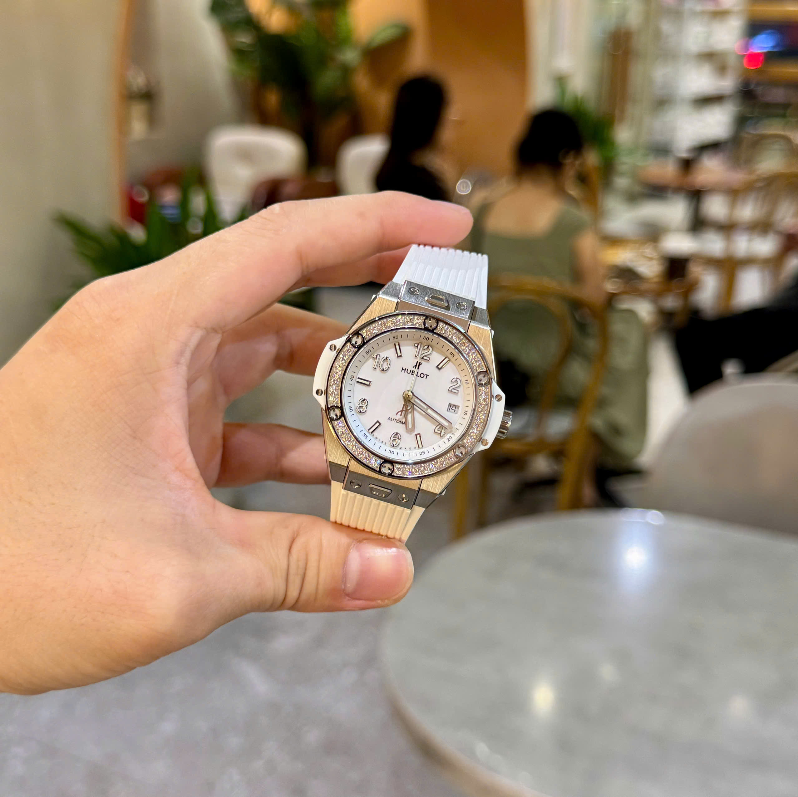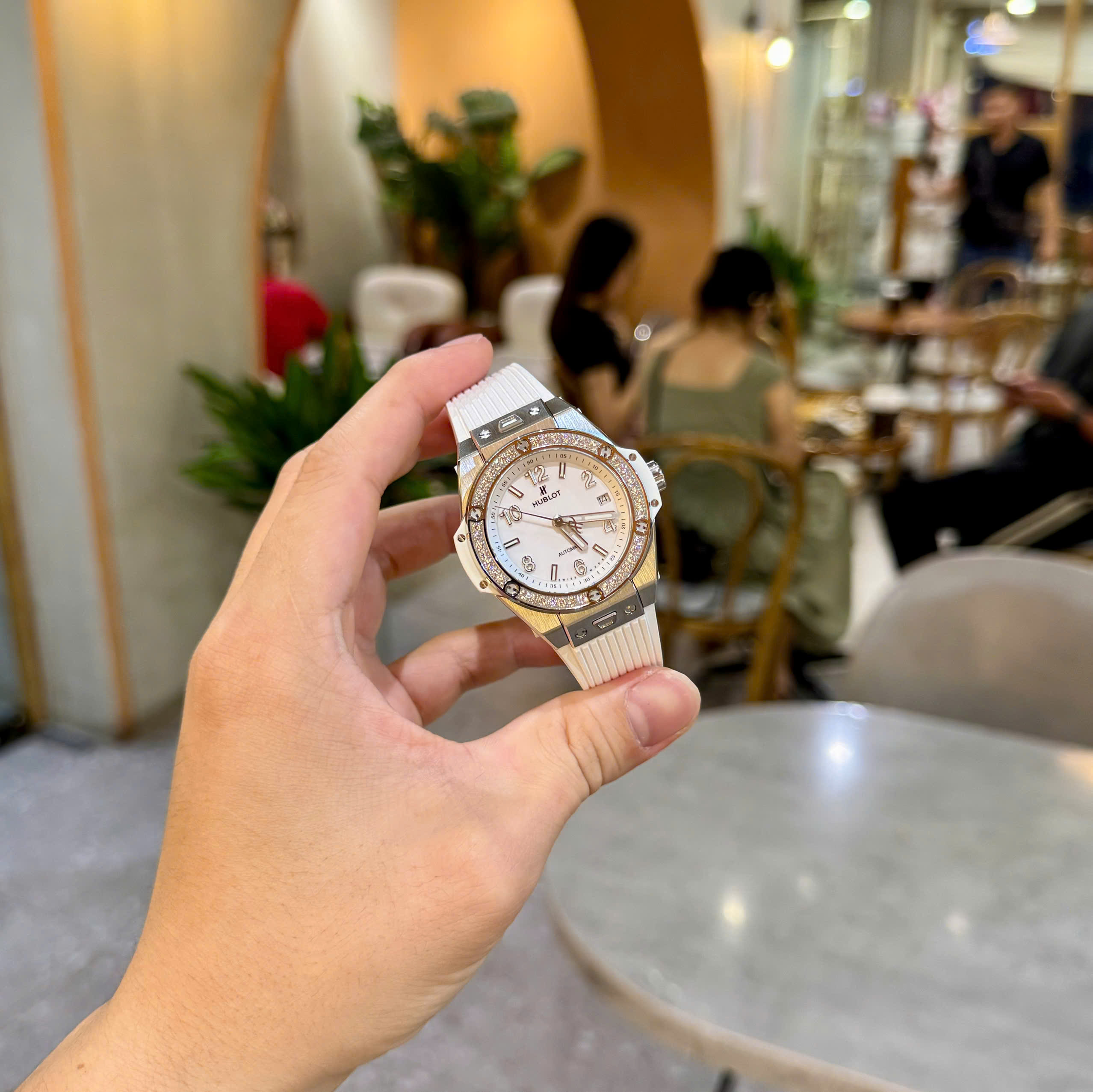 Đồng Hồ Hublot Màu Trắng Đính Đá Big Bang One Click Replica 11 39mm