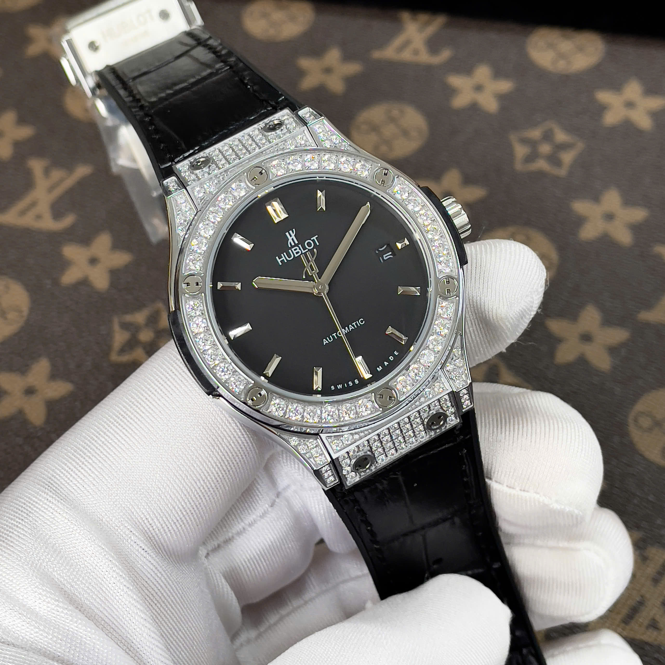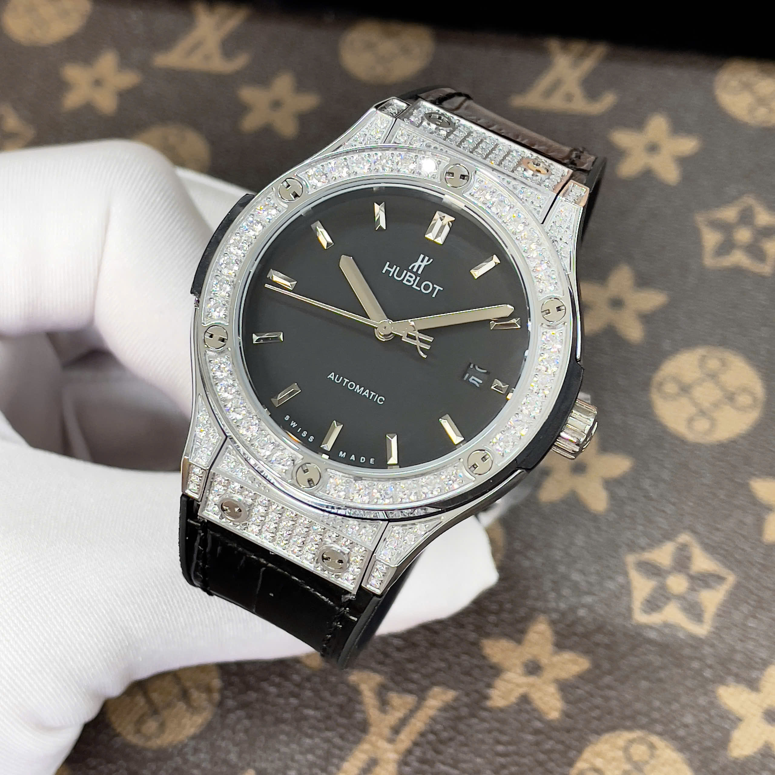 Đồng Hồ Hublot Nam Đính Đá Fake Máy Cơ Automatic Nhật Màu Đen 38-42mm