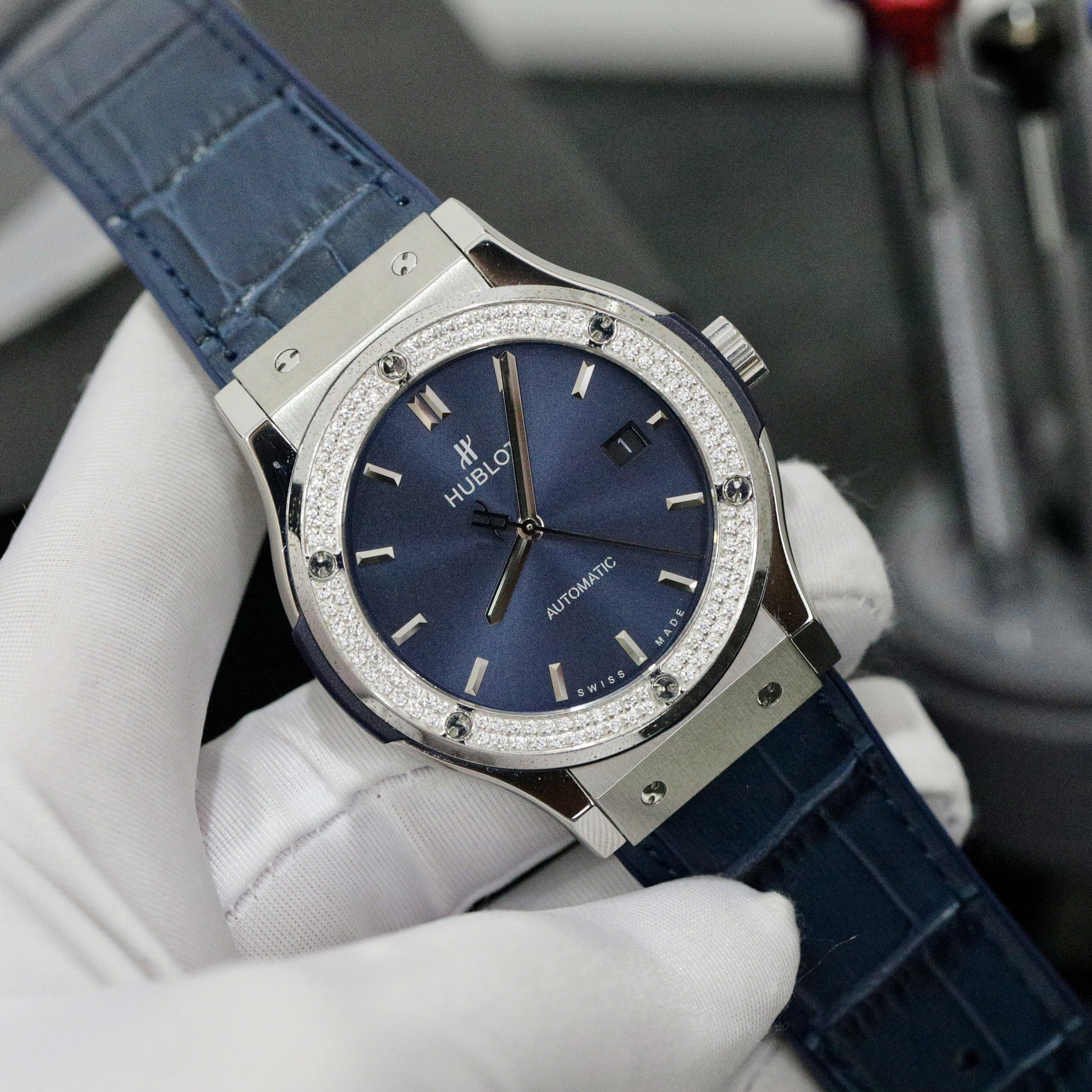 Đồng Hồ Hublot Nam Đính Đá Mặt Xanh Replica Xưởng HB Classic Fusion 42mm