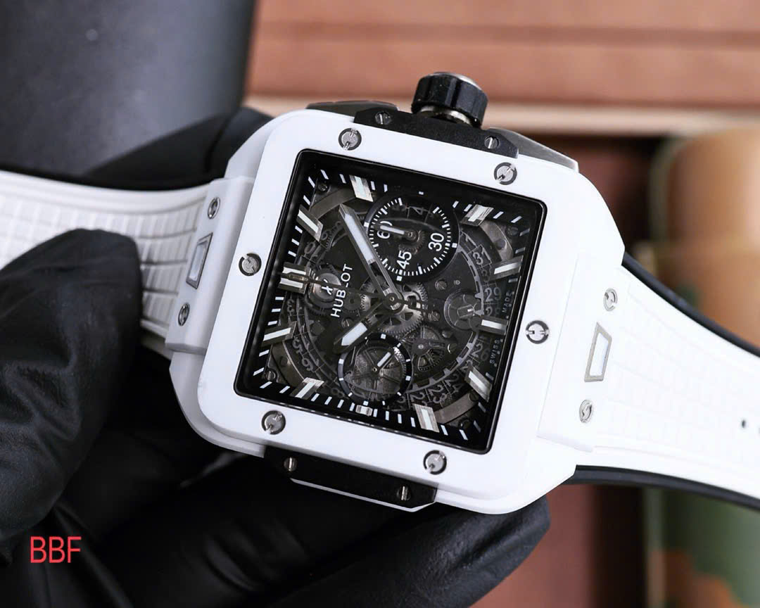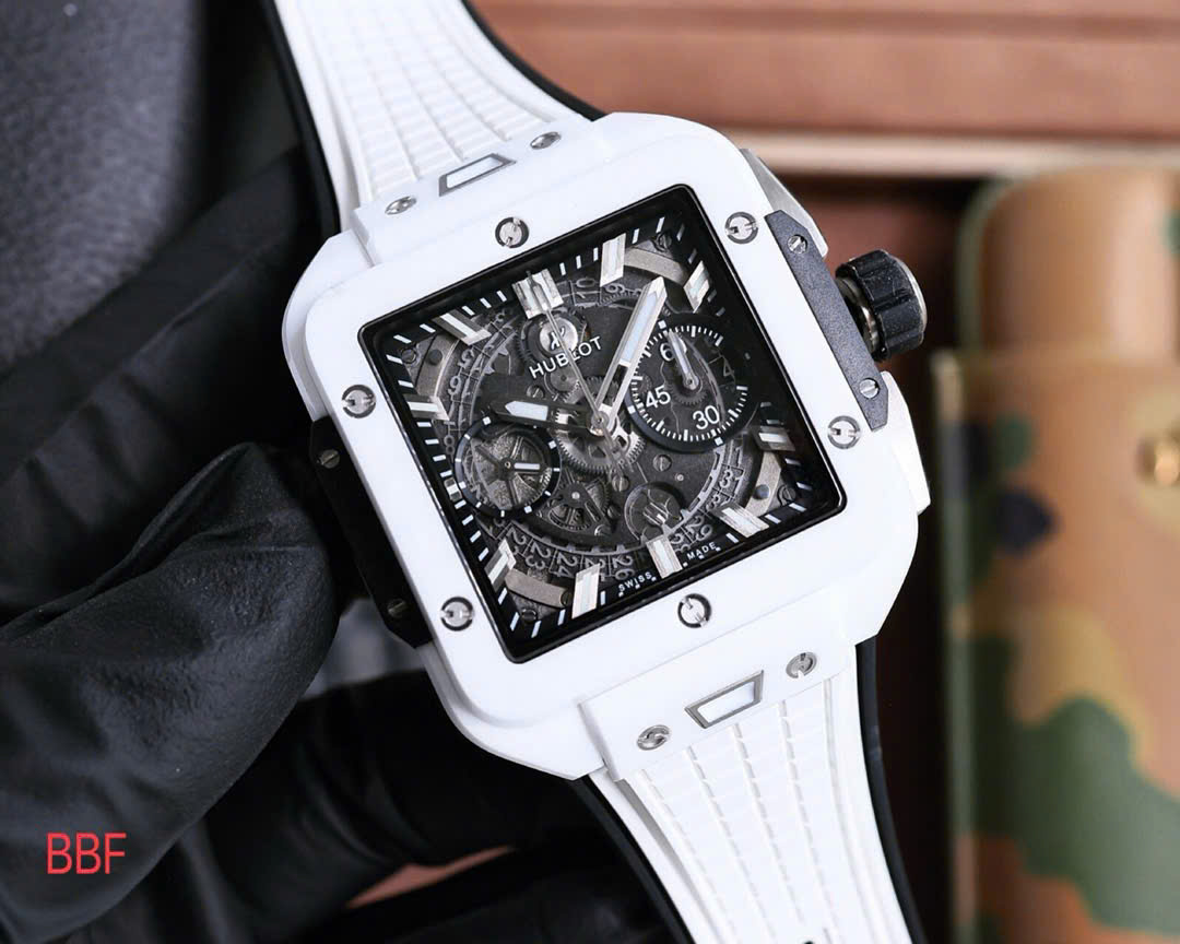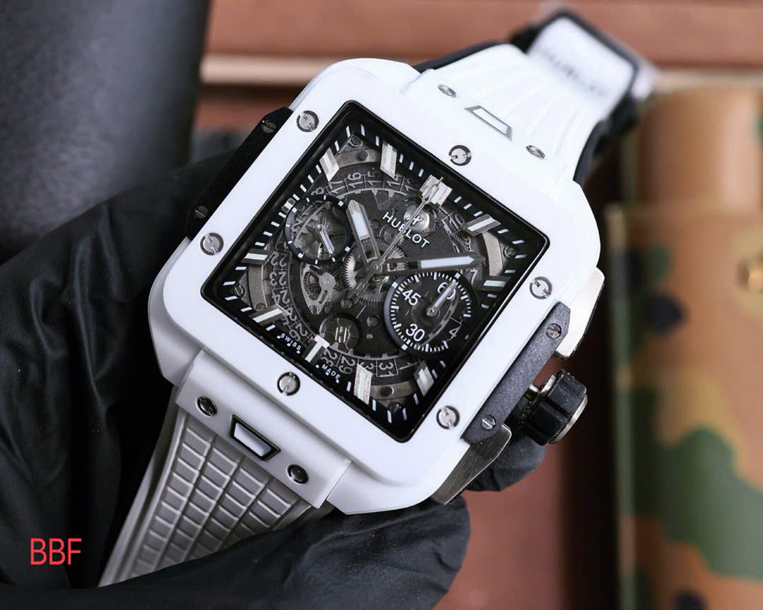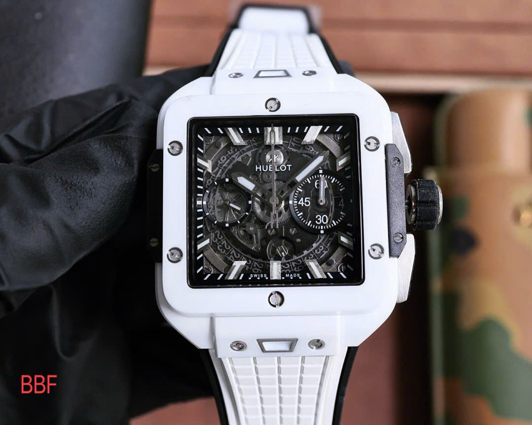 Đồng Hồ Hublot Square Bang Unico Gốm Trắng Replica Nhà Máy BBF 42mm