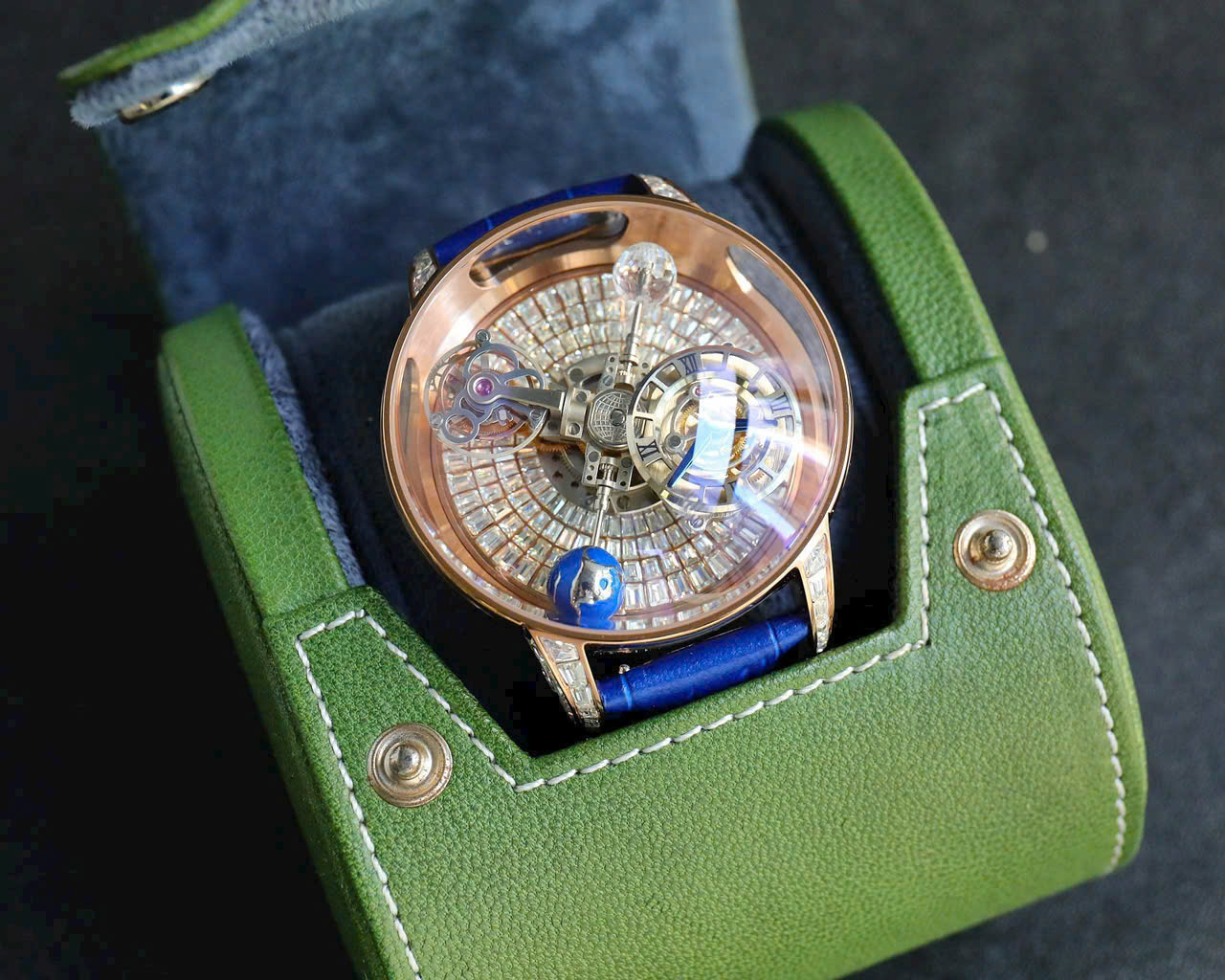 Đồng Hồ Jacob & Co Astronomia Nam Dây Da Màu Xanh Dương Fake 1:1 45mm