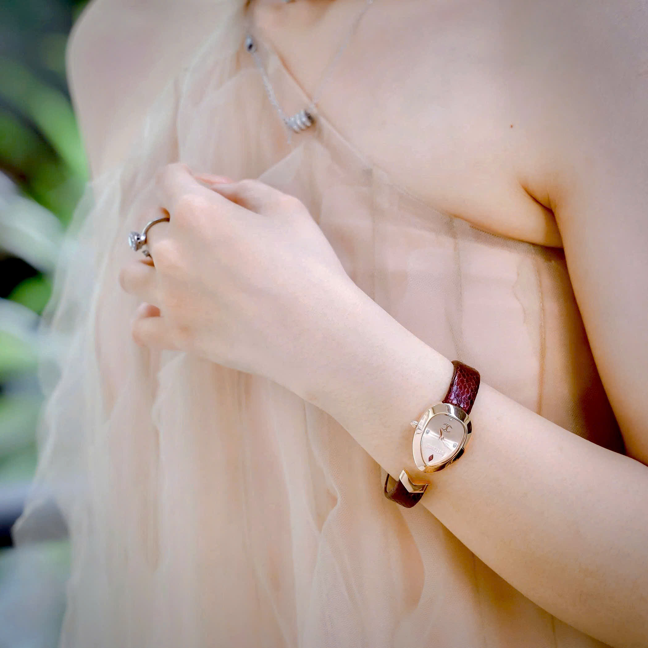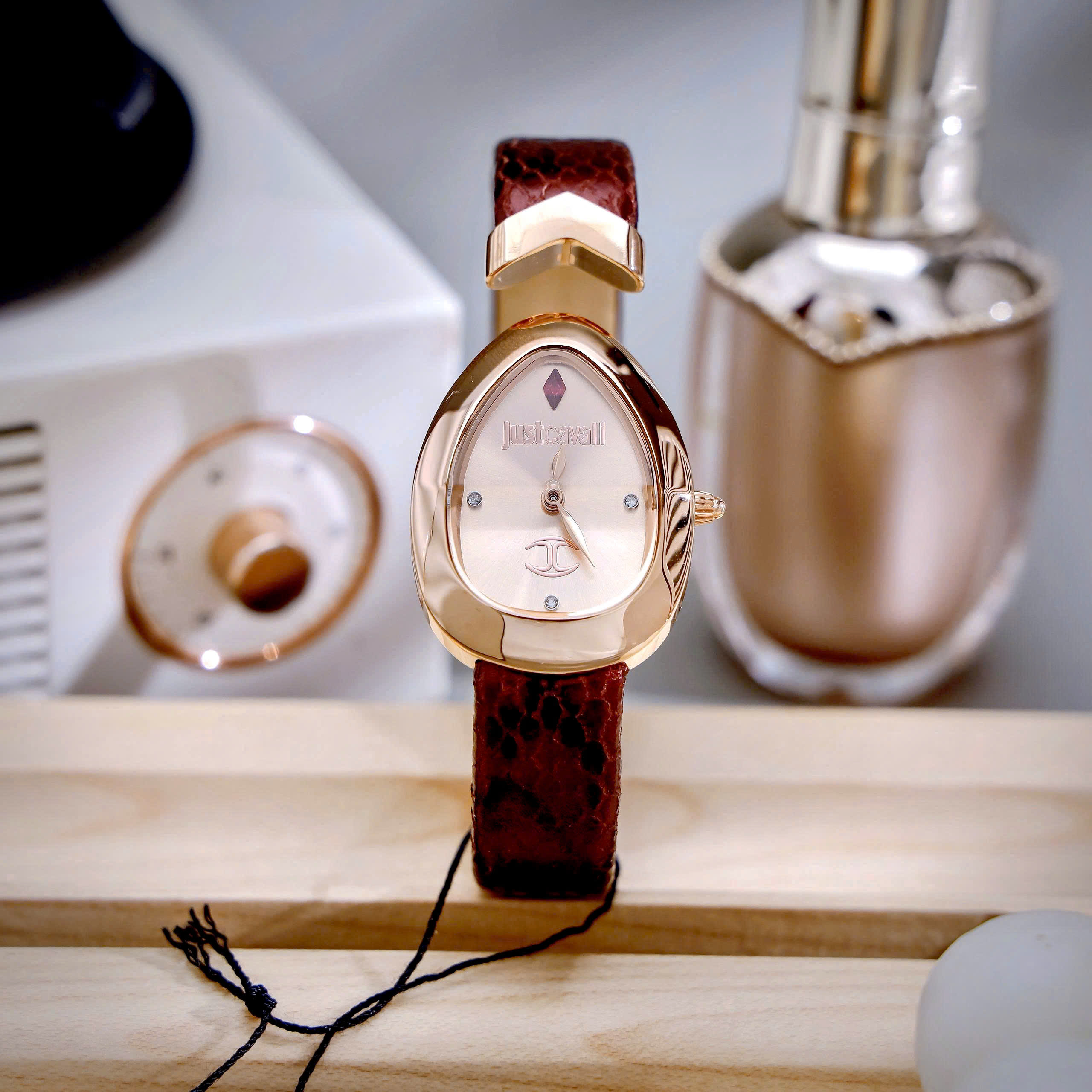 Đồng Hồ Just Cavalli Embellished Nữ Dây Da Màu Nâu Like Auth Máy Pin 30mm