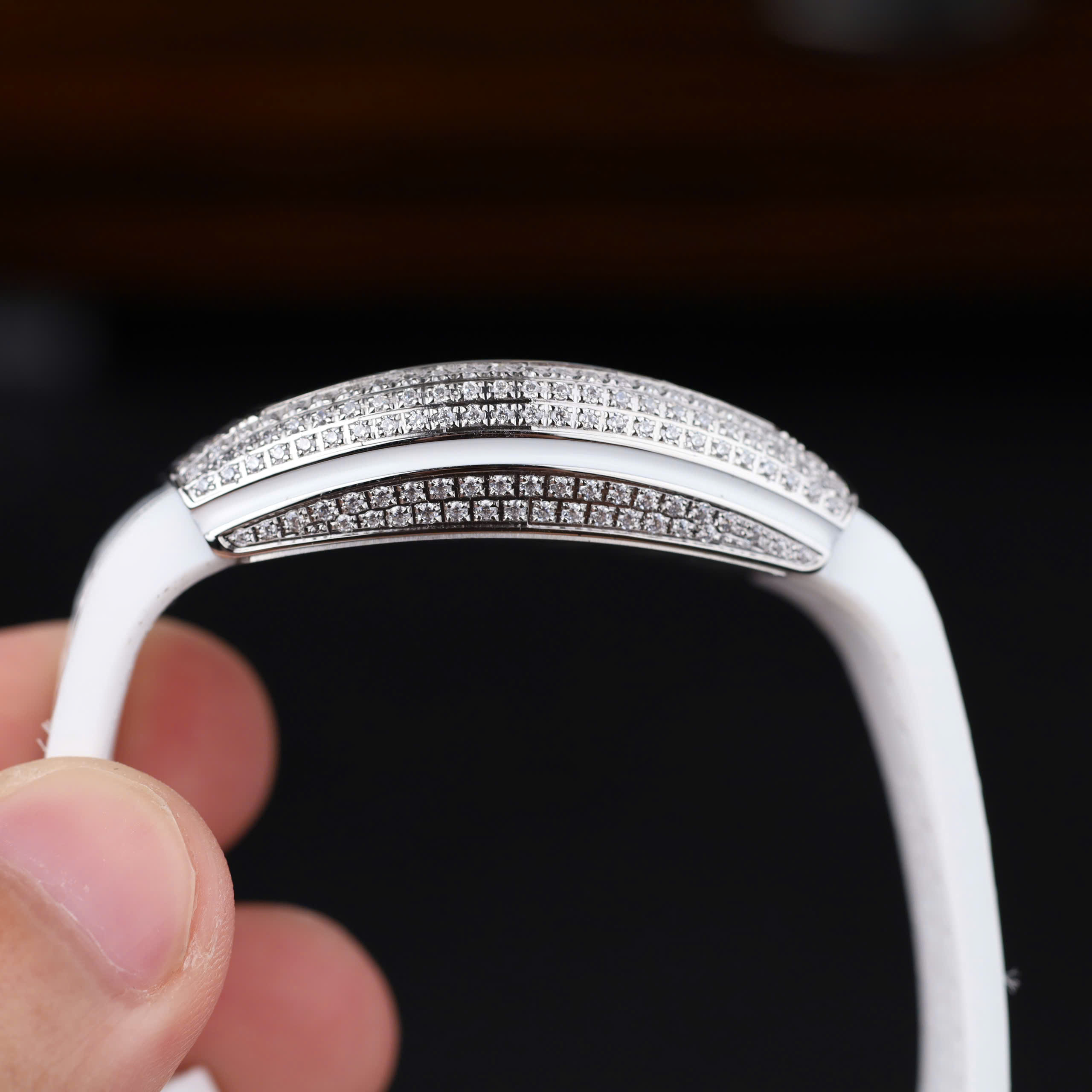 Đồng Hồ Nữ Franck Muller V32 Chế Tác Màu Trắng Đính Full Đá Nhà Máy ABF 36mm