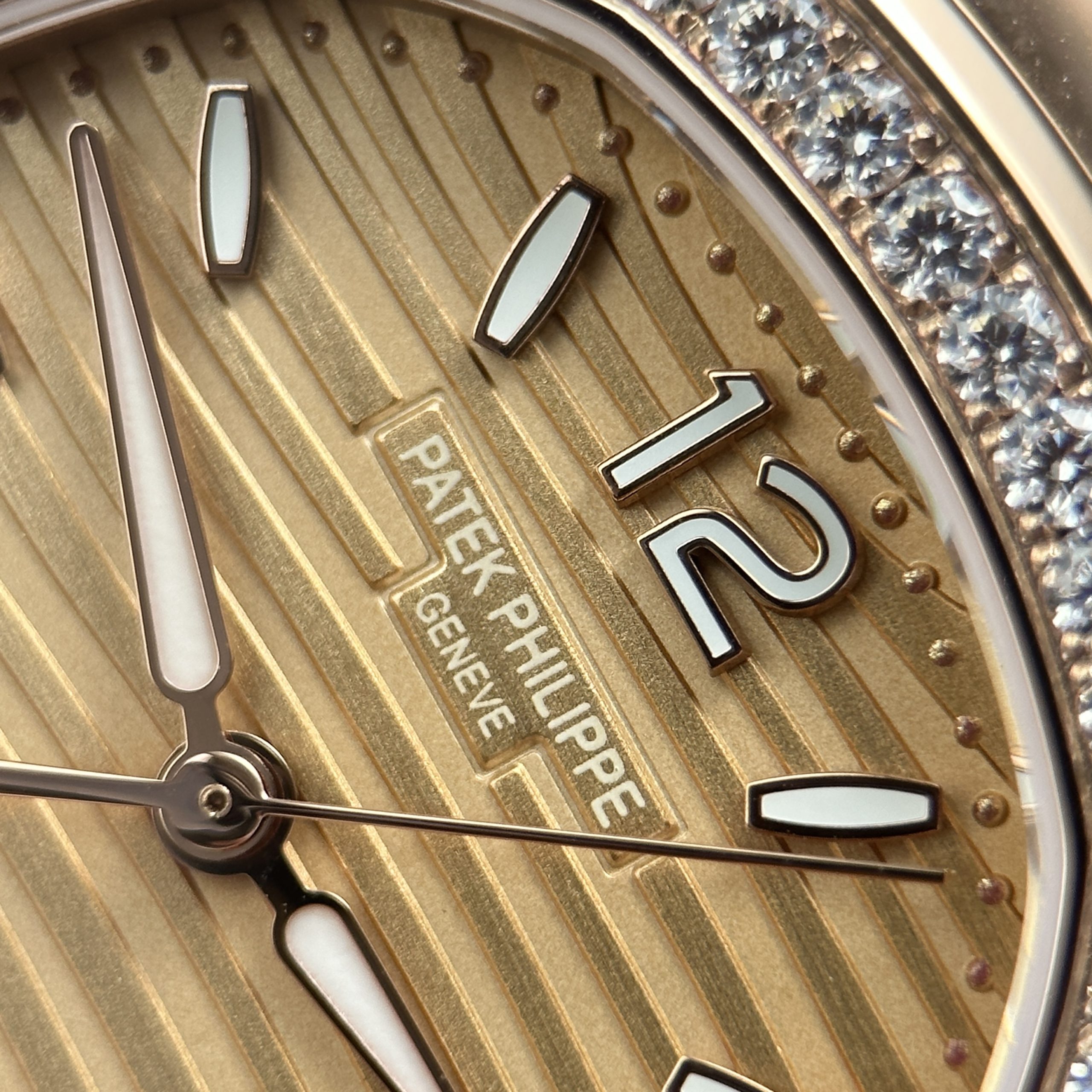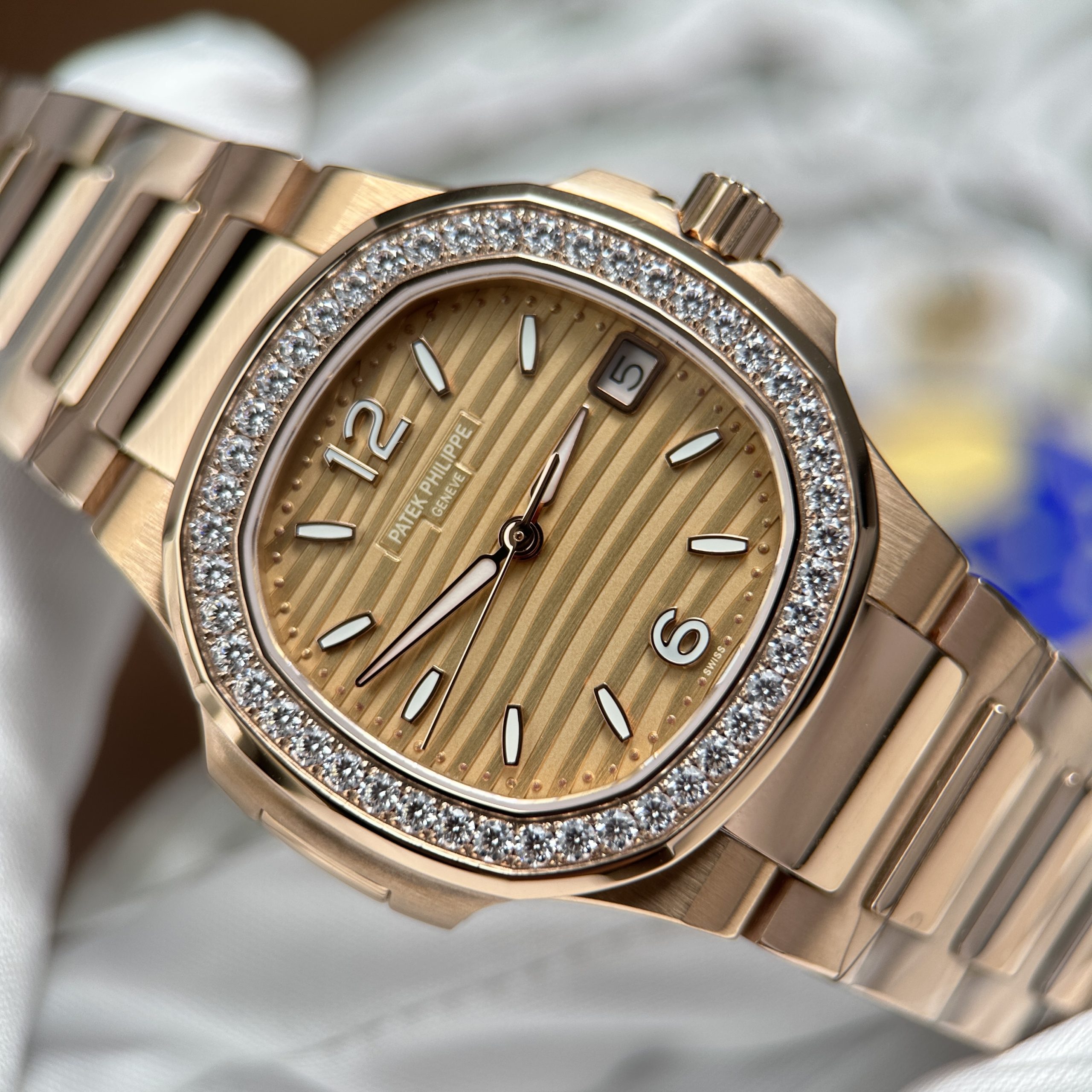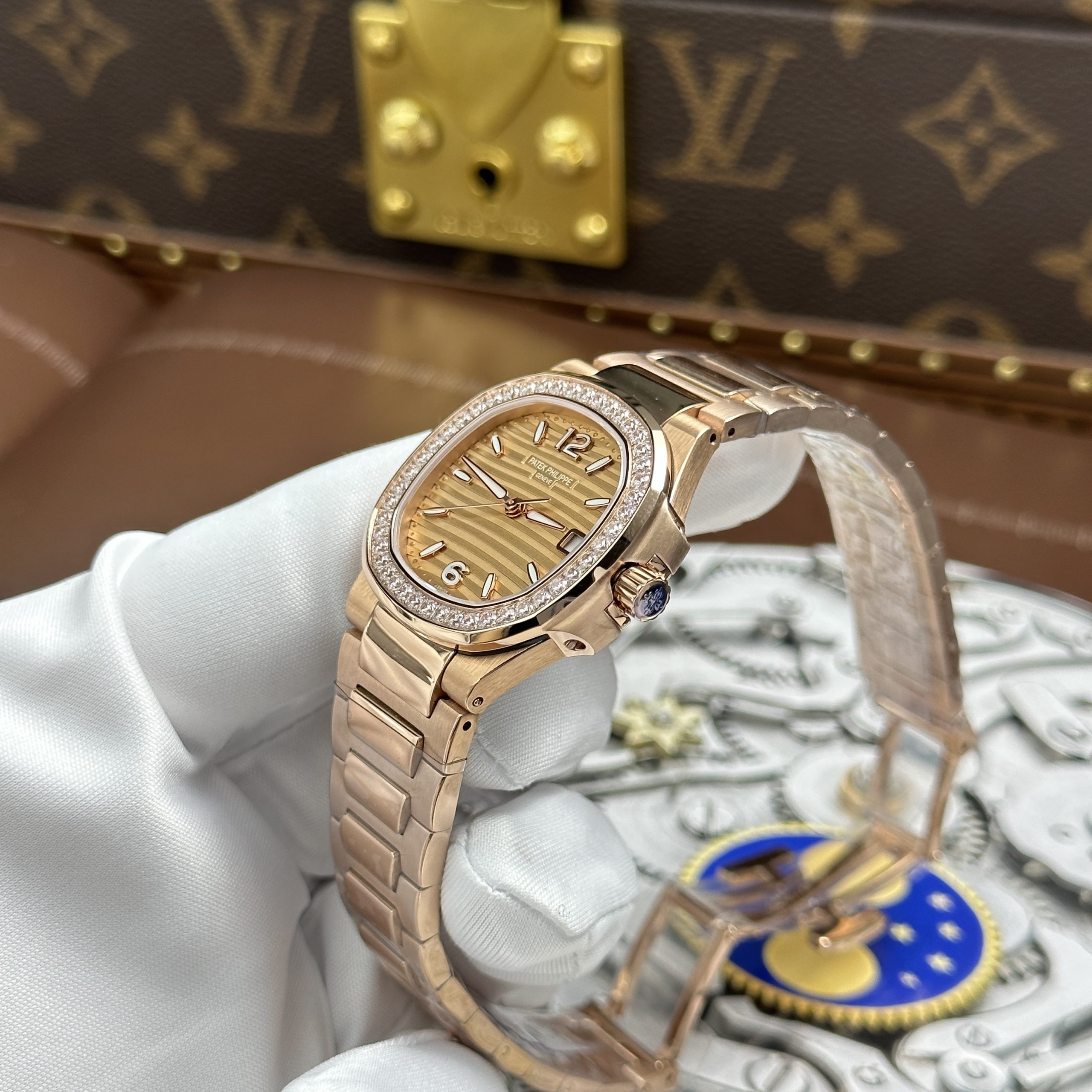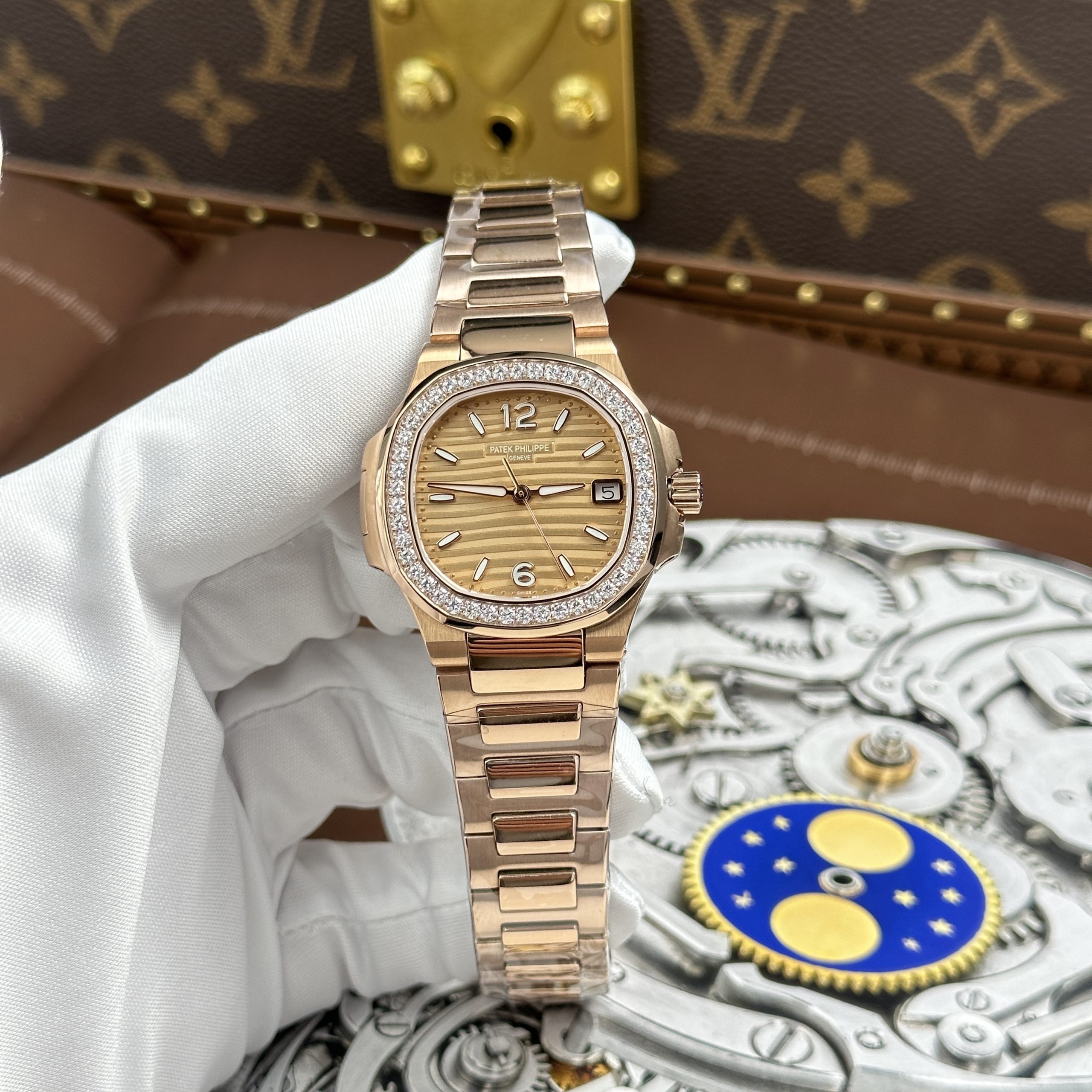 Đồng Hồ Nữ Patek Philippe Nautilus 7010 Chế Tác Vỏ Mạ Vàng Hồng Máy Pin Thụy Sỹ 32mm