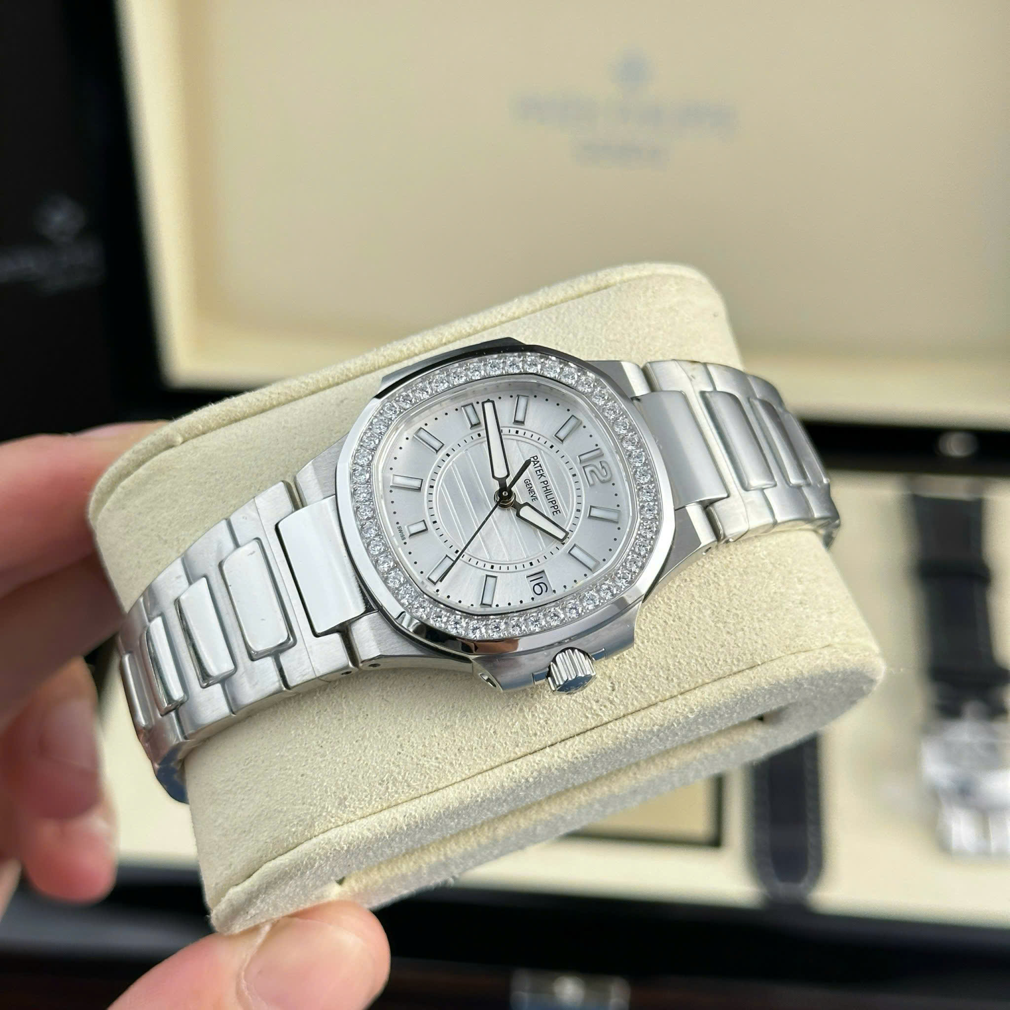 Đồng Hồ Nữ Patek Philippe Nautilus 7010 Rep 11 Mặt Trắng Máy Pin Thụy Sỹ 32mm