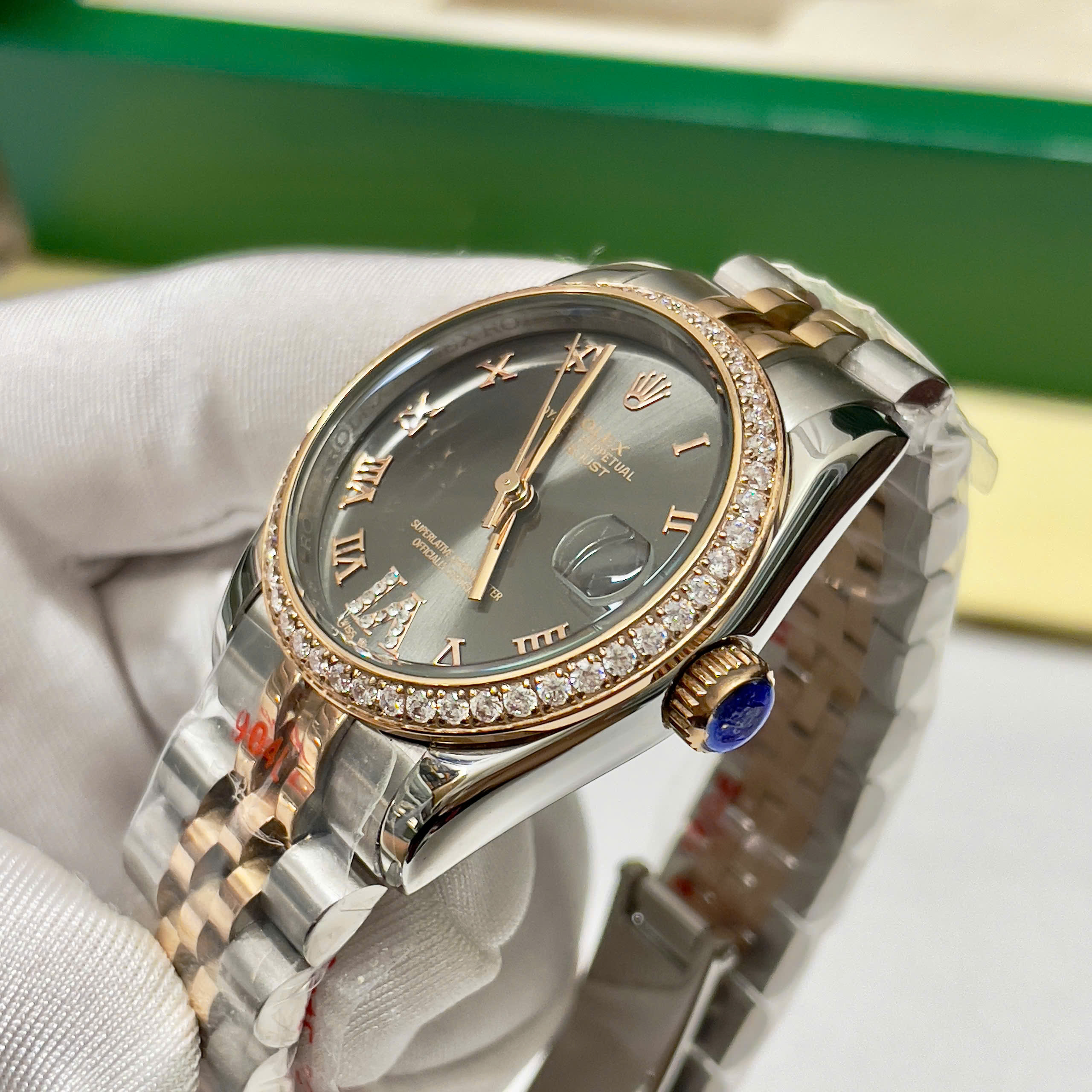 Đồng Hồ Nữ Rolex Fake Máy Cơ Nhật DateJust Mặt Số Xám 31mm