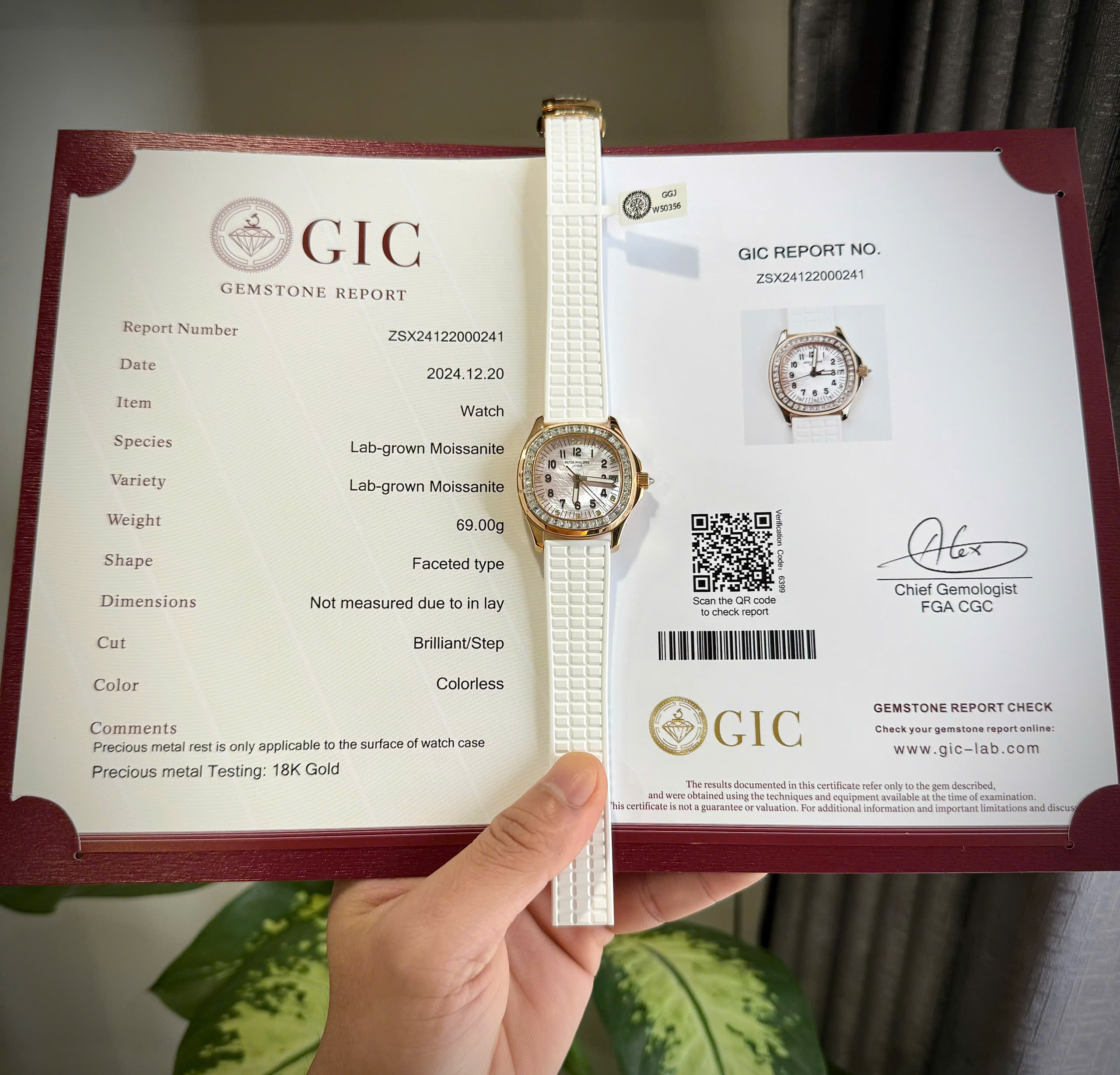 Đồng Hồ Patek Philippe Aquanaut 5072R Phủ Vàng Đính Đá Moissanite Baguette 35.6mm