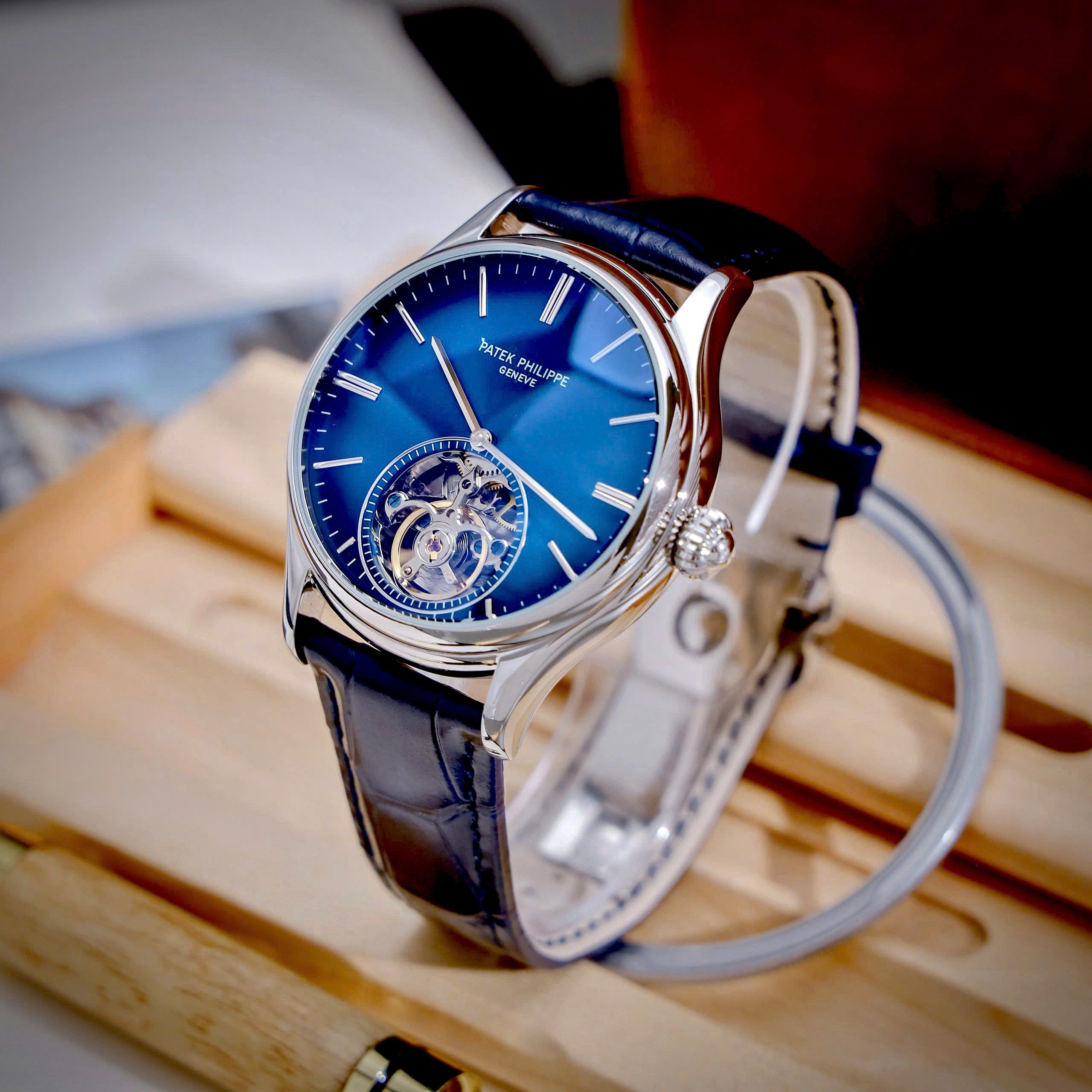 Đồng Hồ Patek Philippe Cơ Lộ Máy Nam Dây Da Màu Xanh Dương Máy Nhật 43mm