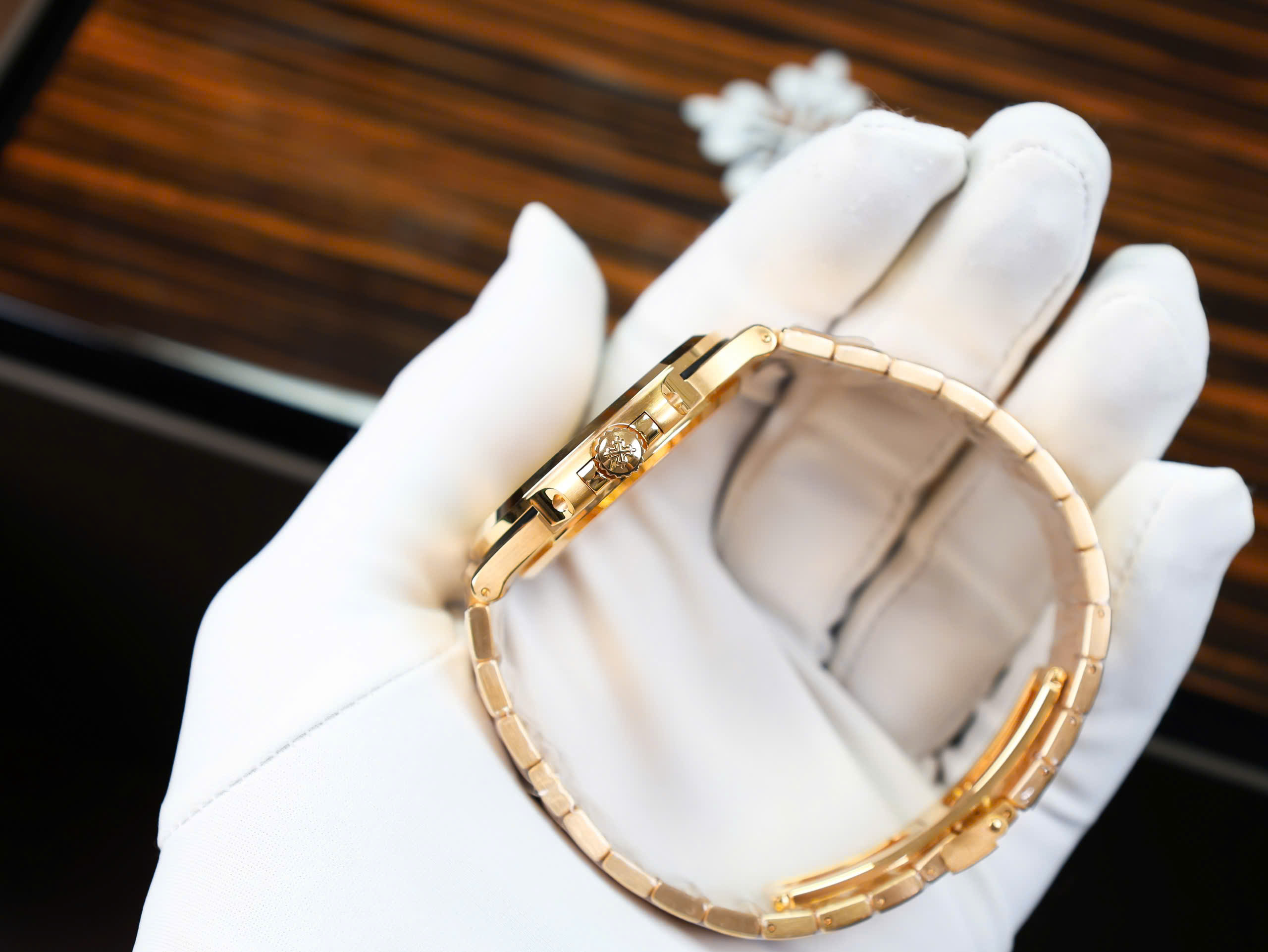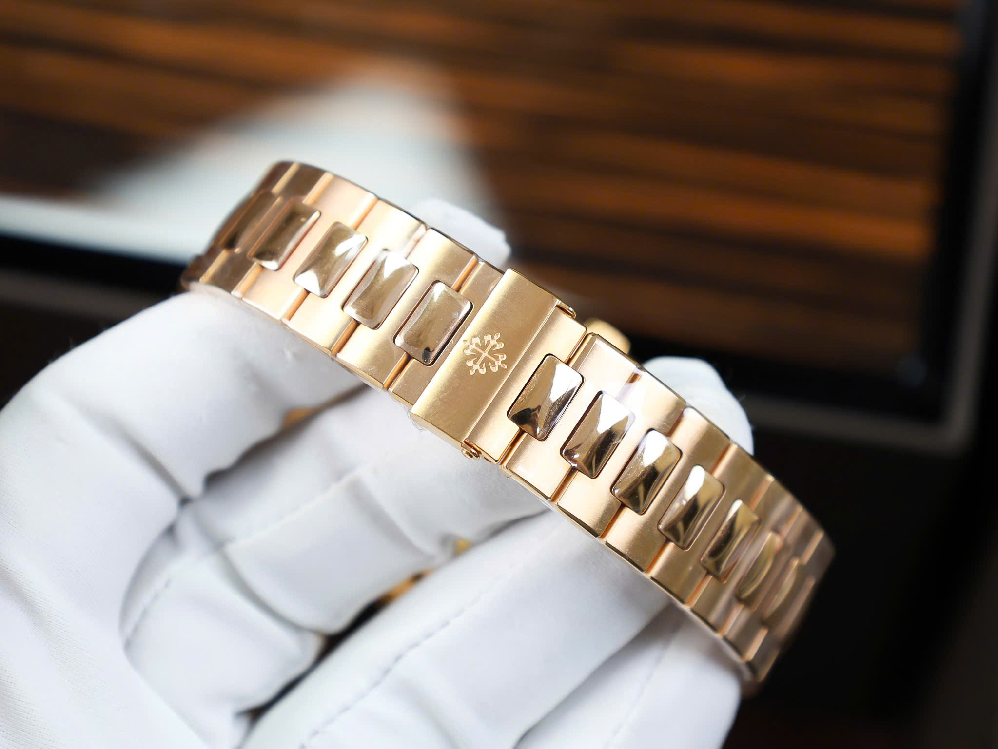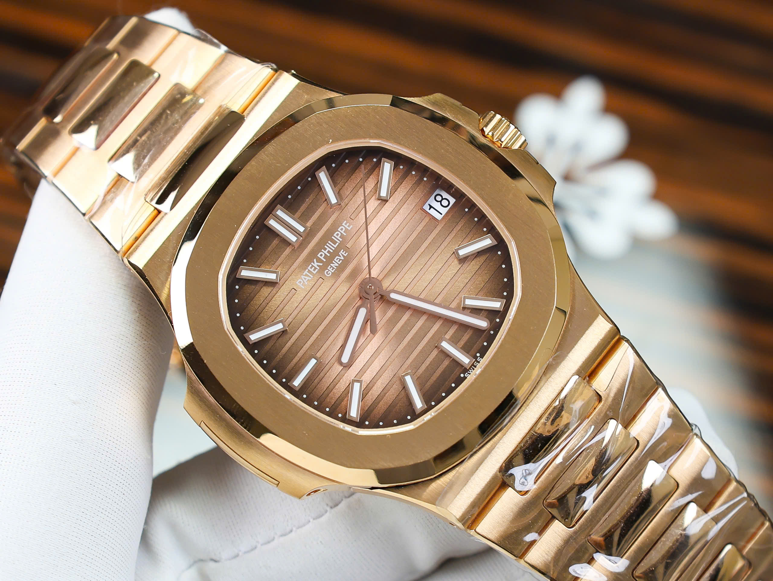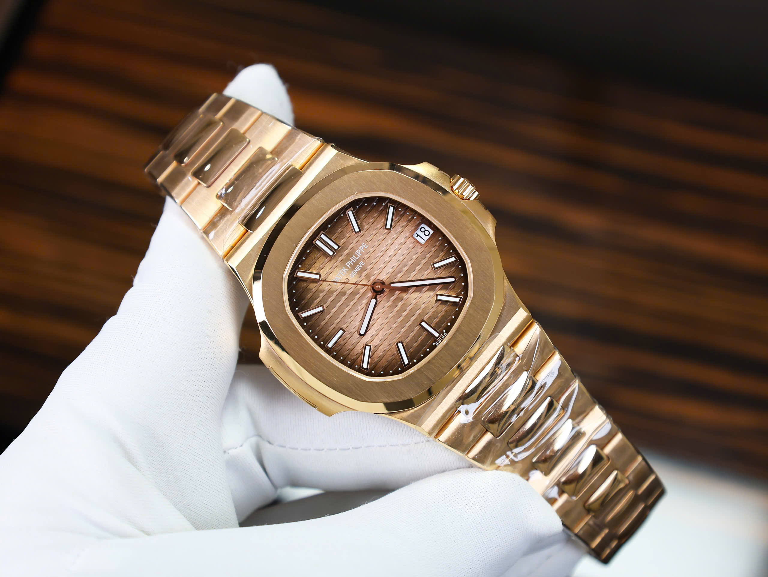 Đồng Hồ Patek Philippe Nautilus 5711 Bọc Vàng 18K Mặt Số Chocolate là một siêu phẩm đẳng cấp, chế tác từ Thép Bọc Vàng Hồng cao cấp, mang lại giá trị vượt trội cho những tín đồ yêu thích đồng hồ chế tác. Với thiết kế mặt số hình Cushion kích thước 40mm quen thuộc, chiếc đồng hồ này nổi bật với phối màu nâu sang trọng, kết hợp hoàn hảo với vẻ đẹp thanh lịch và đẳng cấp.