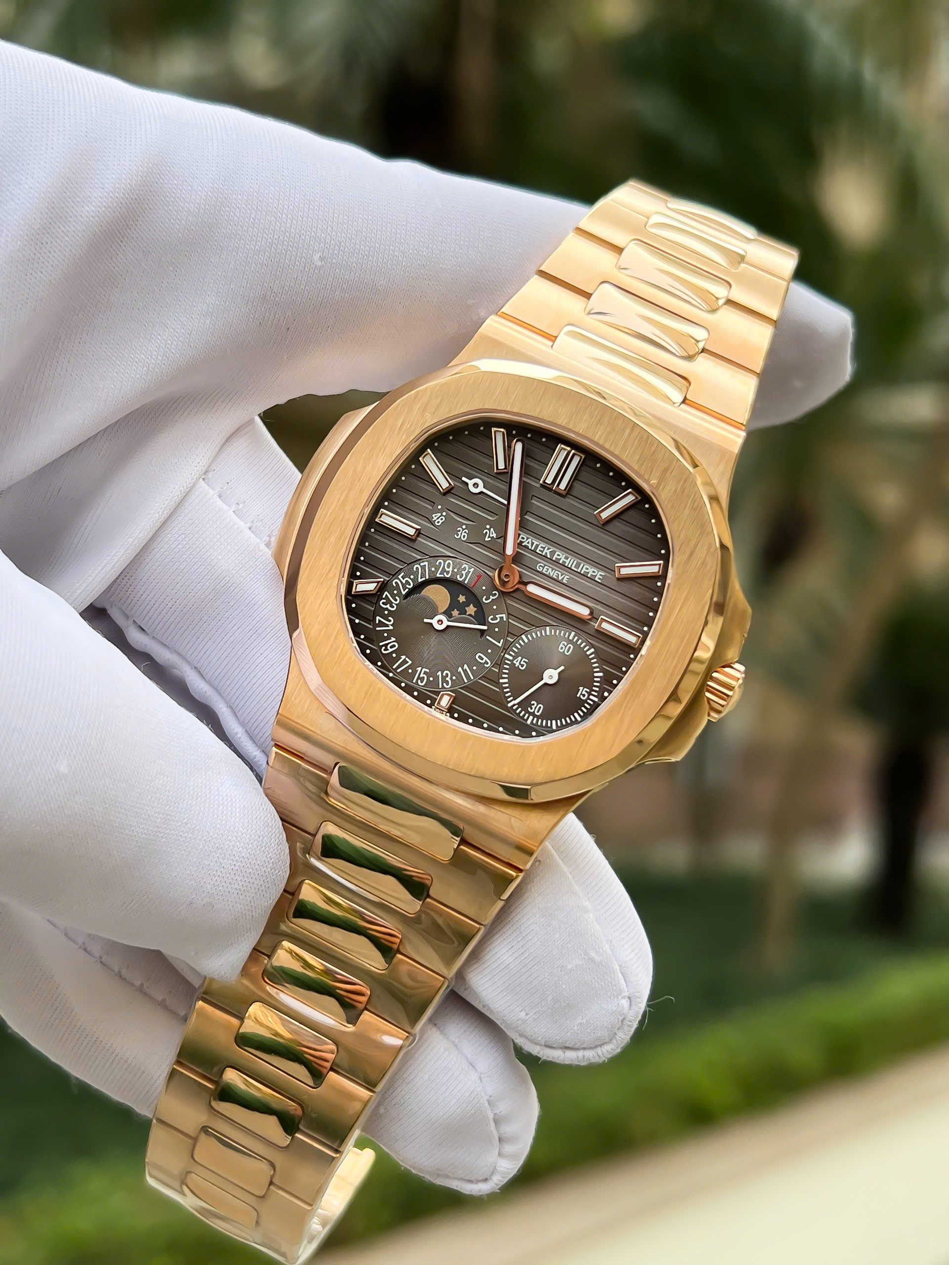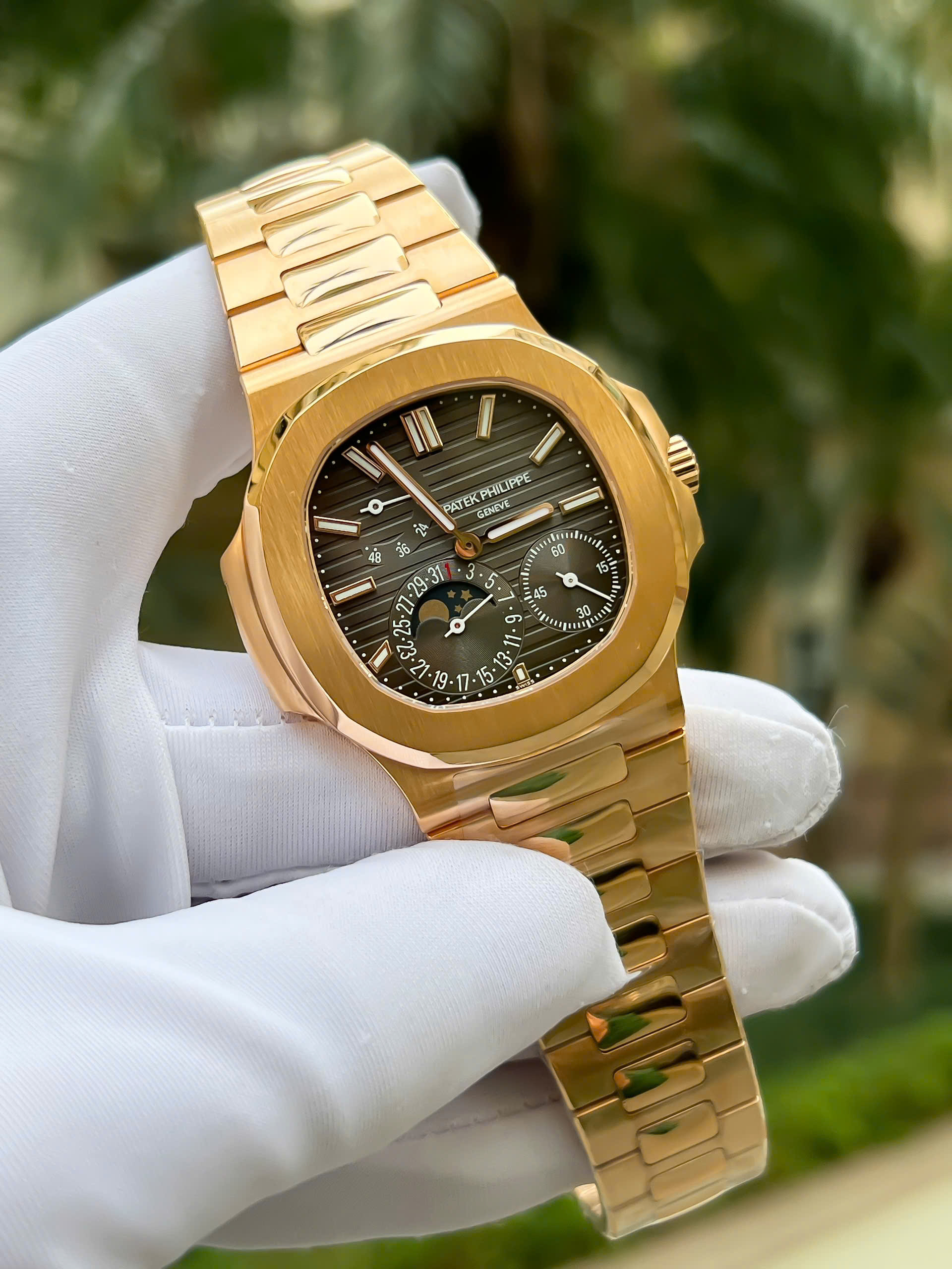 Đồng Hồ Patek Philippe Nautilus 5712R Chế Tác Phủ Vàng Thật 18K Mặt Xám Xưởng PPF 40mm
