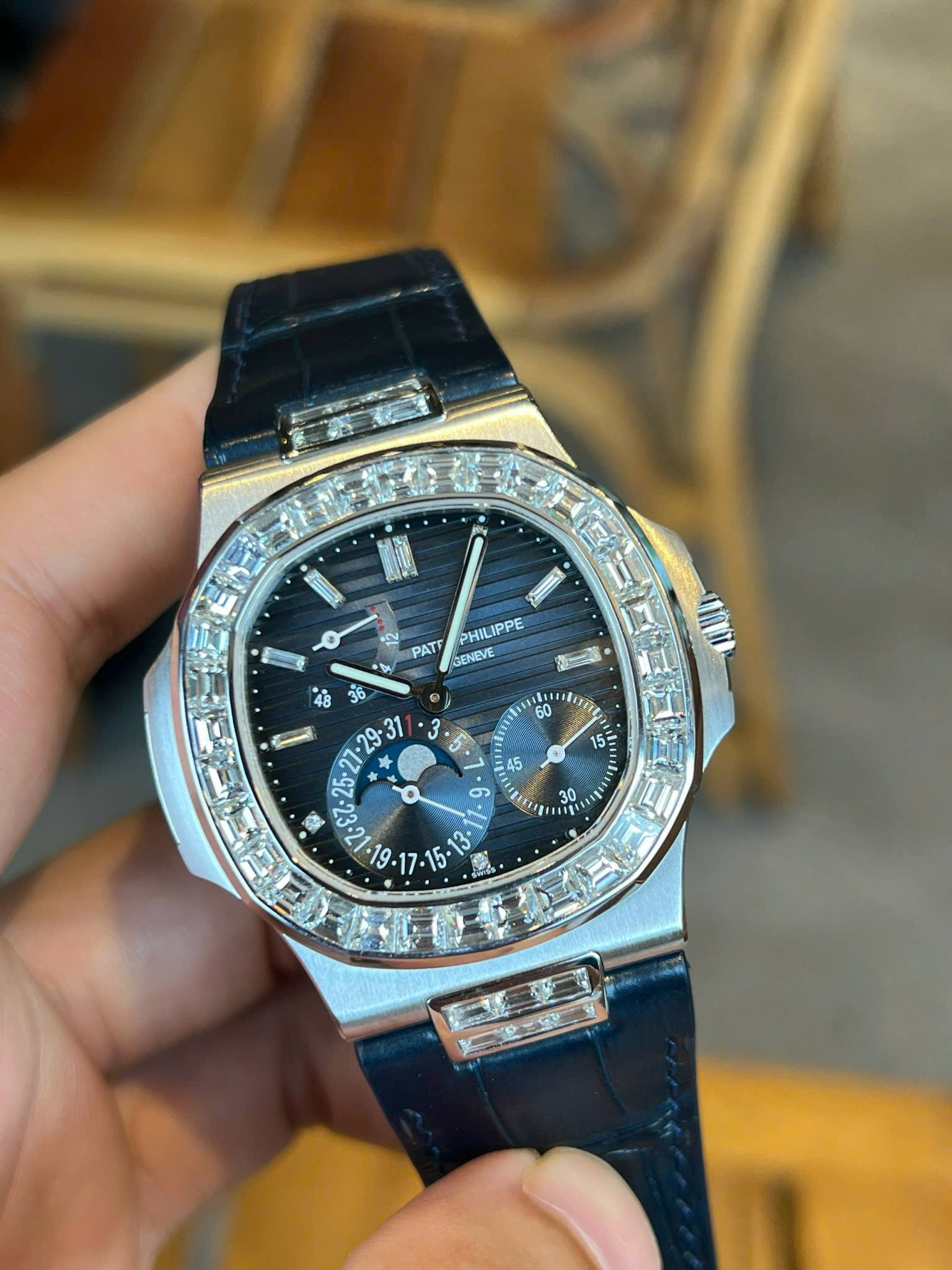 Đồng Hồ Patek Philippe Nautilus 5724G Vàng Trắng 18K Kim Cương Baguette 40mm