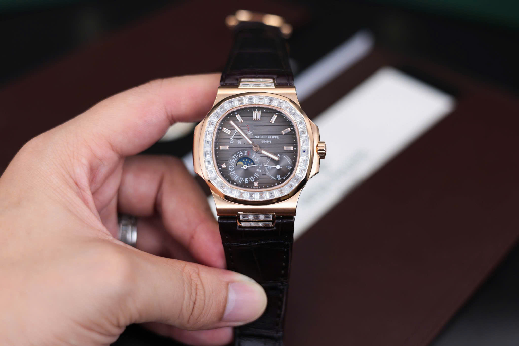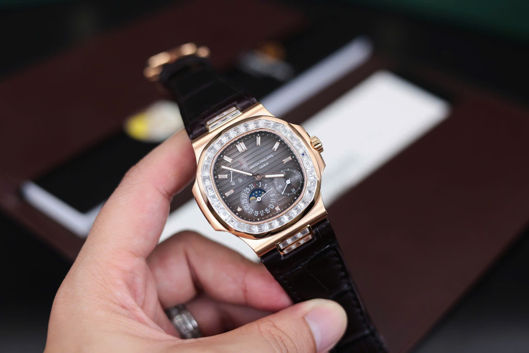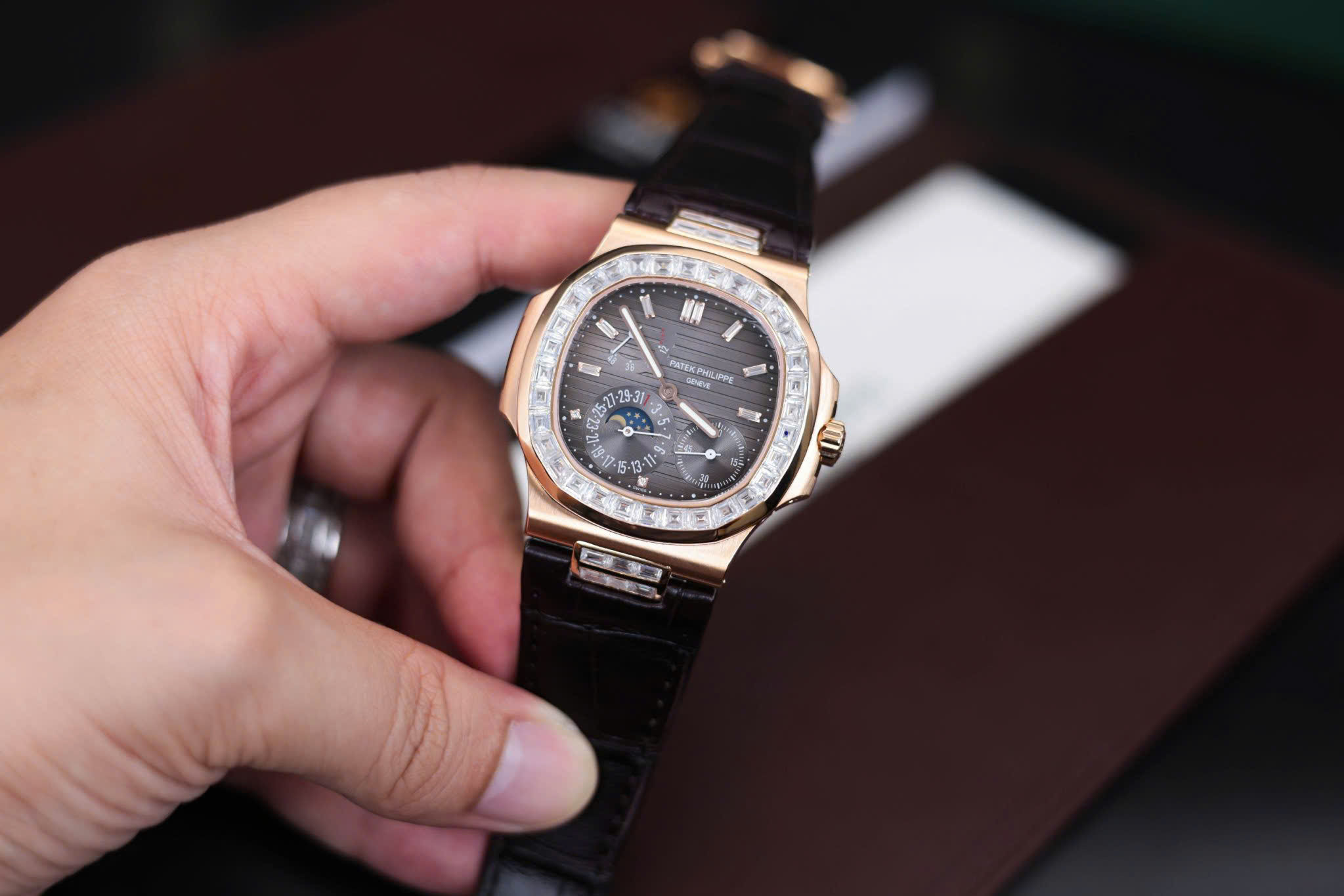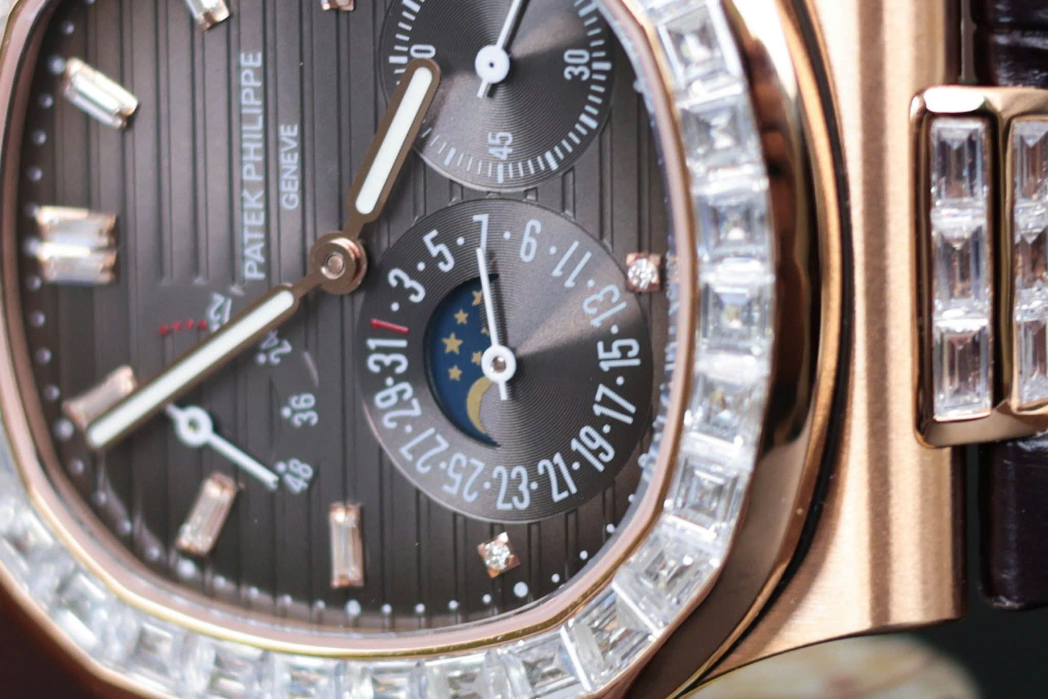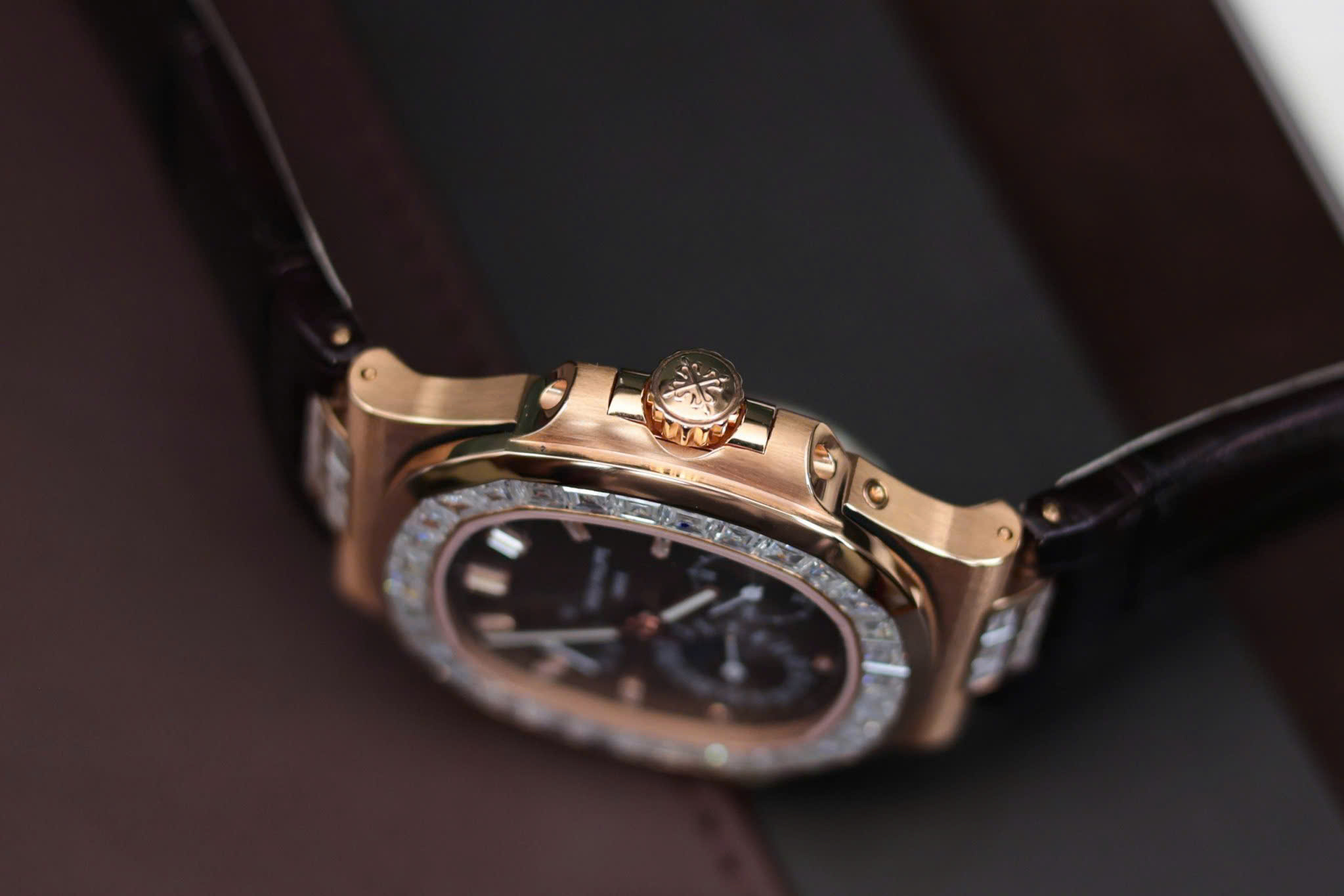 Đồng Hồ Patek Philippe Nautilus 5724R Bọc Vàng Đính Đá Moissanite Baguette GR 40mm