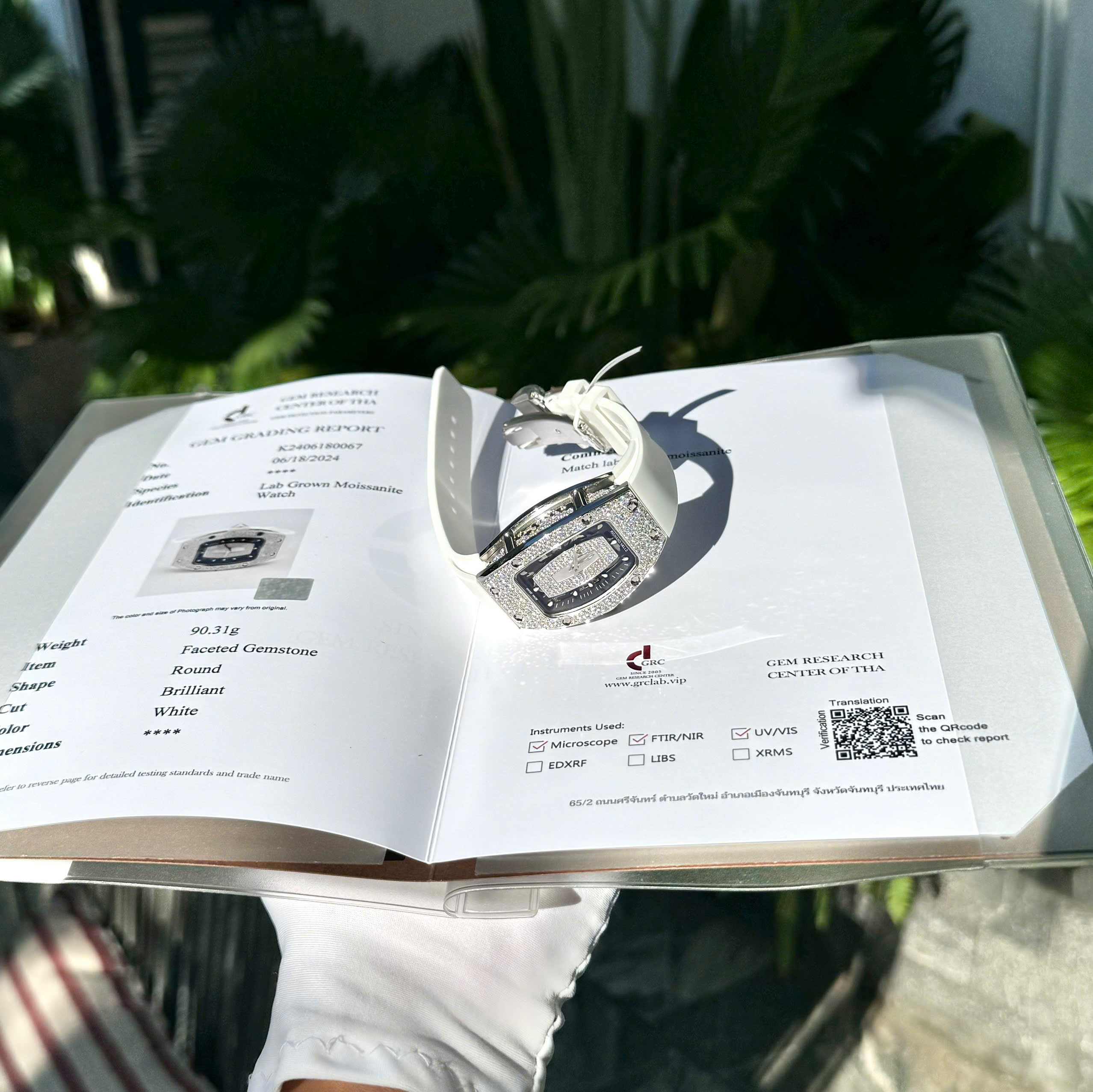 Đồng Hồ Richard Mille RM007 Đính Đá Moissanite Hong Kong Màu Trắng 32x46mm