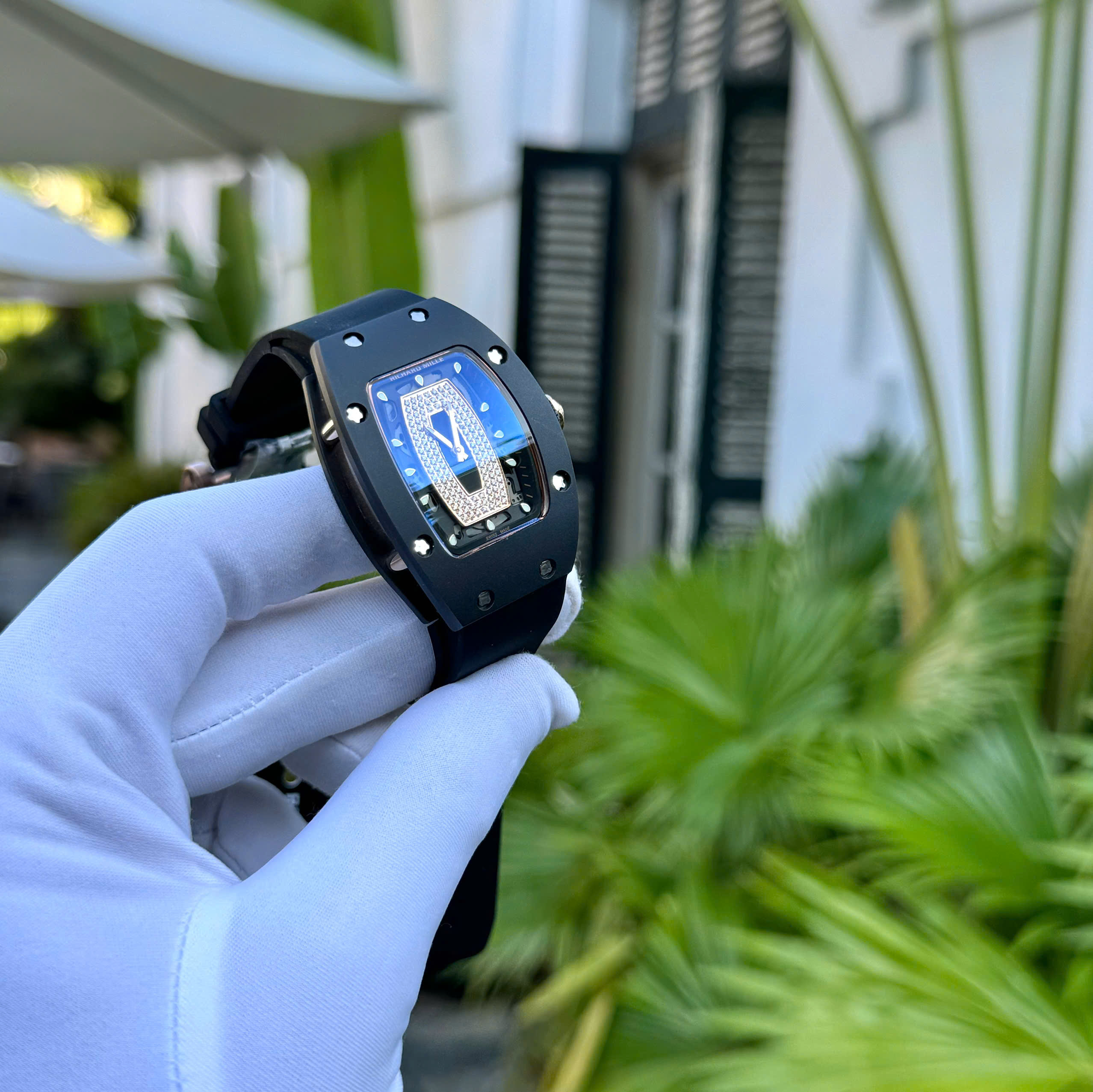 Đồng Hồ Richard Mille RM07 Vỏ Gốm Đen Dây Cao Su Máy Thụy Sỹ 32x46mm