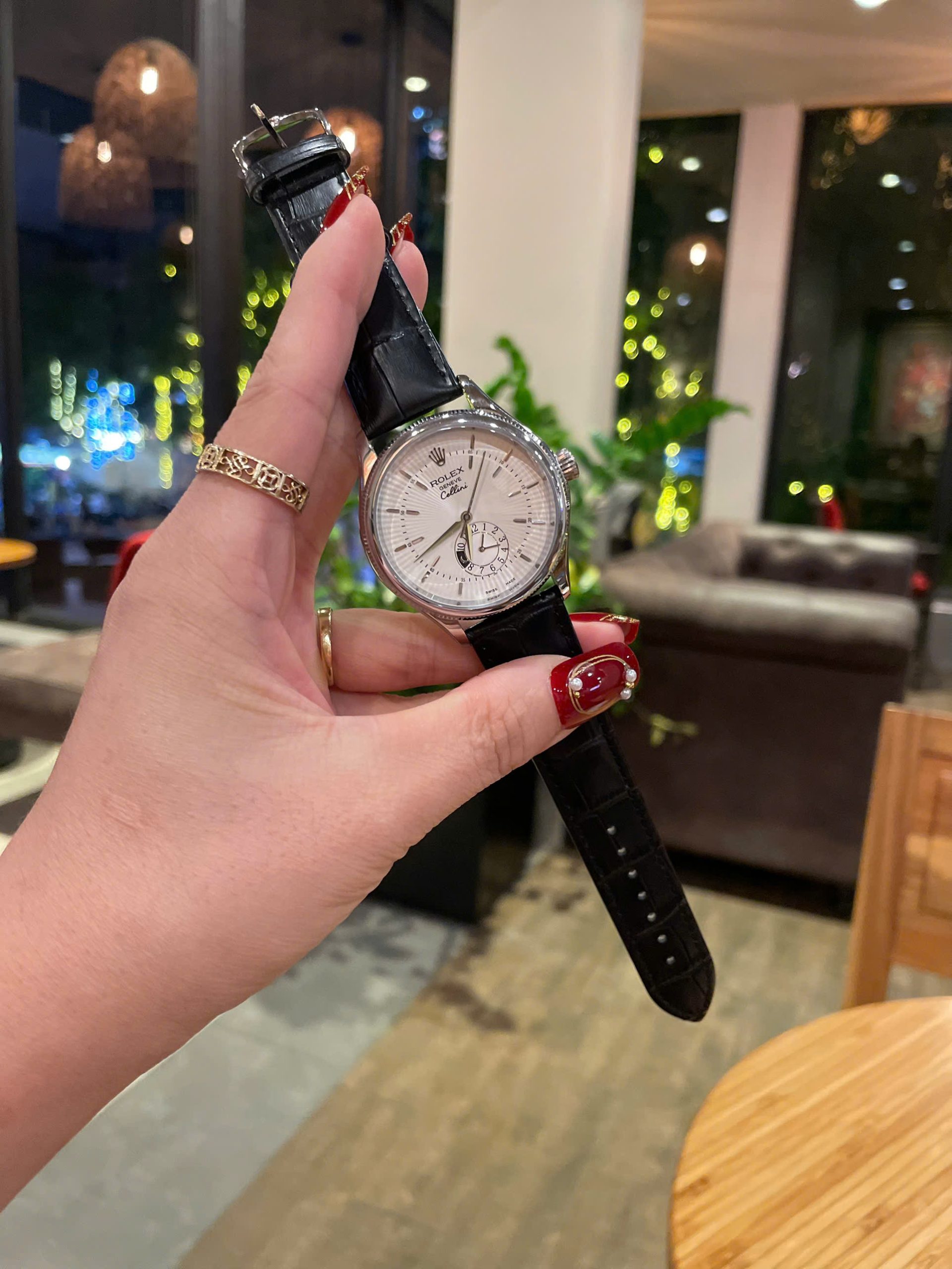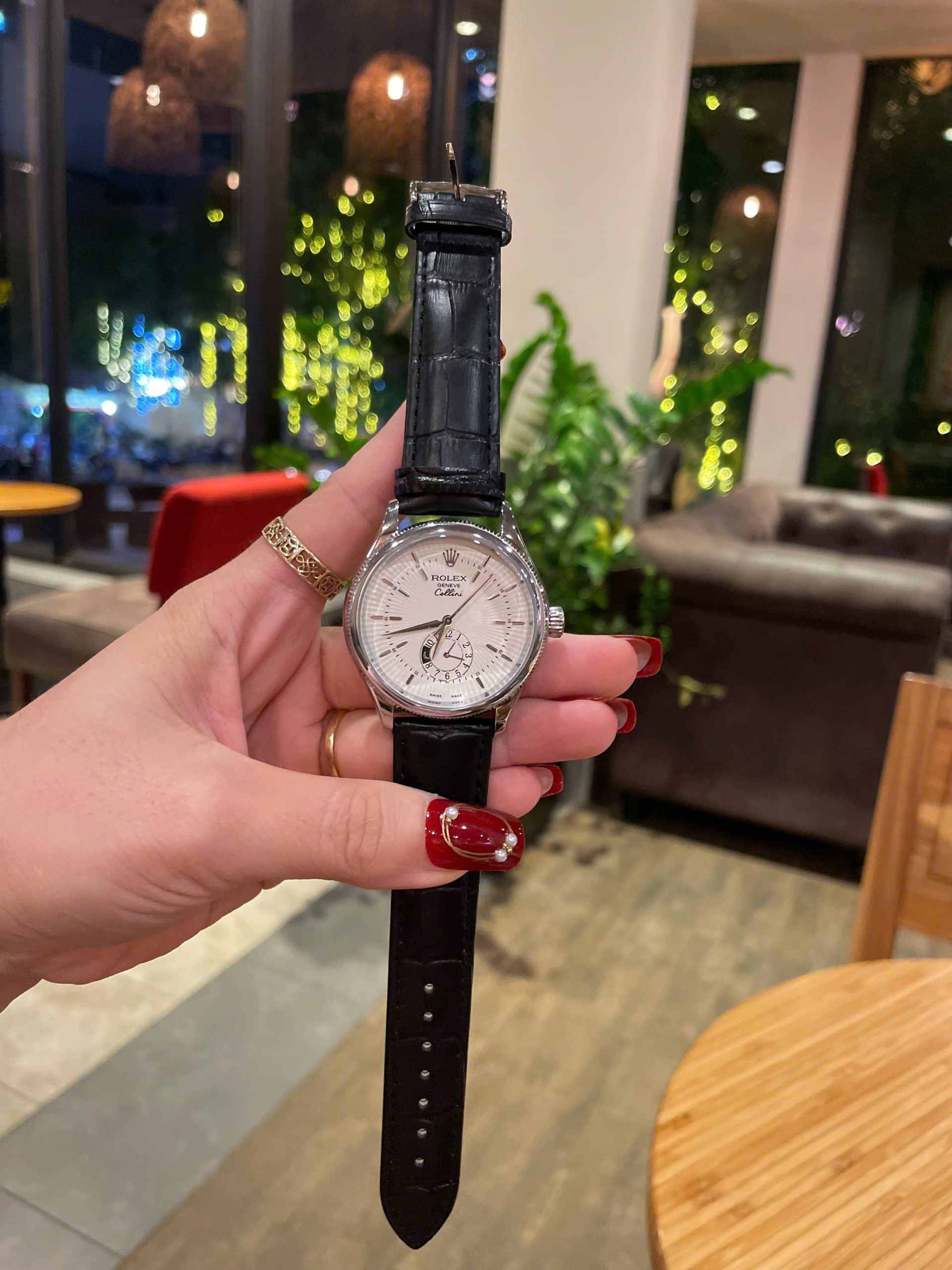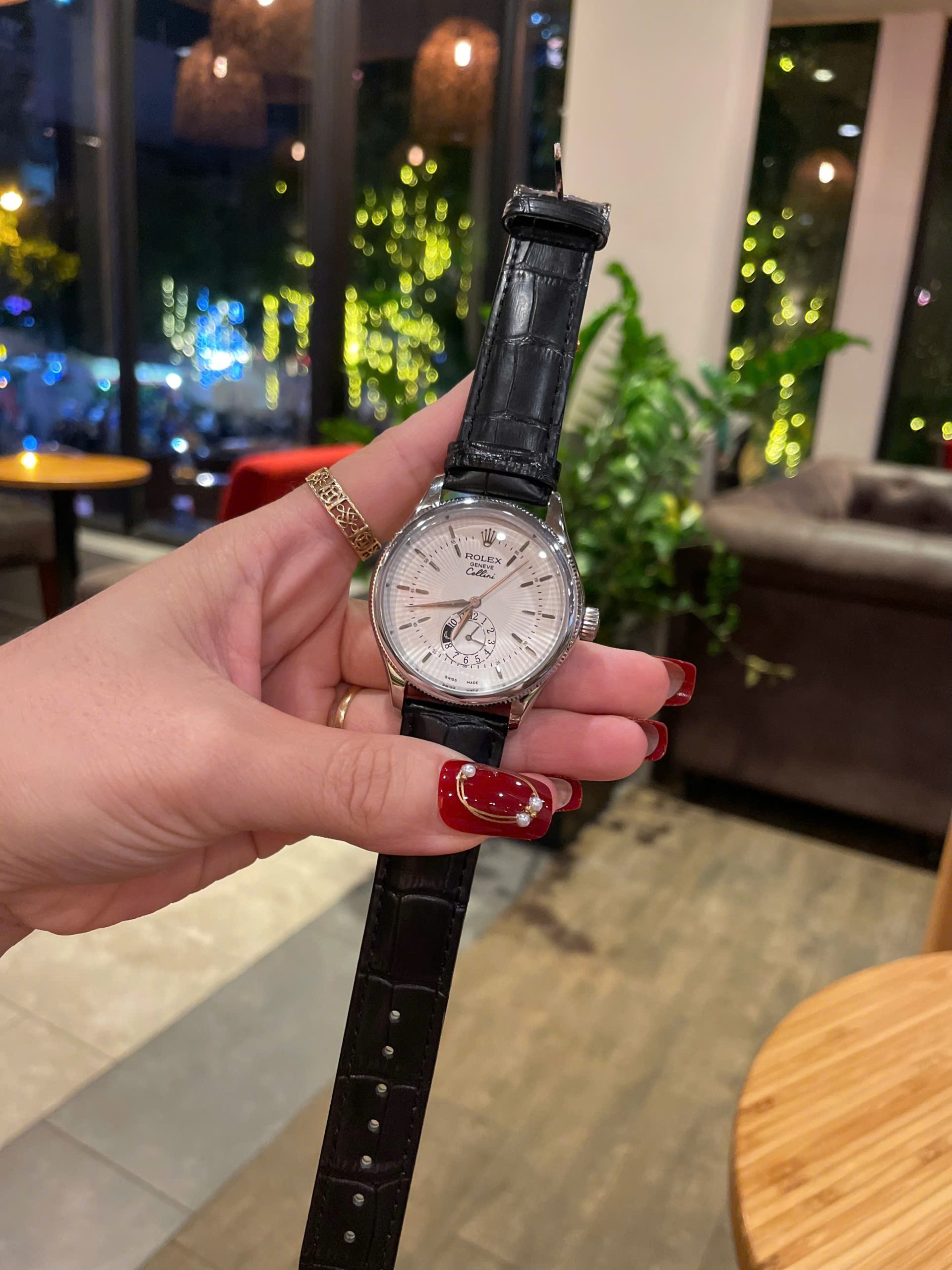 Đồng Hồ Rolex Automatic Nam Fake Máy Cơ Nhật Dây Da Màu Đen 39mm