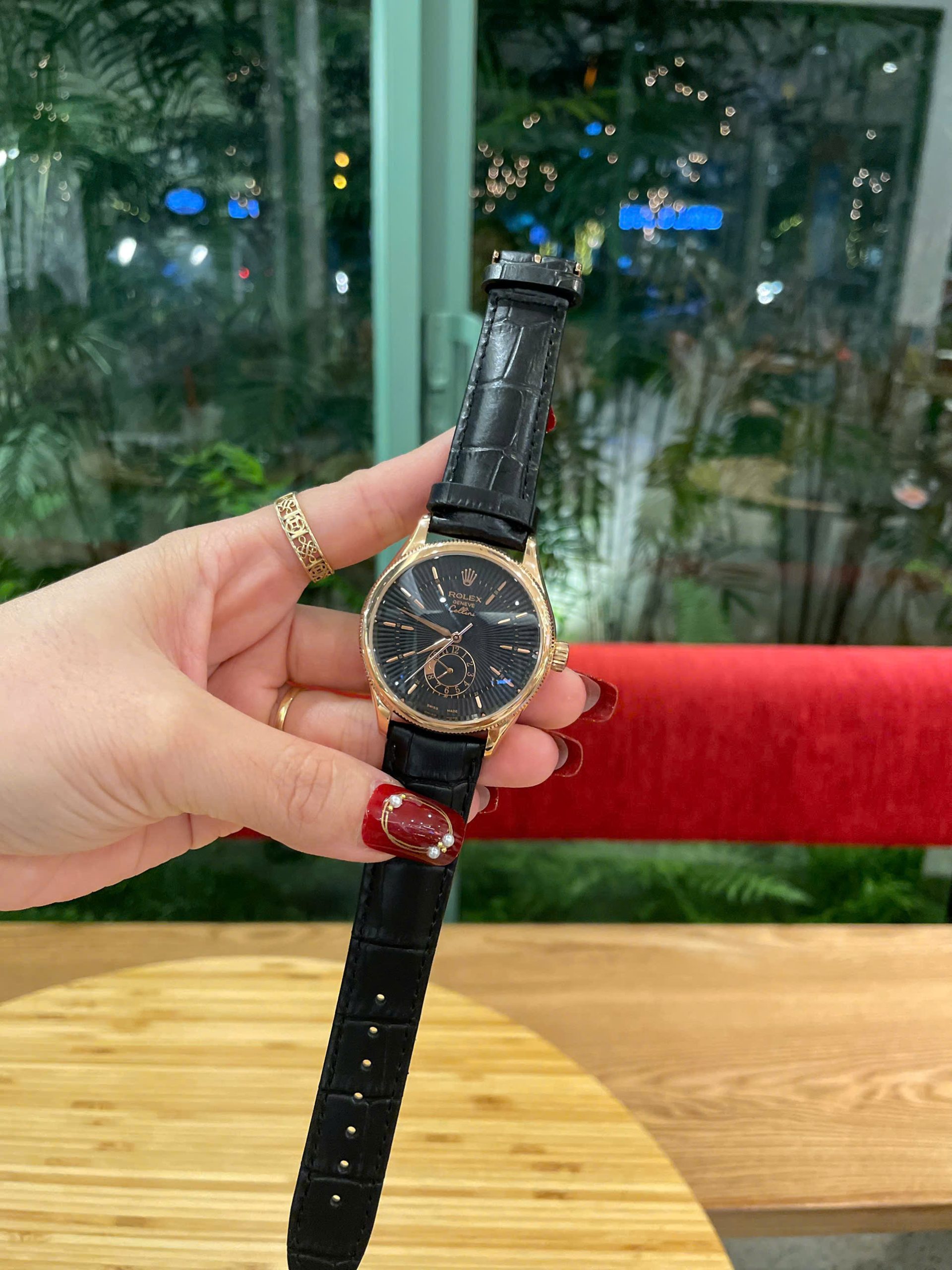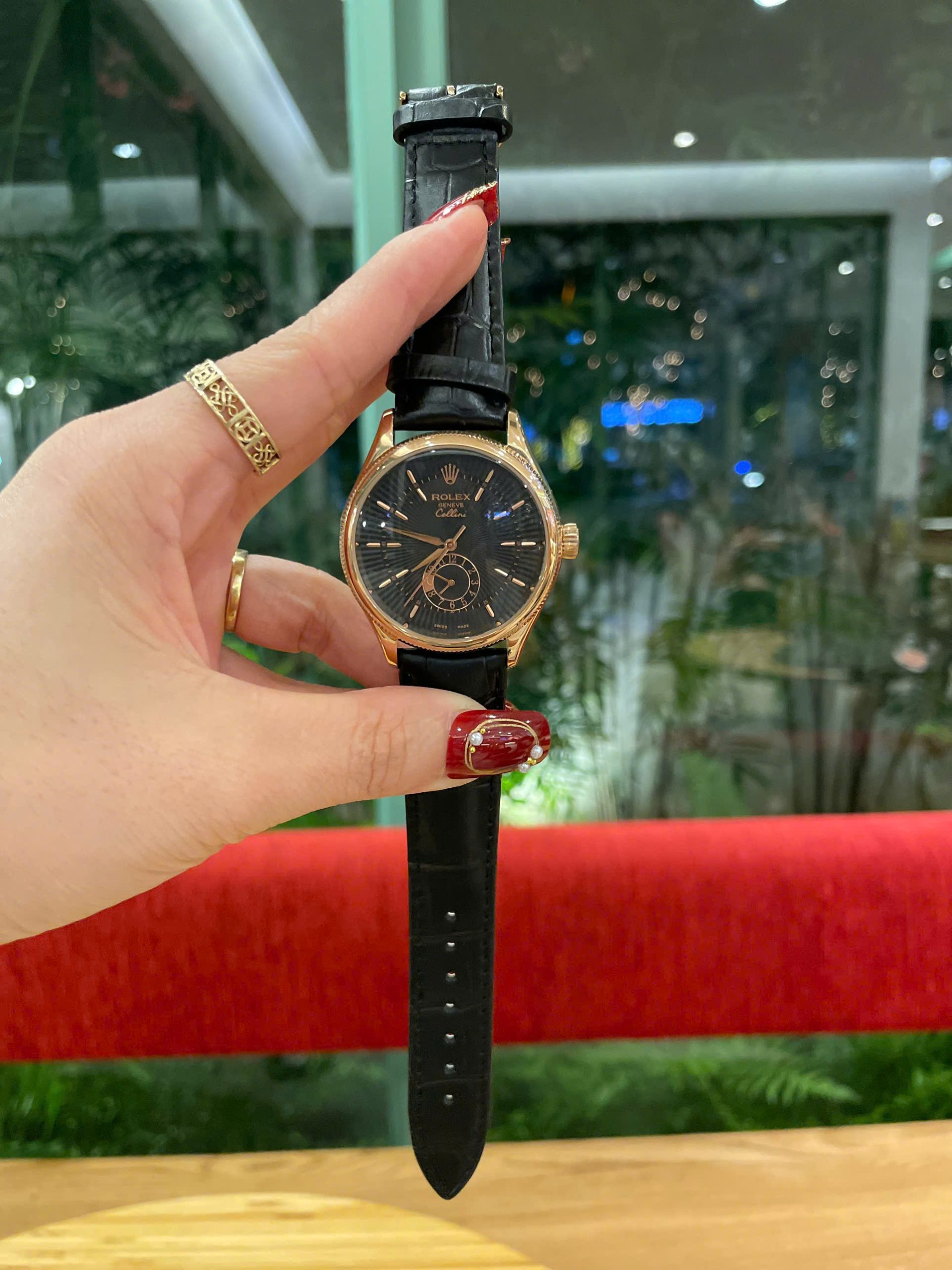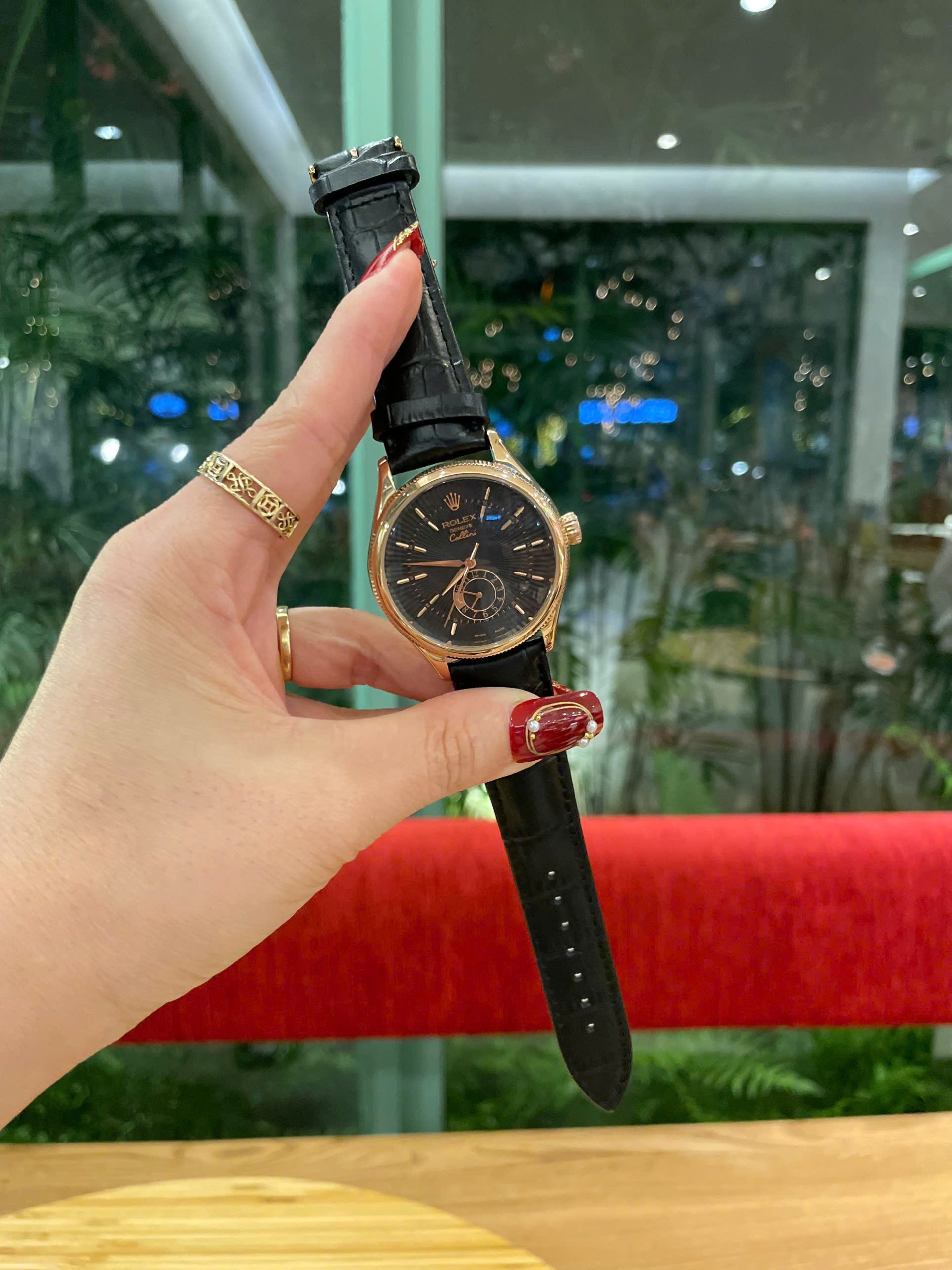 Đồng Hồ Rolex Automatic Nam Fake Máy Nhật Dây Da Màu Đen 39mm