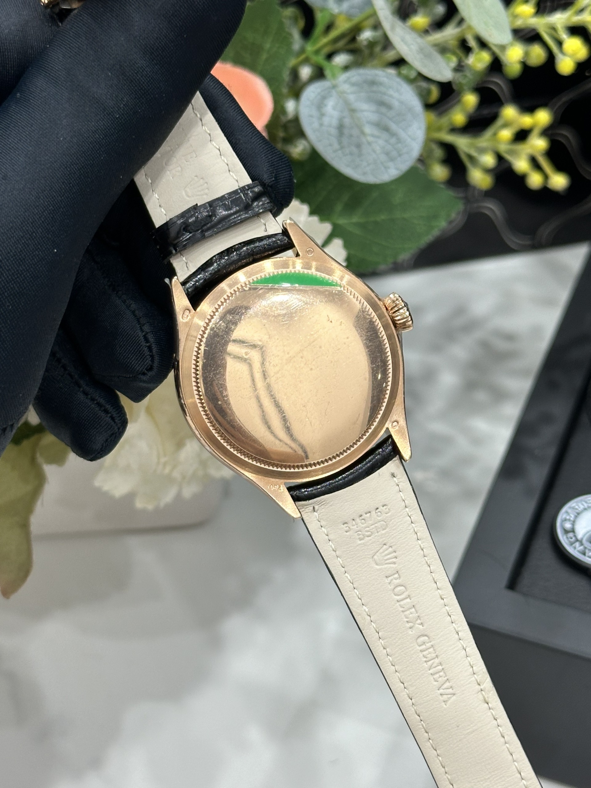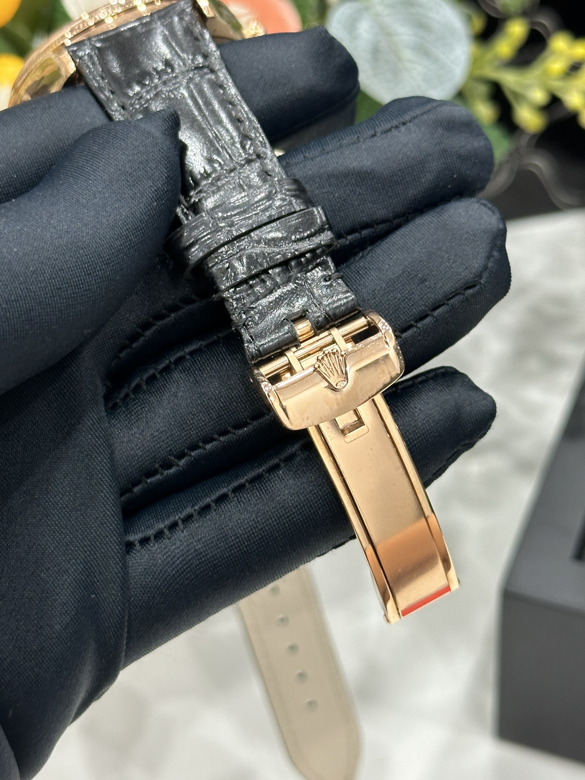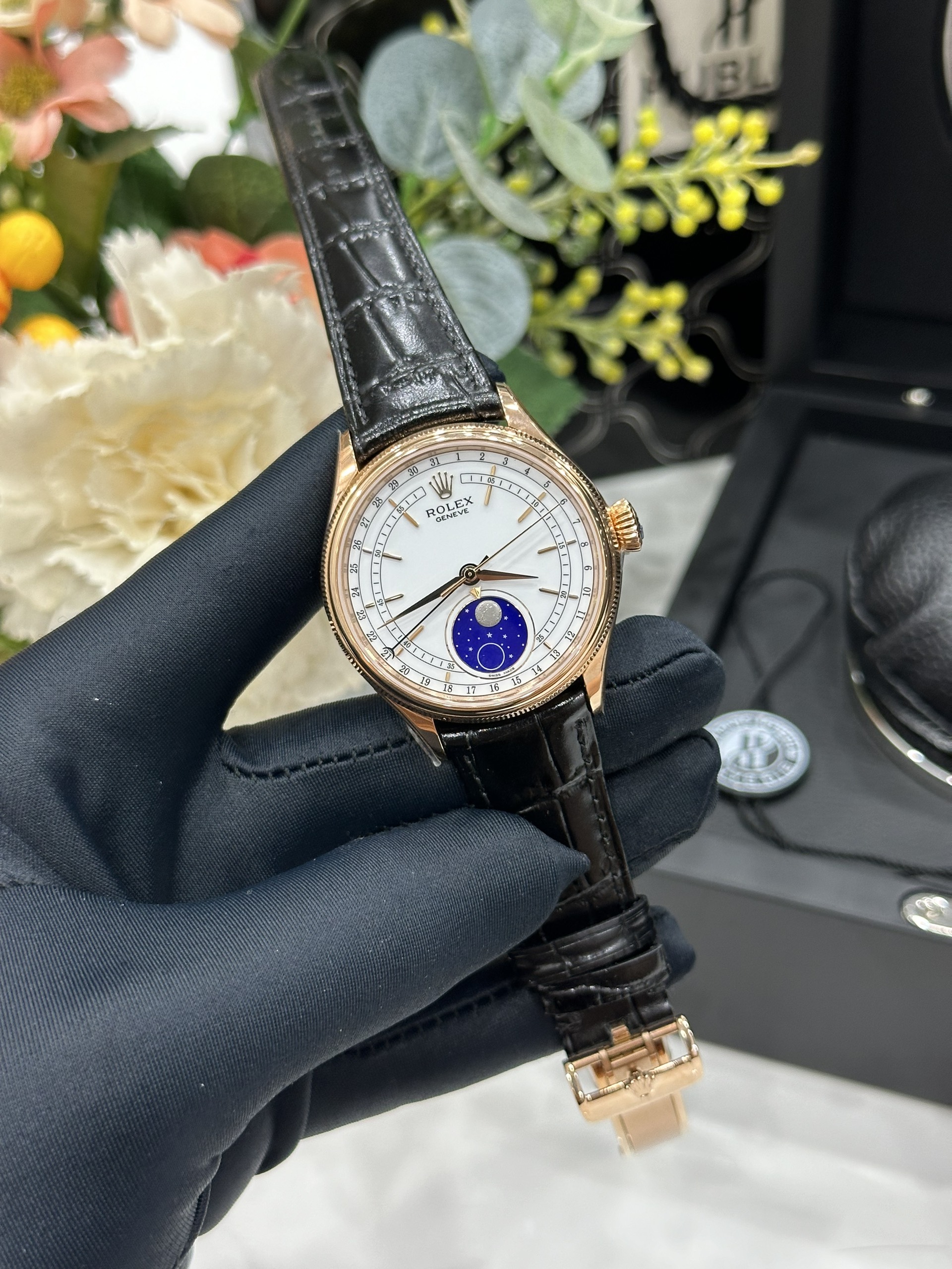 Đồng Hồ Rolex Chế Tác Cellini Moonphase 50535 Vàng Hồng Dây Da Màu Đen