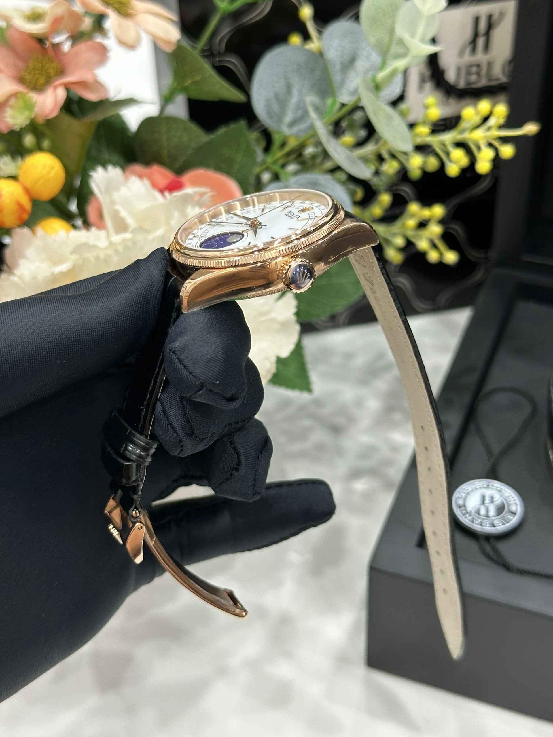 Tóm lại, Đồng Hồ Rolex Chế Tác Cellini Moonphase 50535 là sự kết hợp hoàn hảo giữa thiết kế sang trọng và công nghệ chế tác tiên tiến, mang đến một phụ kiện thời trang vừa đẳng cấp vừa chính xác.