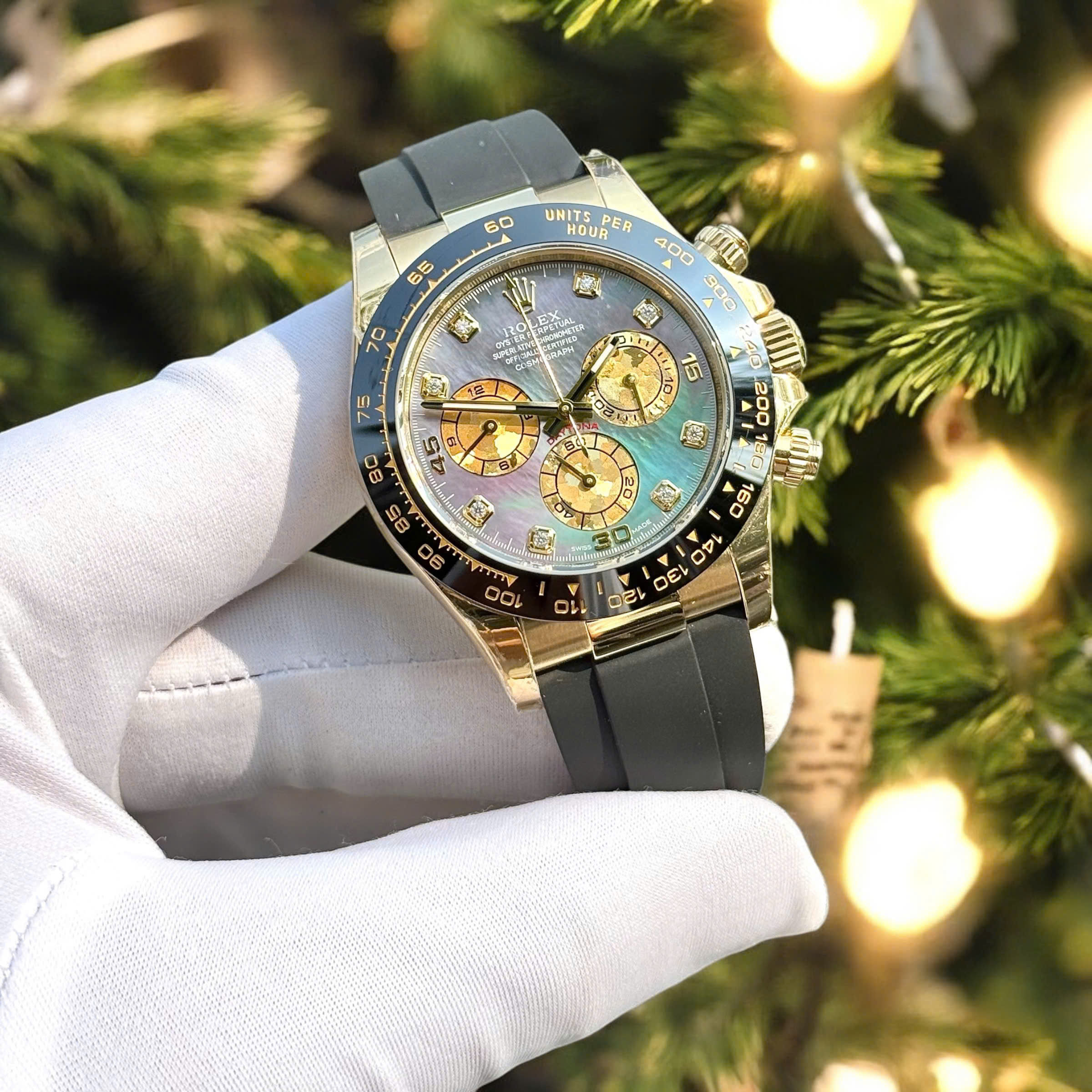 Đồng Hồ Rolex Cosmograph Daytona Mặt Số Vân Ốc Đính Moissanite Dây Cao Su 40mm