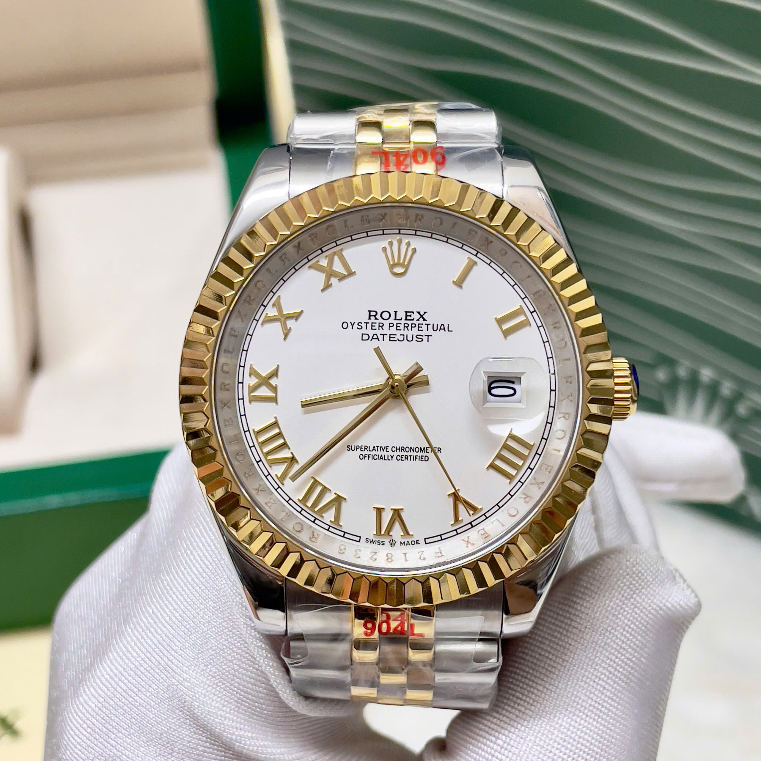 Đồng Hồ Rolex DateJust Fake Máy Cơ Nhật Demi Mặt Trắng 38-41mm