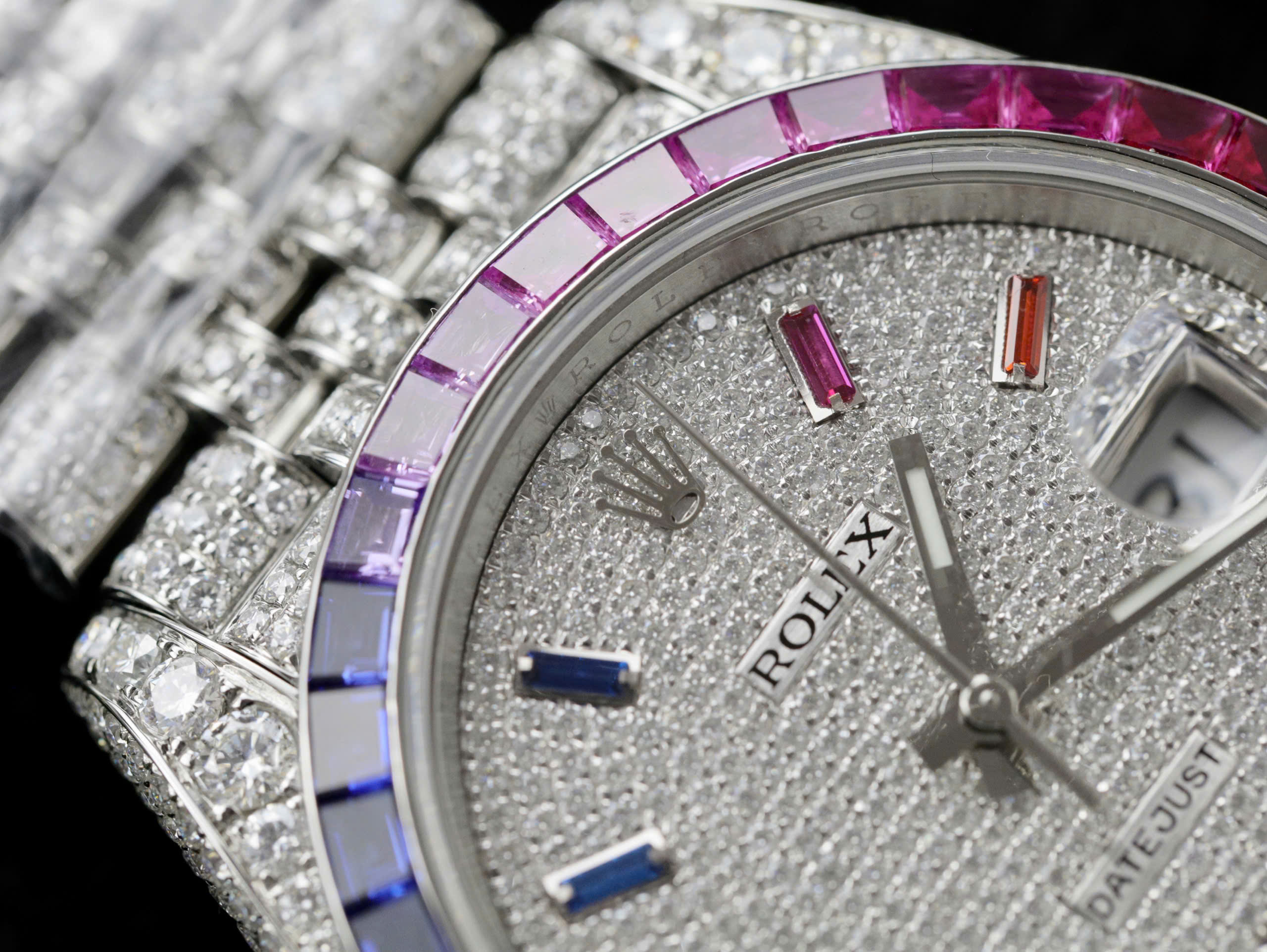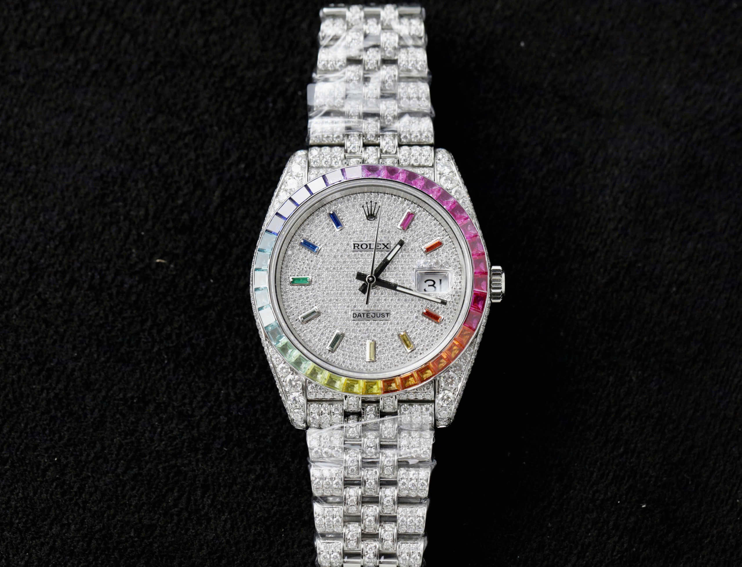 Đồng Hồ Rolex DateJust Rainbow Đính Đá Moissanite Hong Kong Chế Tác 41mm
