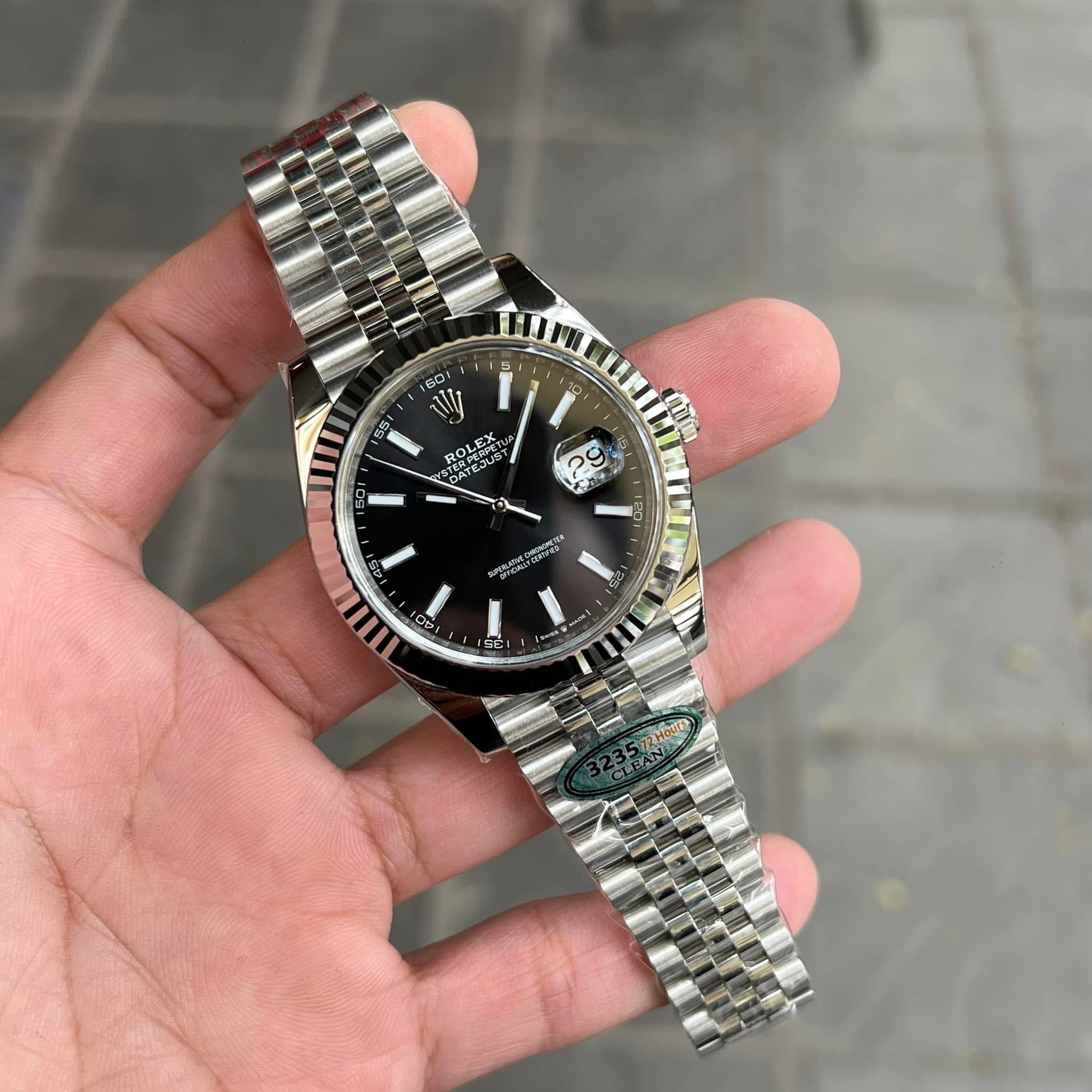 Đồng Hồ Rolex DateJust Replica 11 Mặt Số Đen Cọc Dạ Quang Dây Jubilee Xưởng Clean 41mm