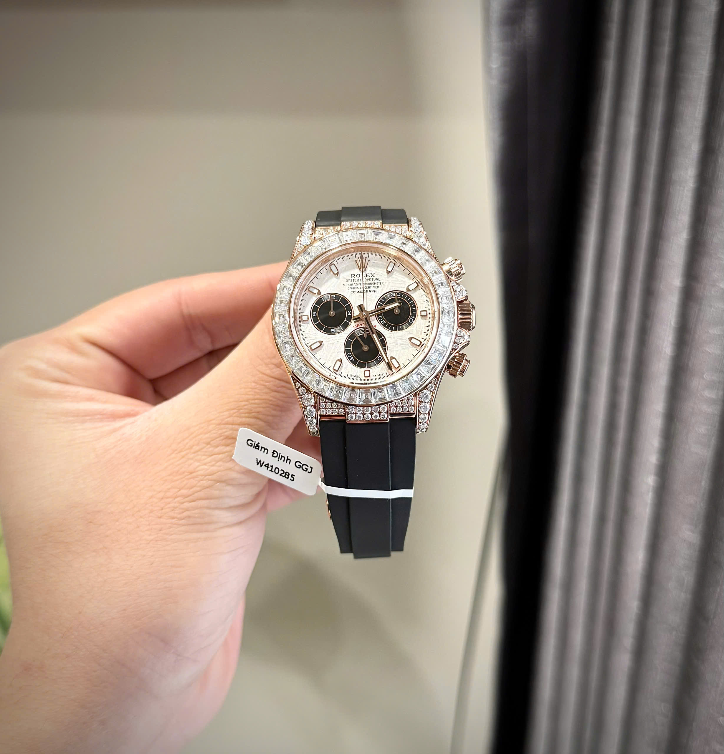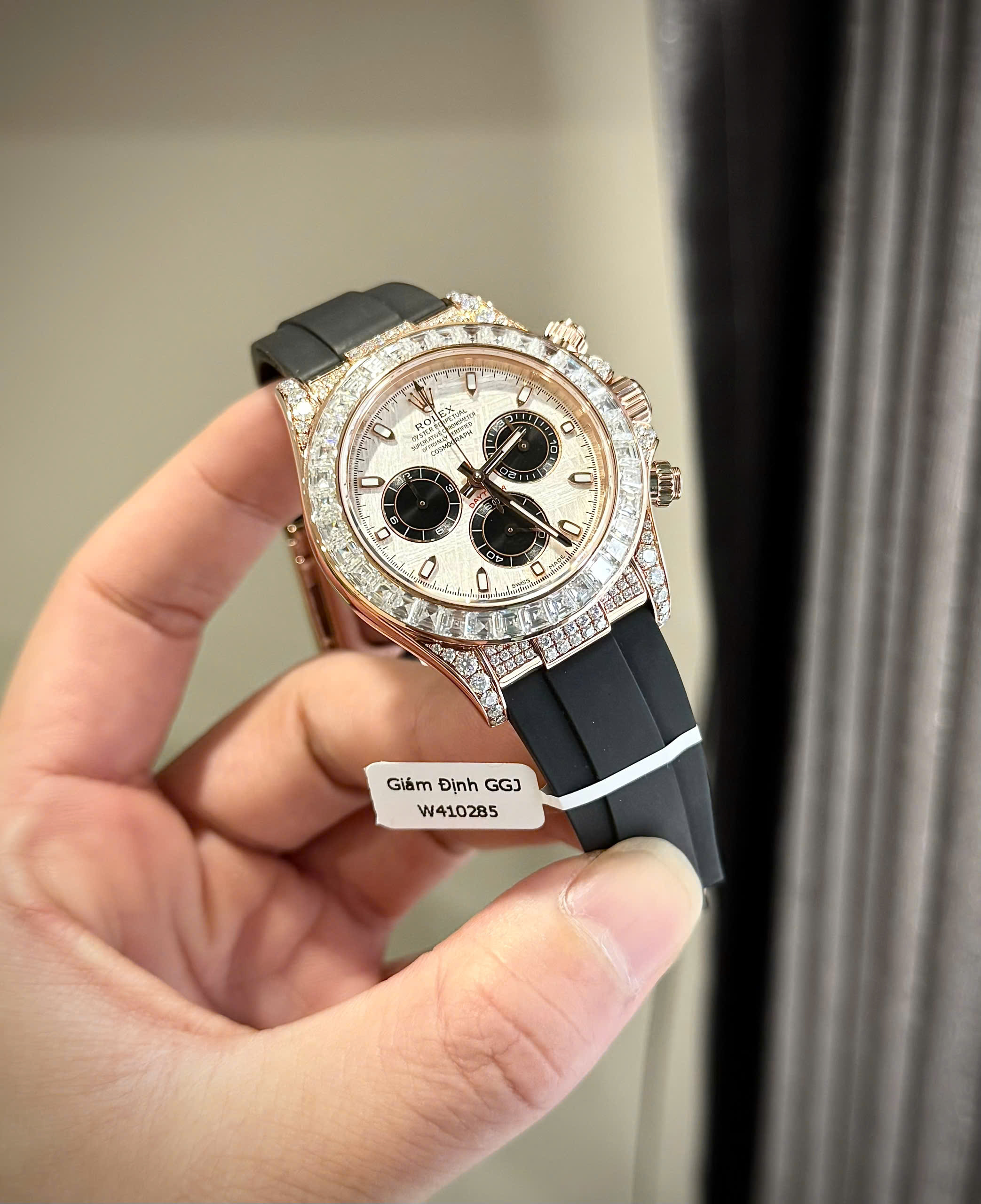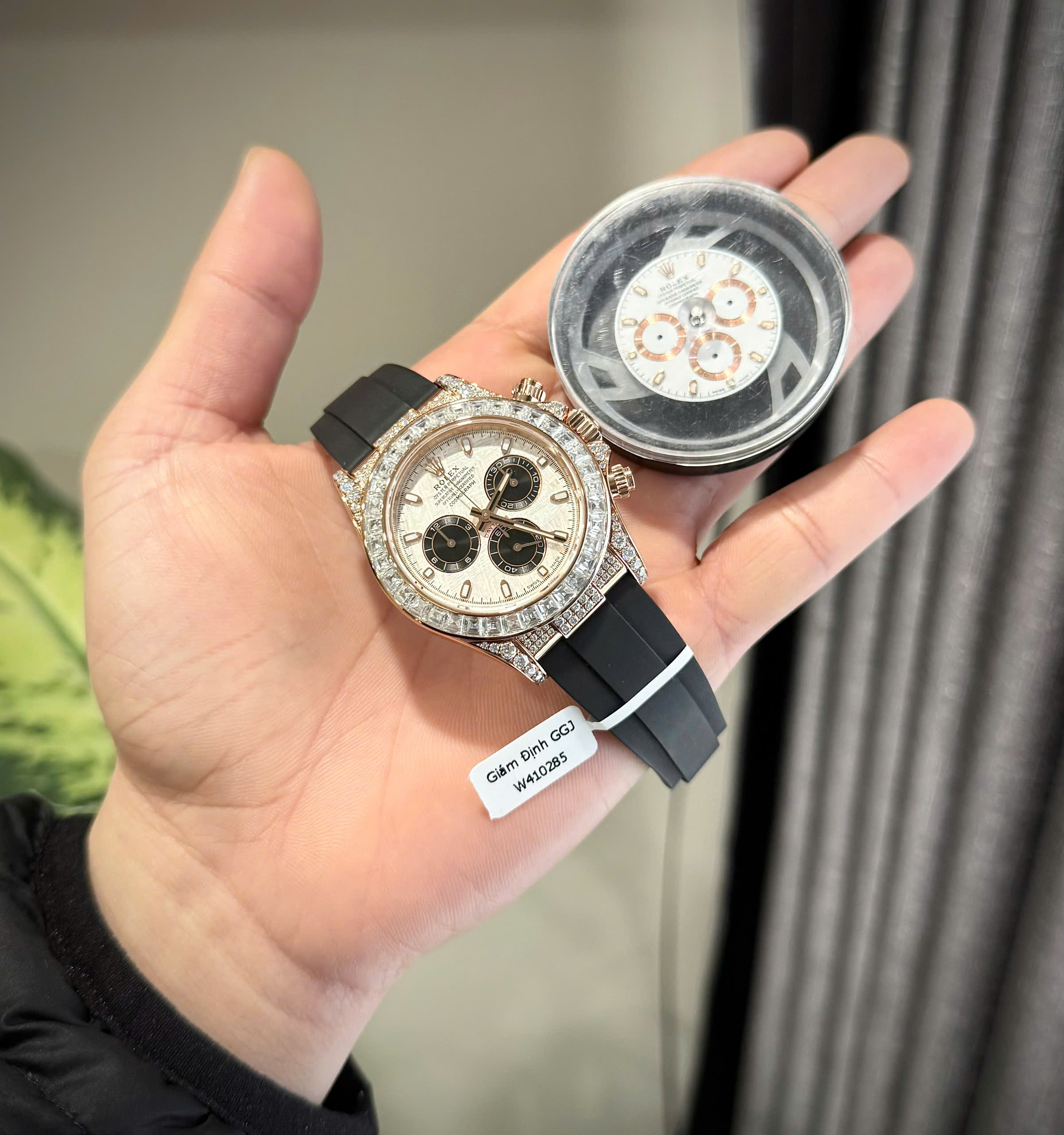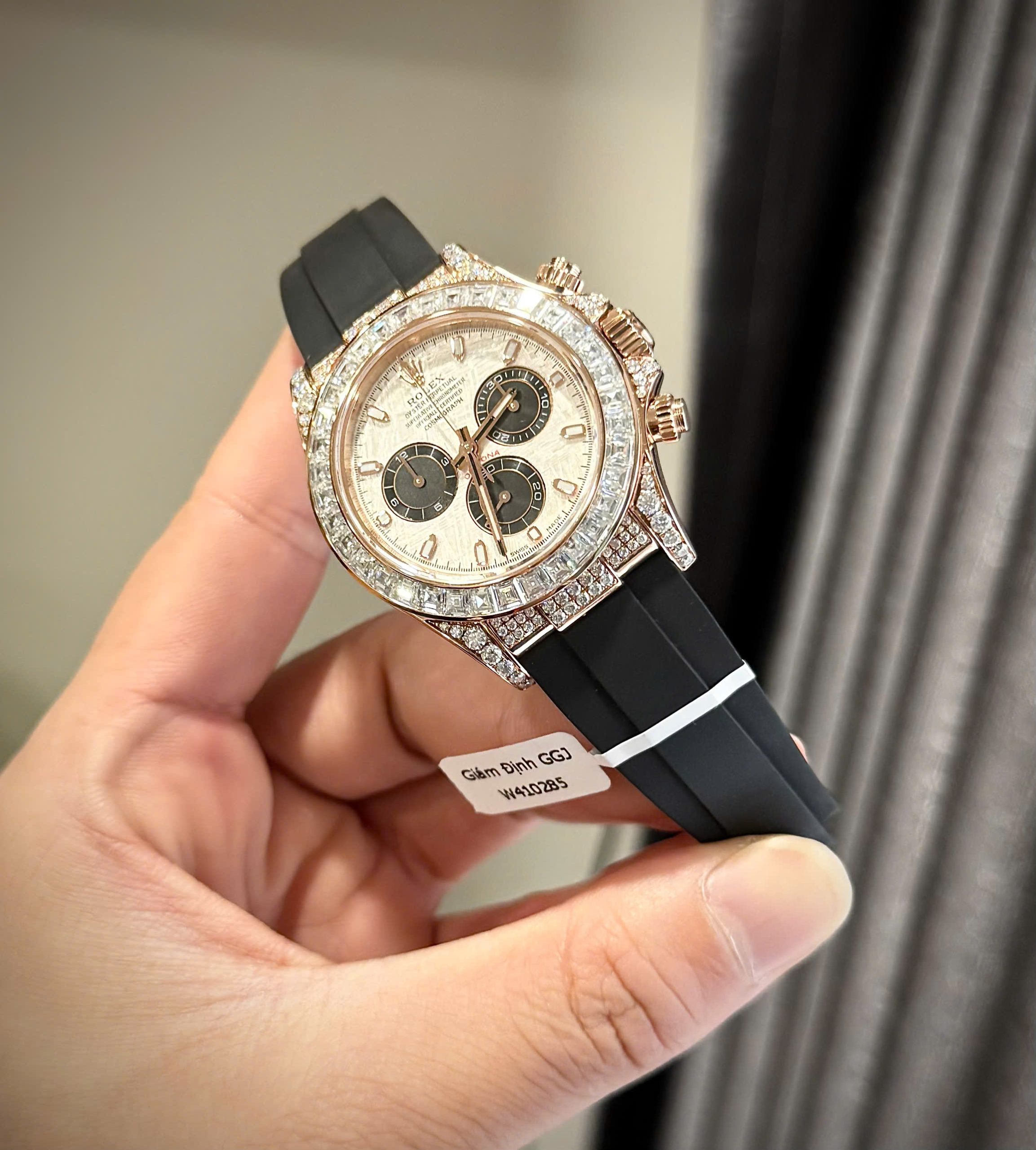 Đồng Hồ Rolex Daytona Chế Tác Mặt Thiên Thạch Phủ Vàng 18K Đính Đá Moissanite 40mm