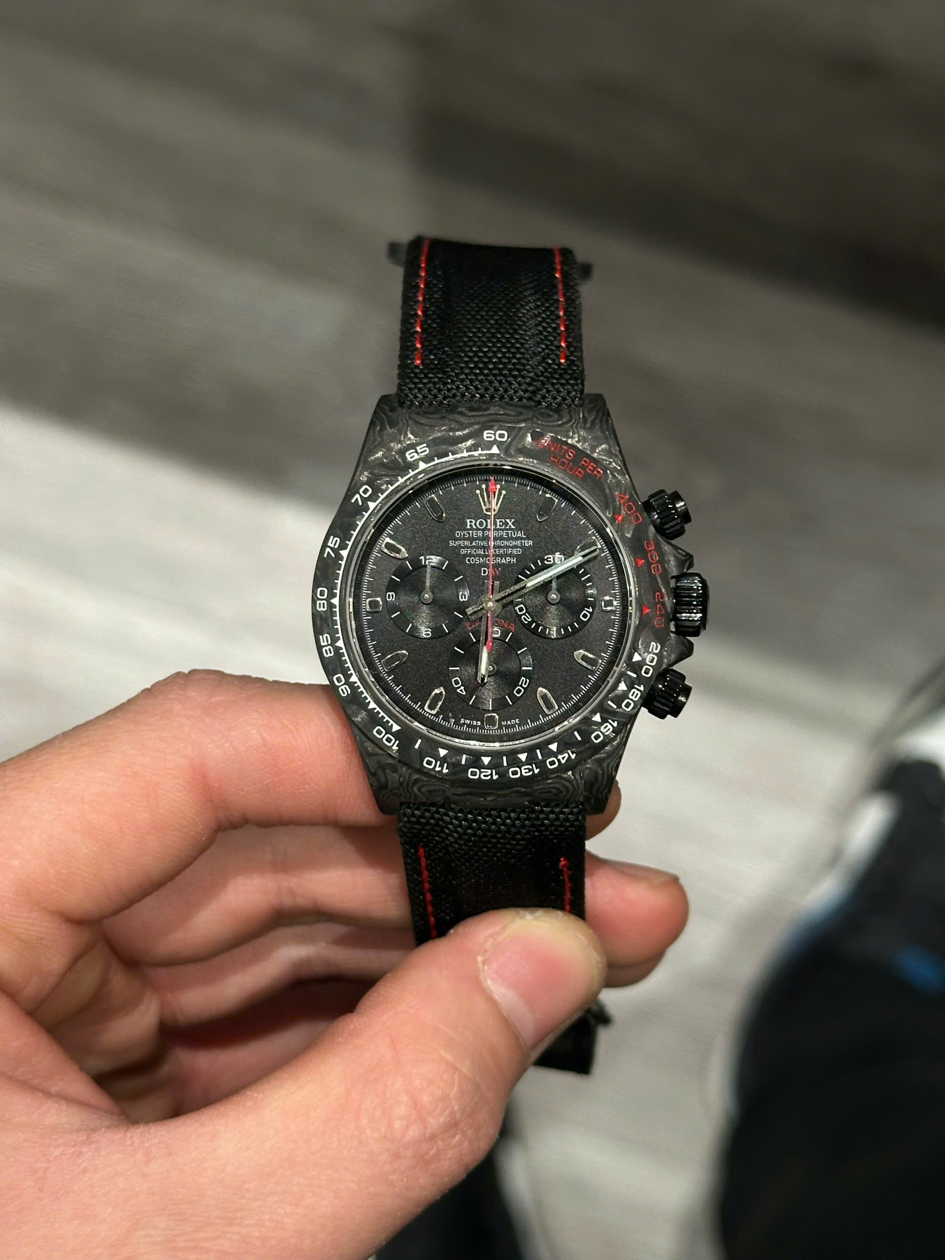 Giới Thiệu Đồng Hồ Rolex Daytona DIW Carbon Black Red