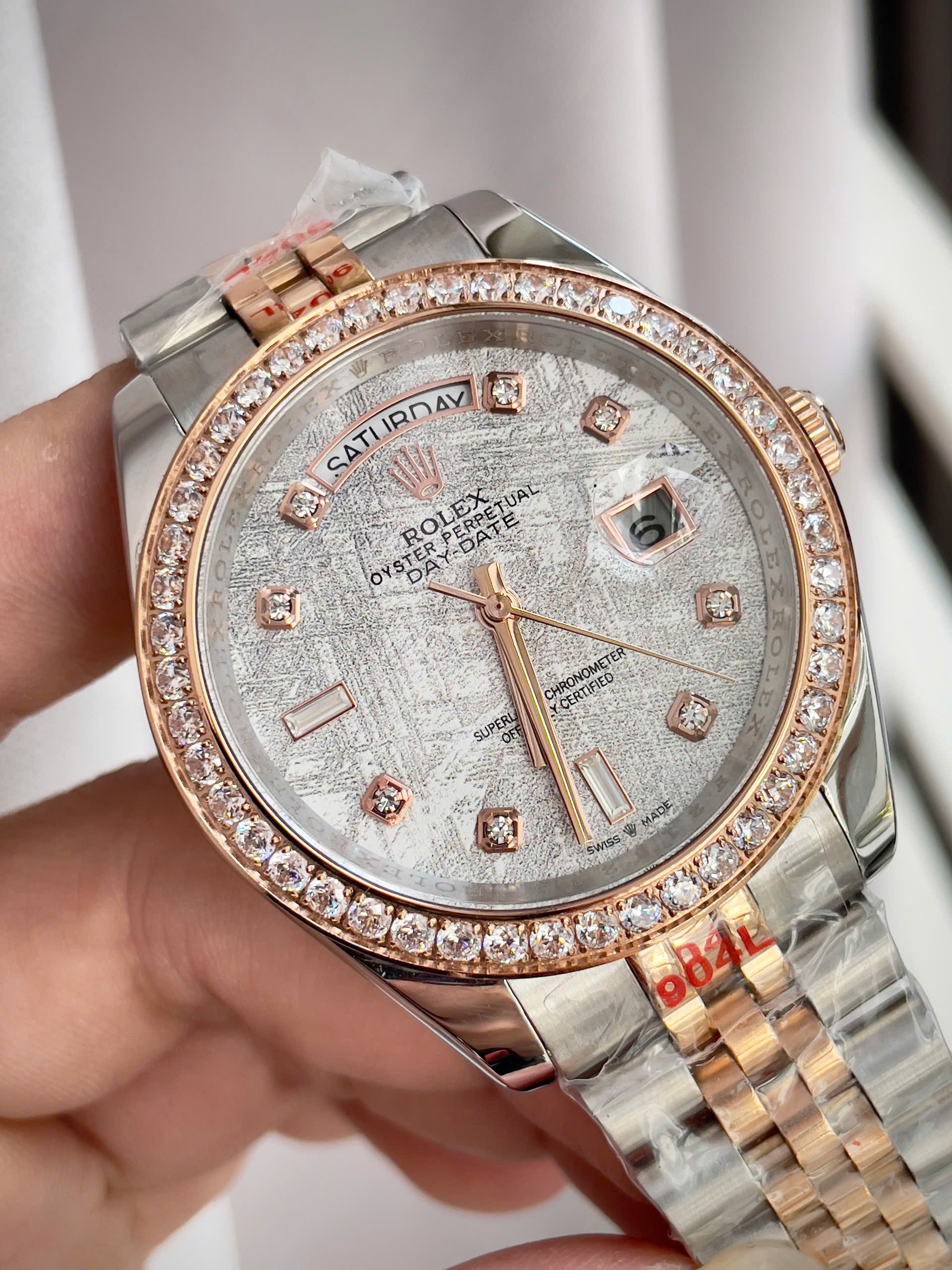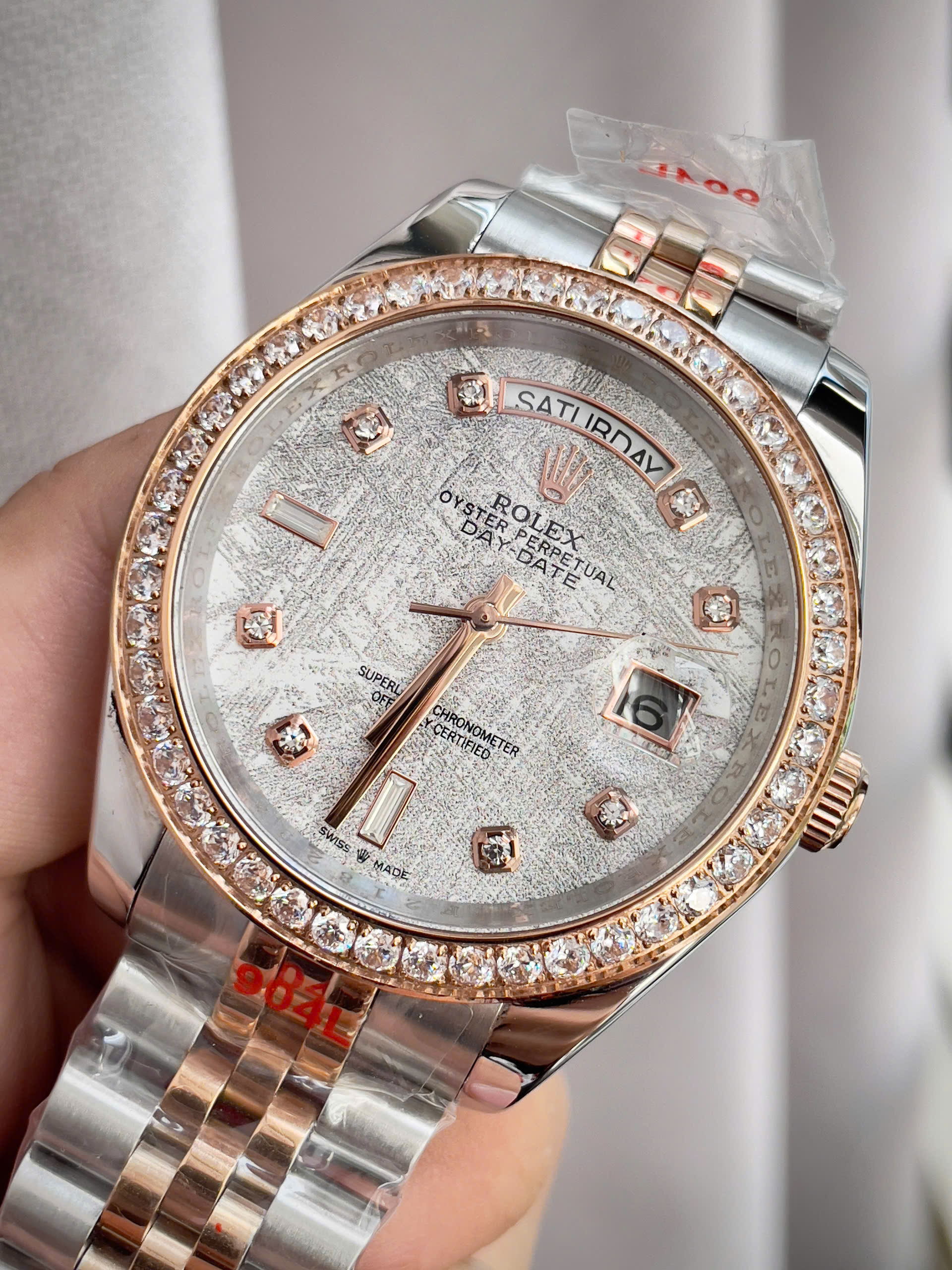 Đồng Hồ Rolex Fake Máy Cơ Automatic Nhật Mặt Số Thiên Thạch Đính Đá 36-40mm
