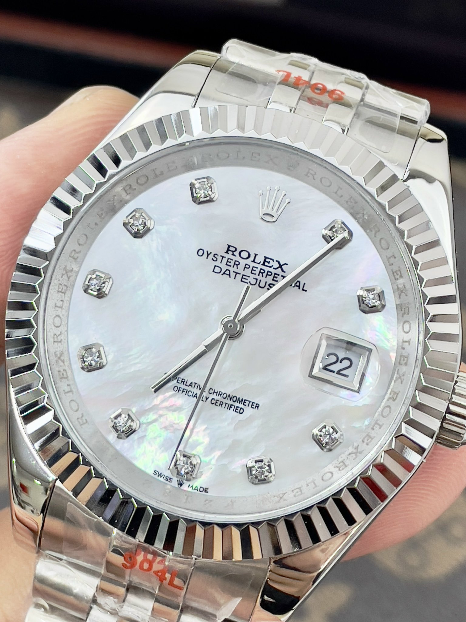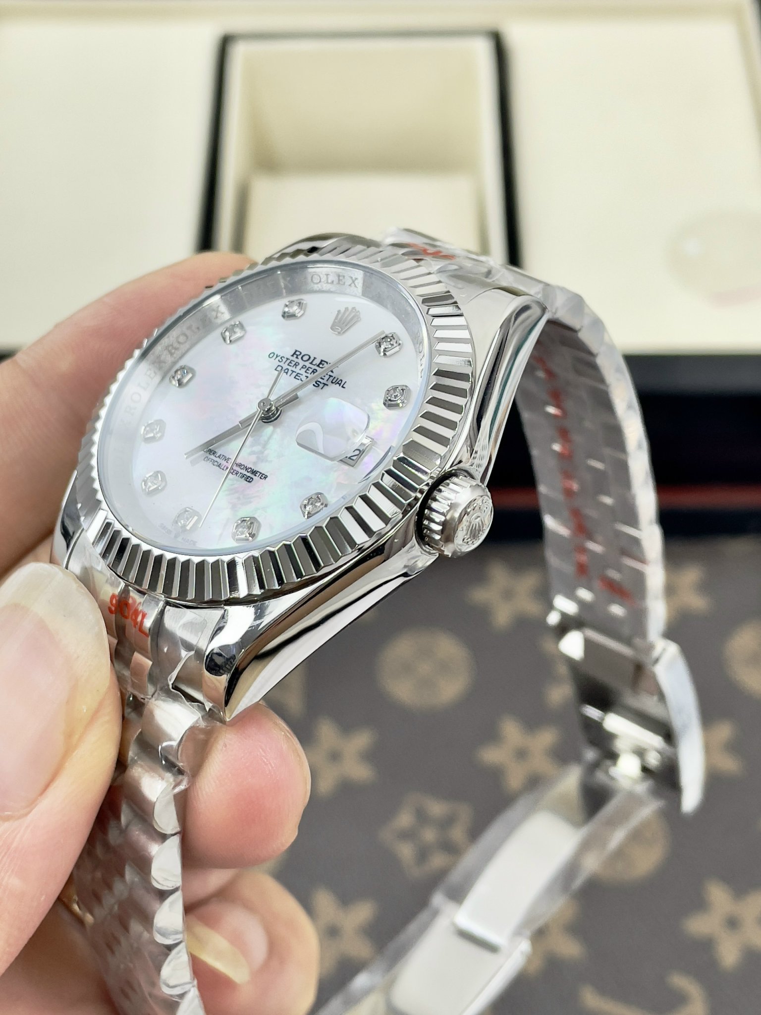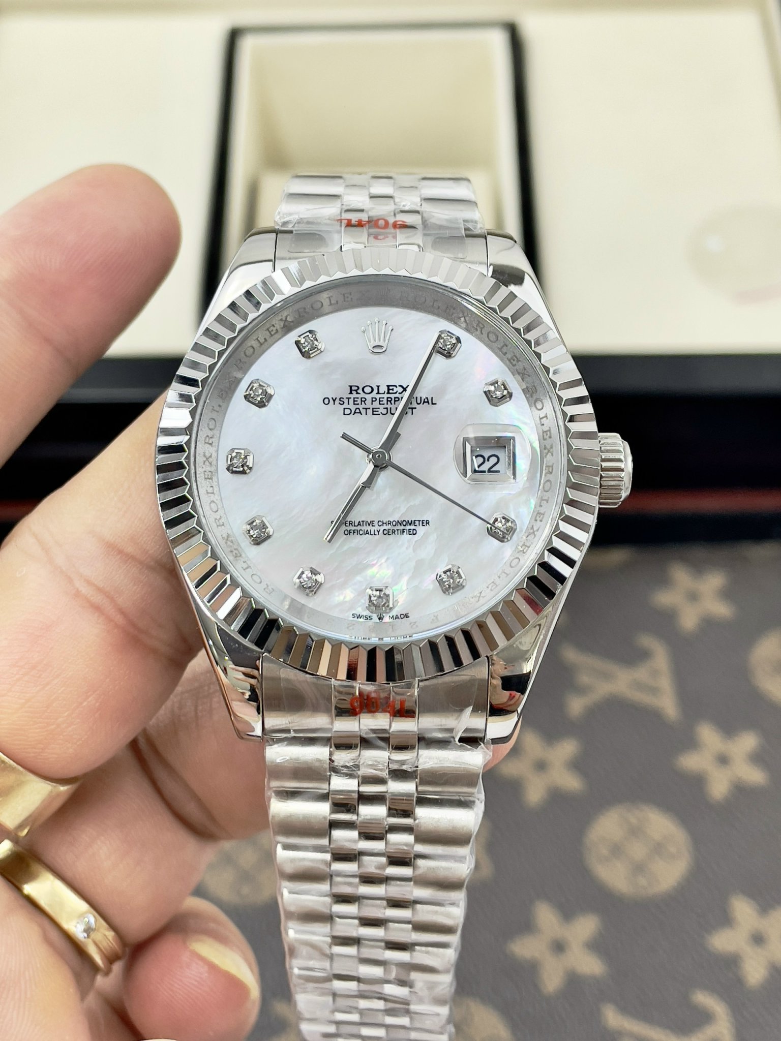 Đồng Hồ Rolex Fake Máy Nhật Thép Trắng Mặt Khảm Trai DateJust 31-36-41mm