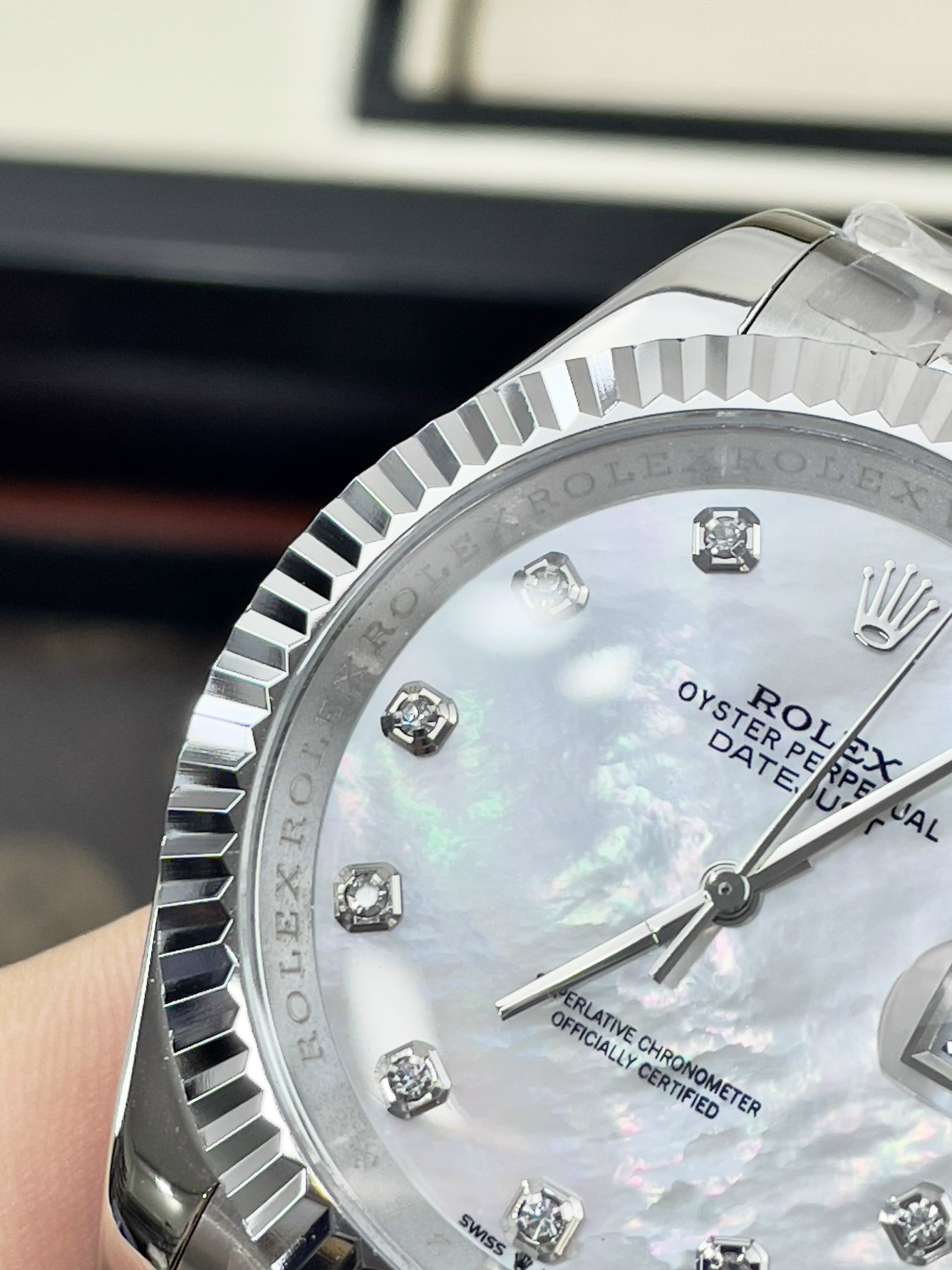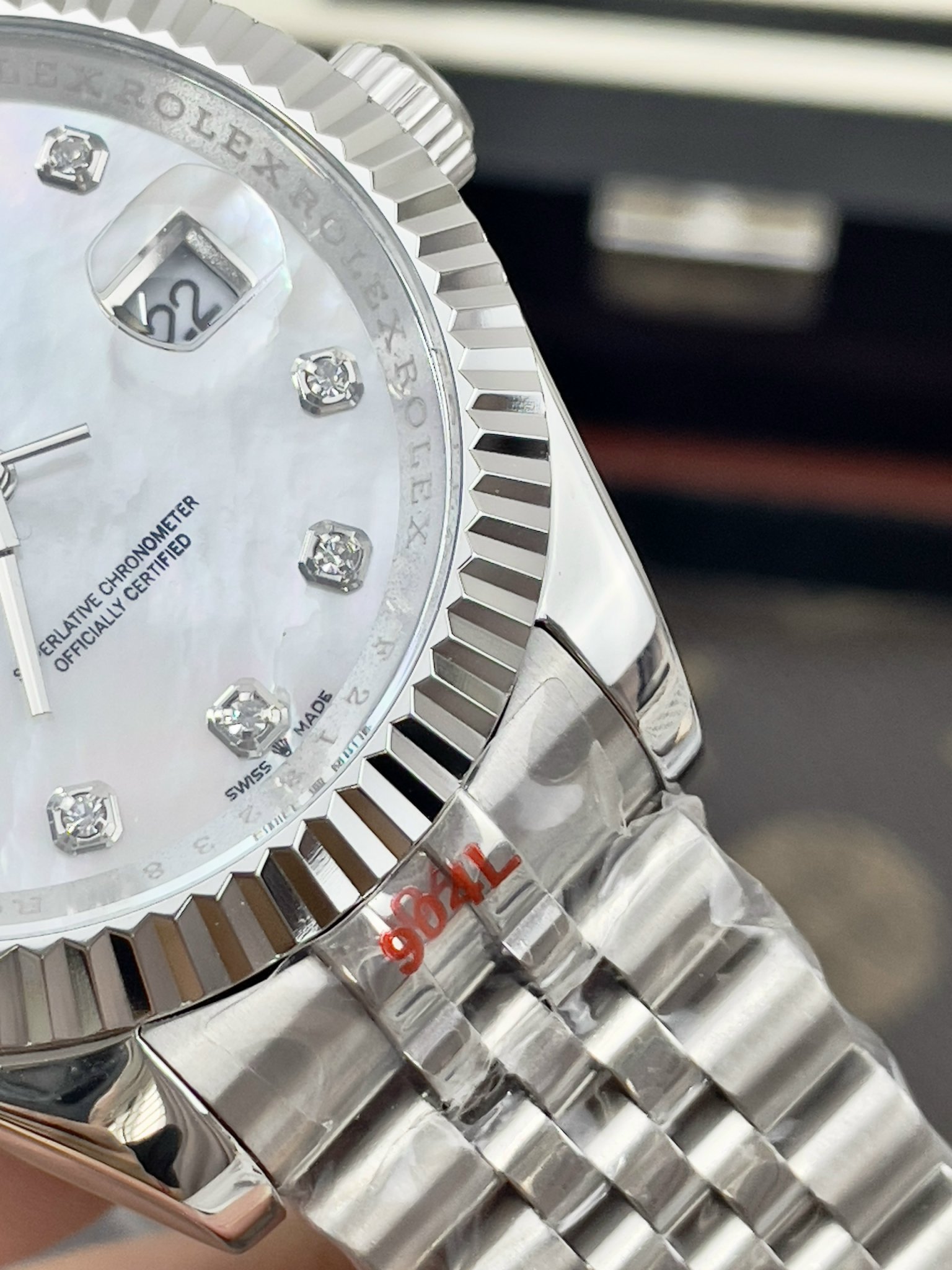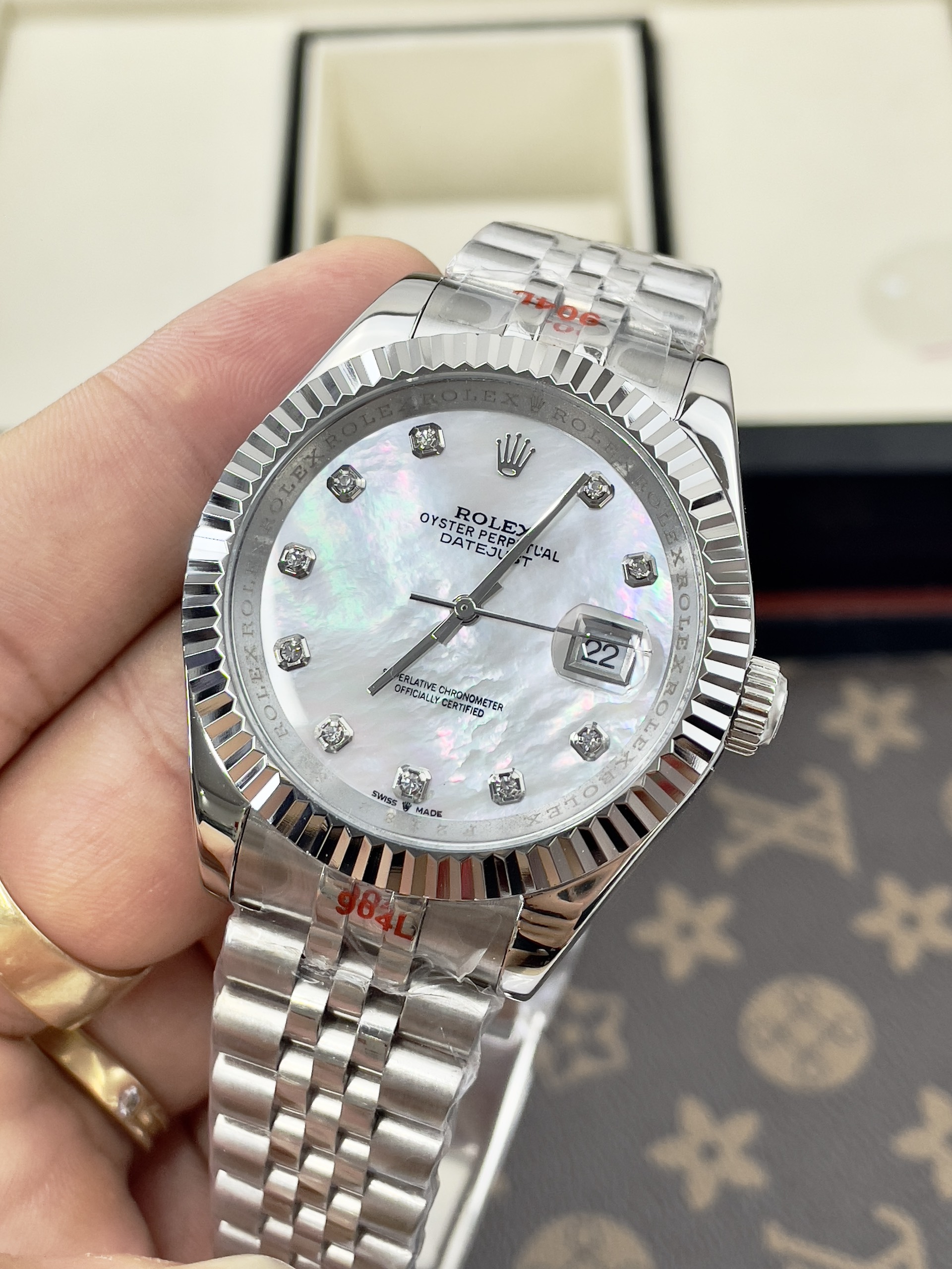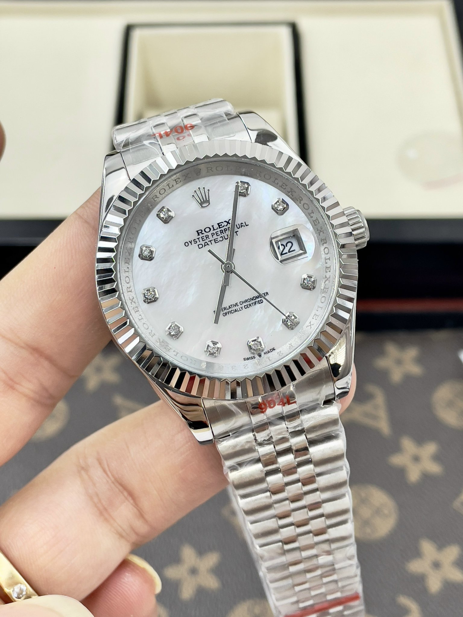 Đồng Hồ Rolex Fake Máy Nhật Thép Trắng Mặt Khảm Trai DateJust 31-36-41mm