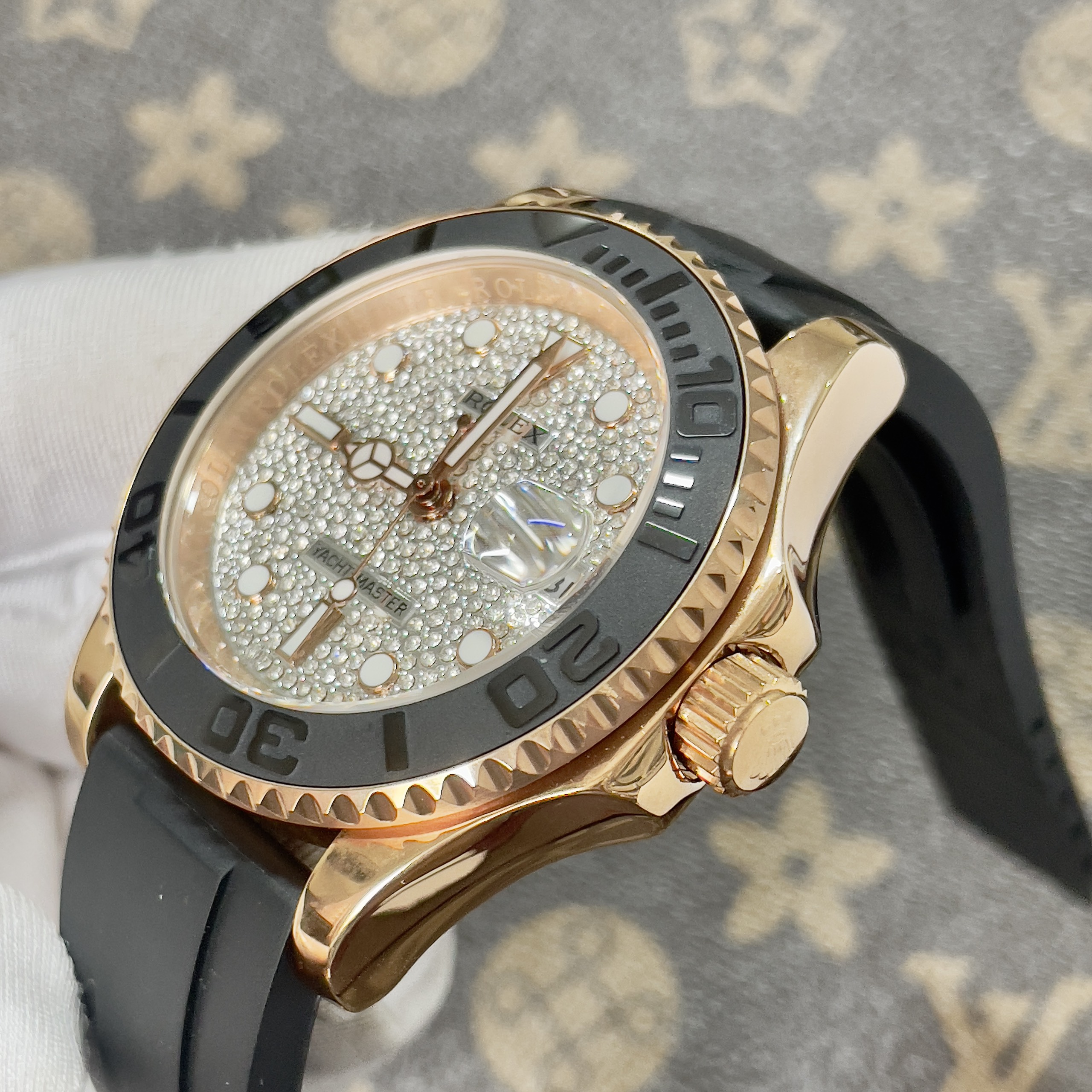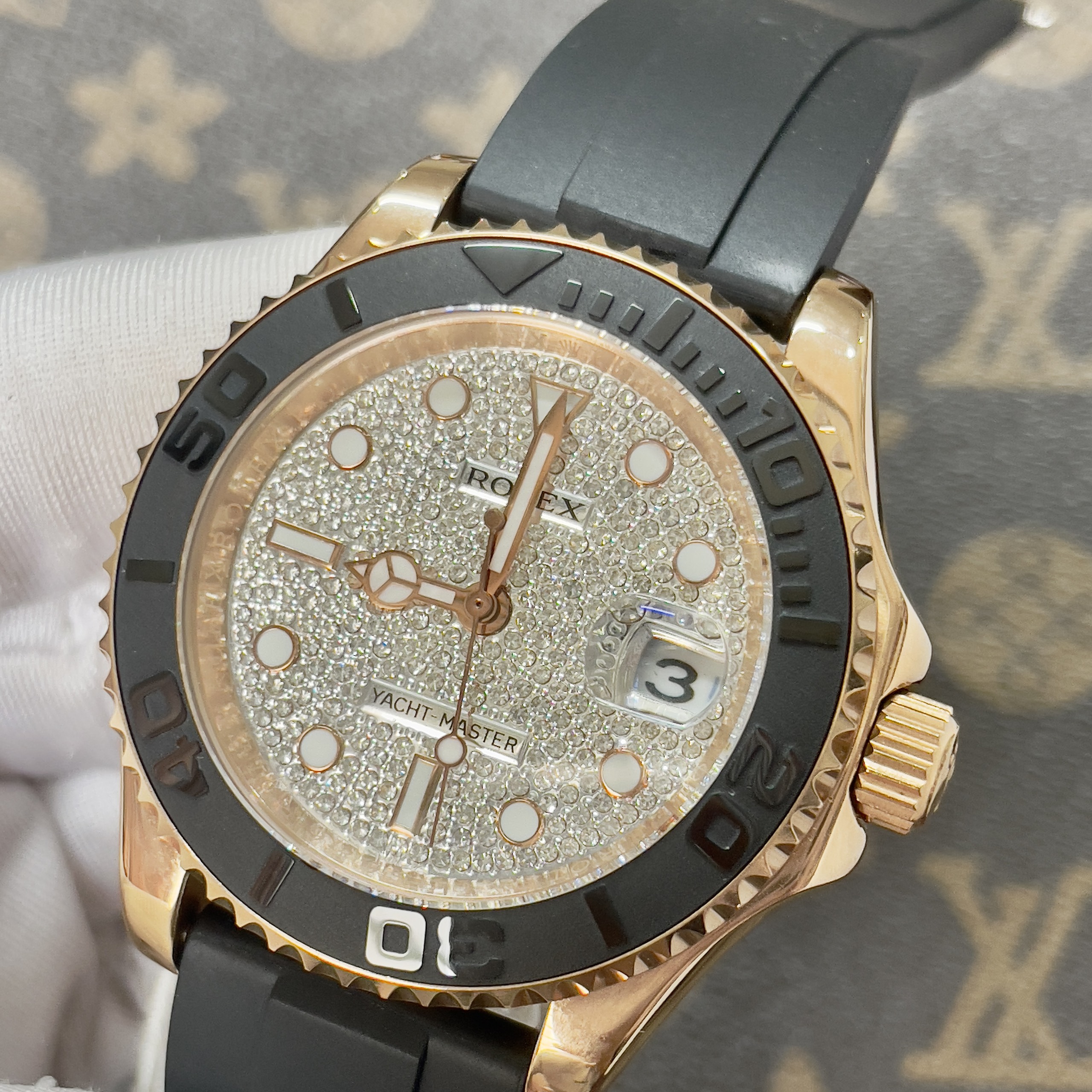 Đồng Hồ Rolex Fake Máy Nhật Yacht Master Đính Đá Dây Cao Su 40mm
