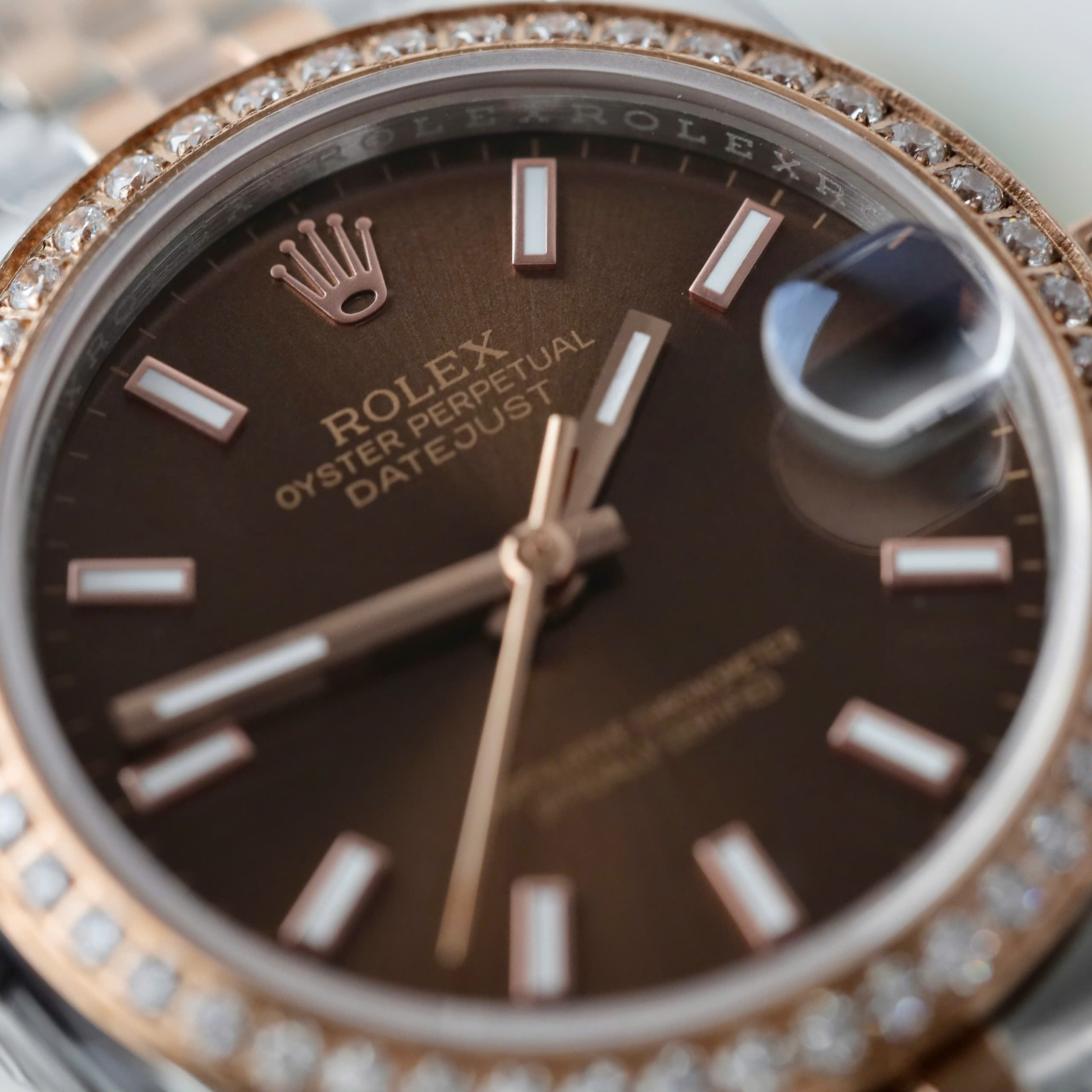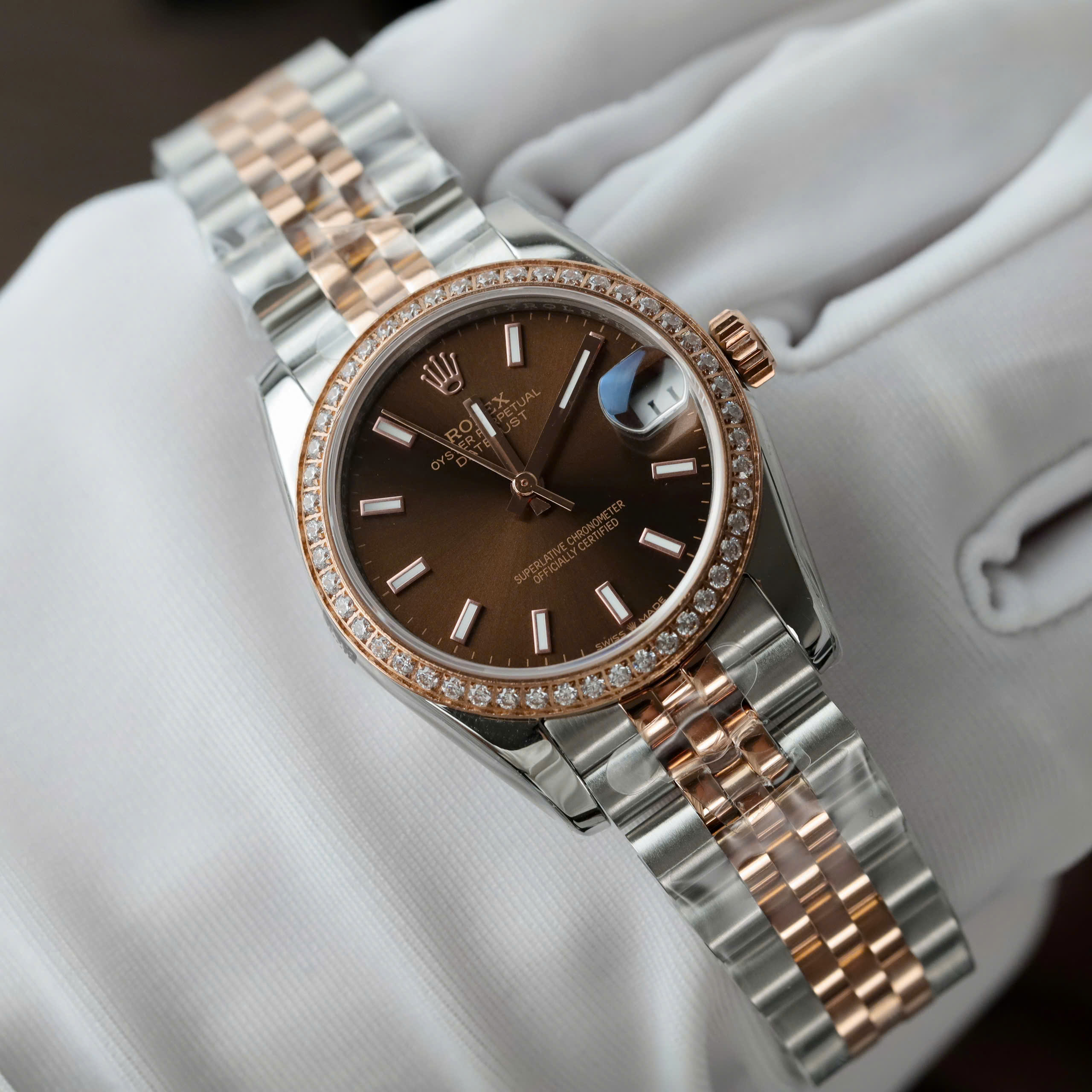 Đồng Hồ Rolex Rep 1 1 DateJust Nữ Đính Đá Mặt Chocolate Nhà Máy GS 31mm