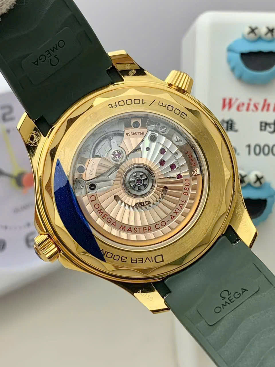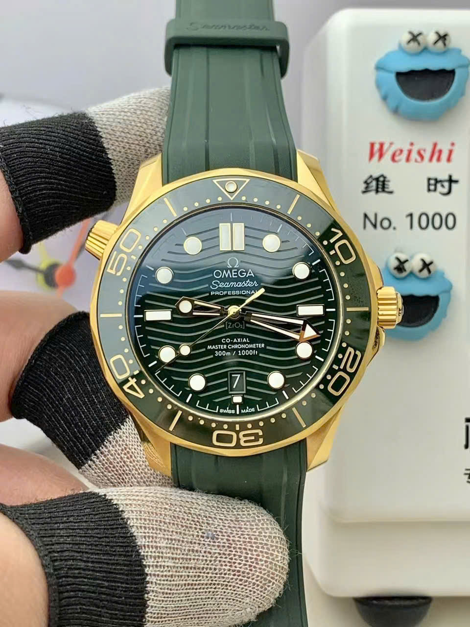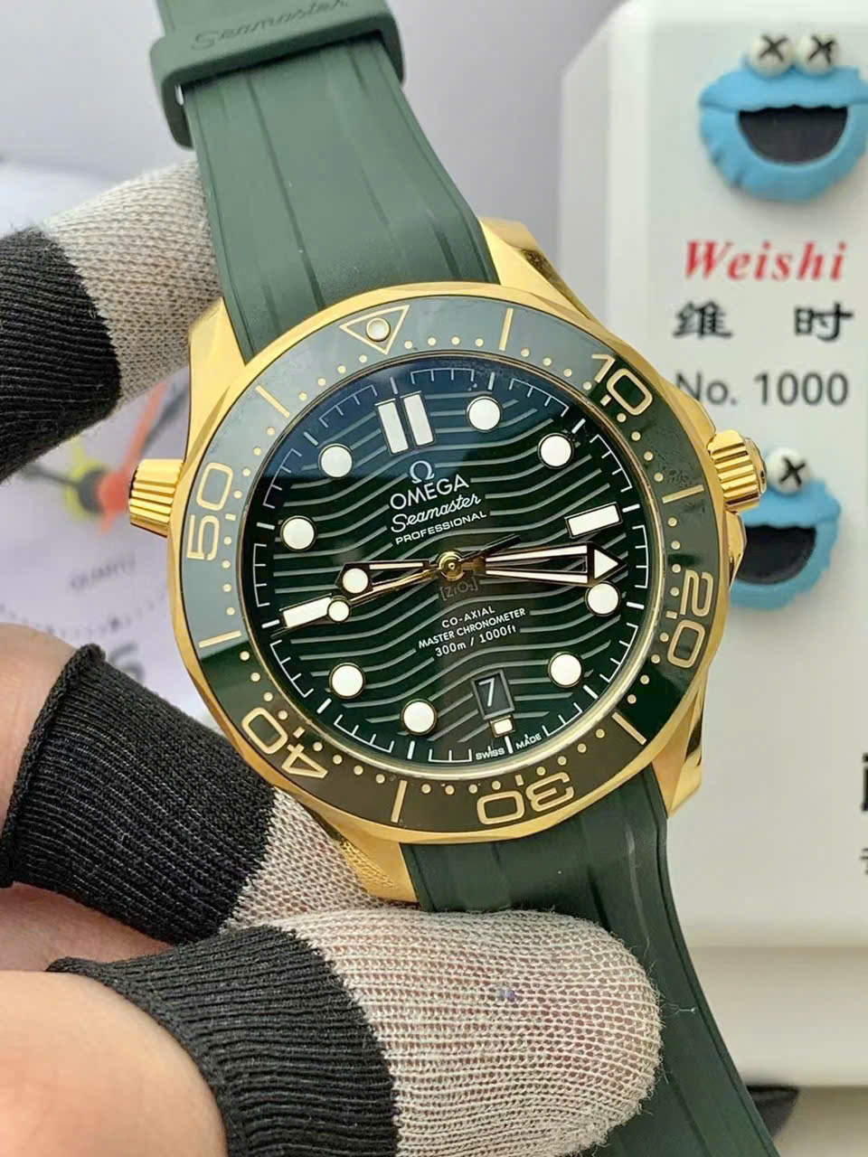 Omega Replica Watches Seamaster Diver 300M Green Rubber Strap VS Factory 42mm